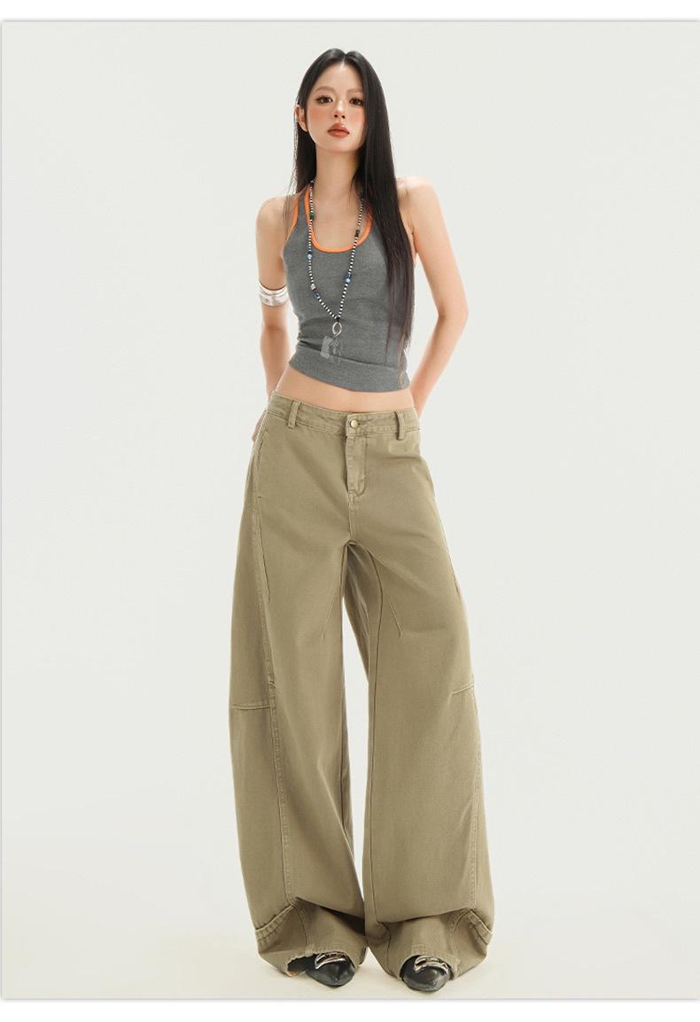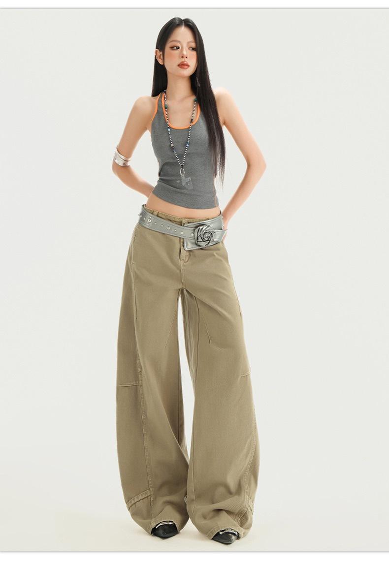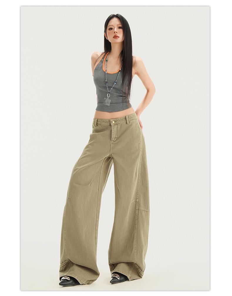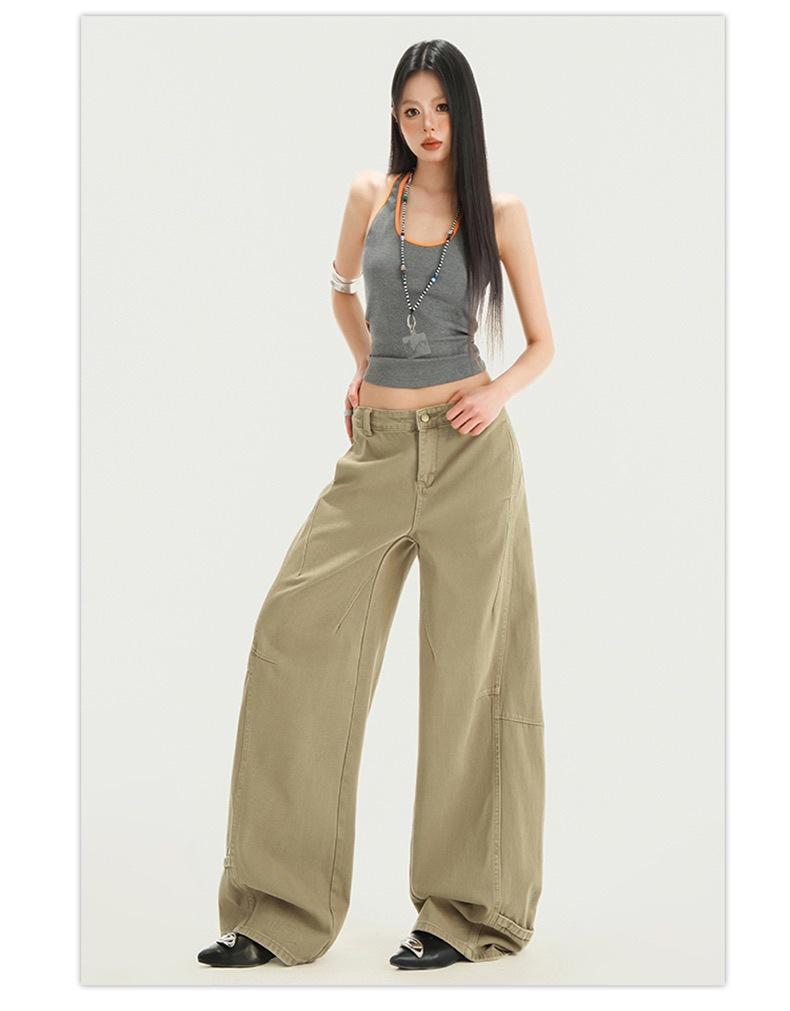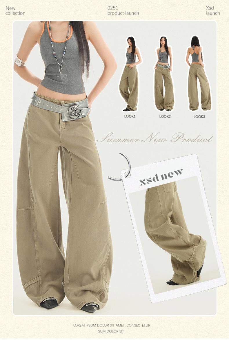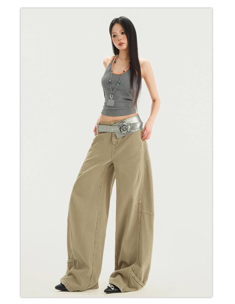 2025 Verano Nuevo Caqui Cintura Alta Pierna Ancha Pantalones Casuales Mujer Americano Retro Suelto Casual Adelgazante Pantalones Largos de Mujer