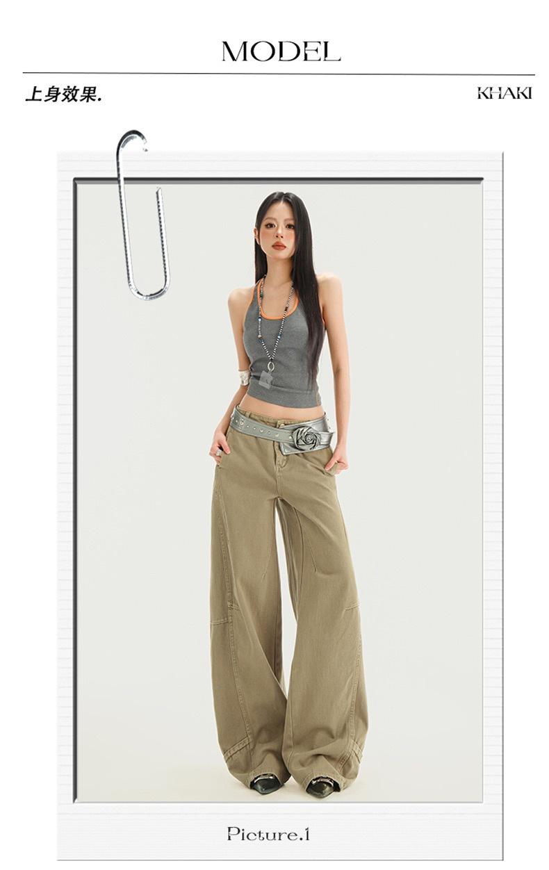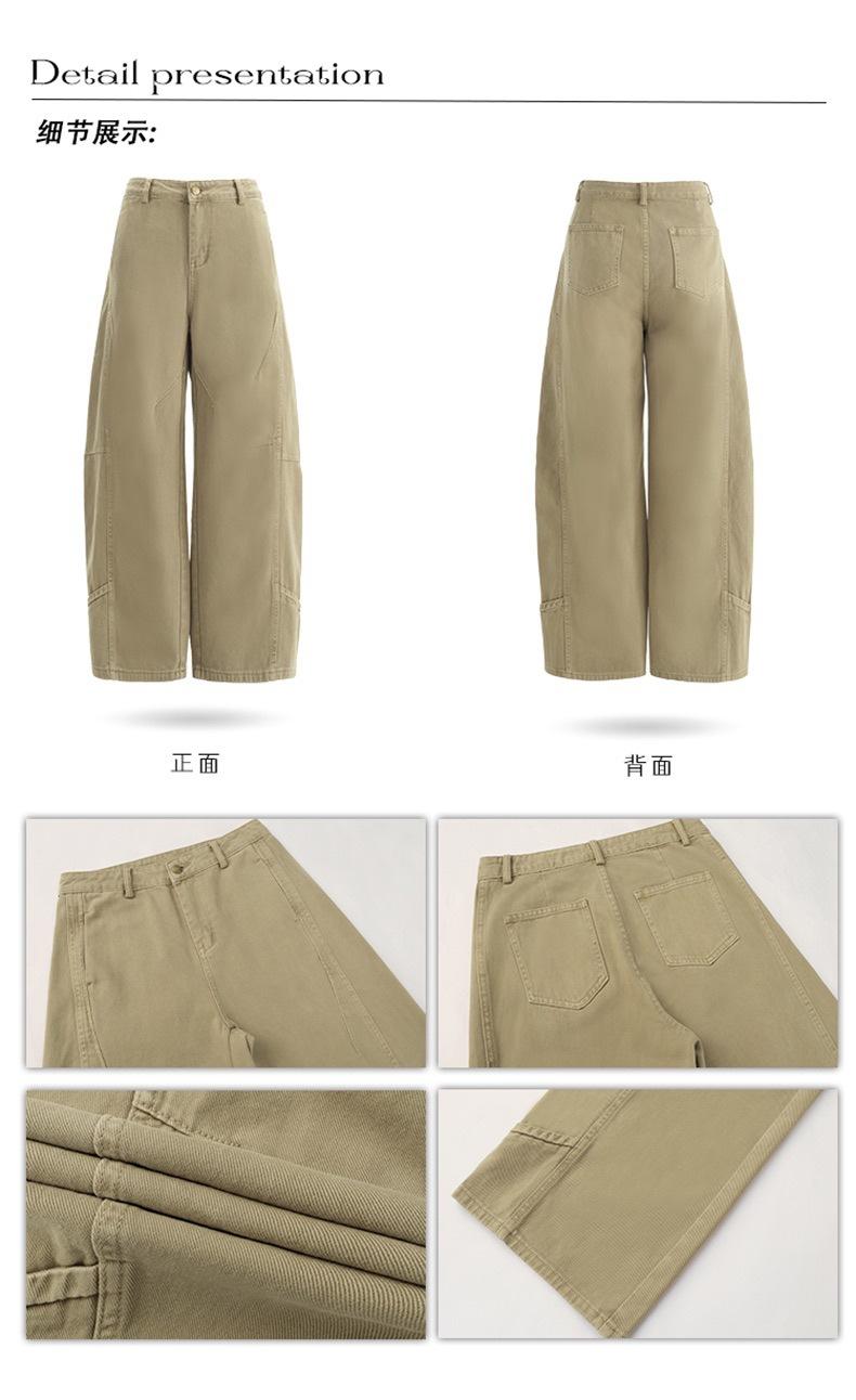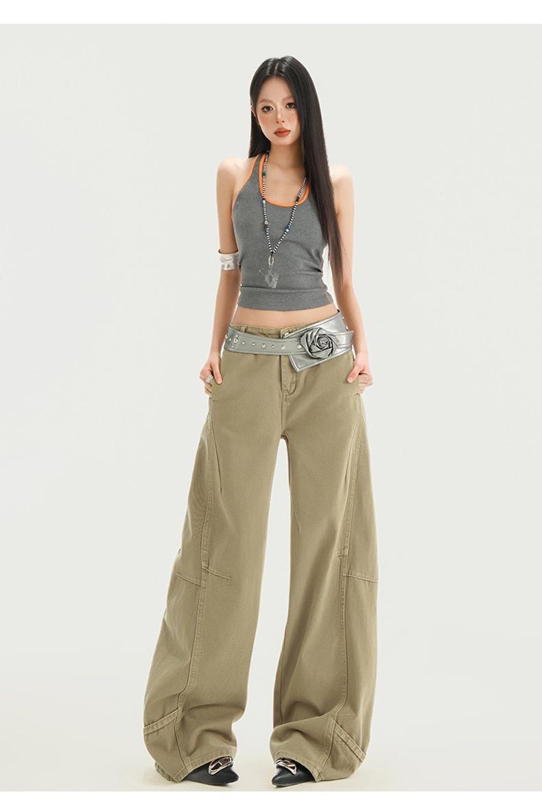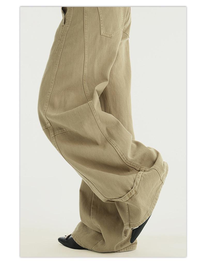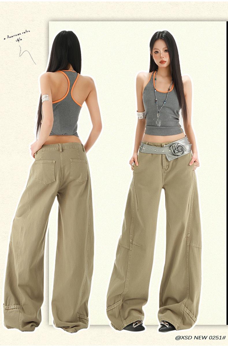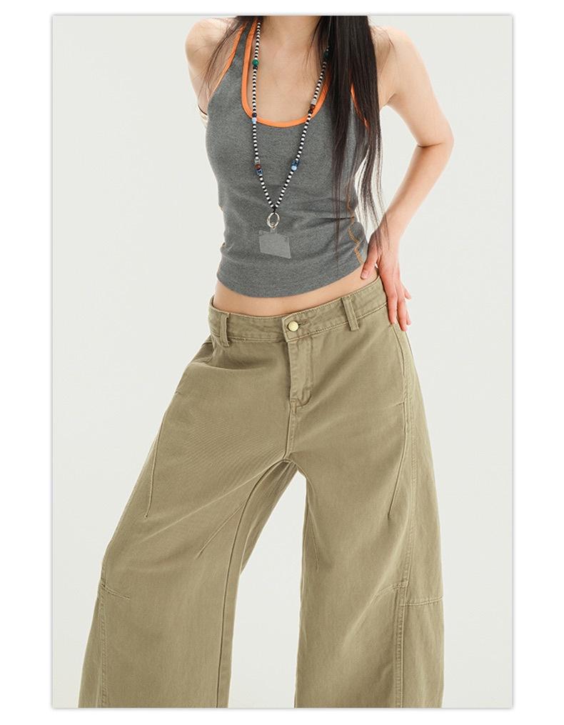 2025 Verano Nuevo Caqui Cintura Alta Pierna Ancha Pantalones Casuales Mujer Americano Retro Suelto Casual Adelgazante Pantalones Largos de Mujer