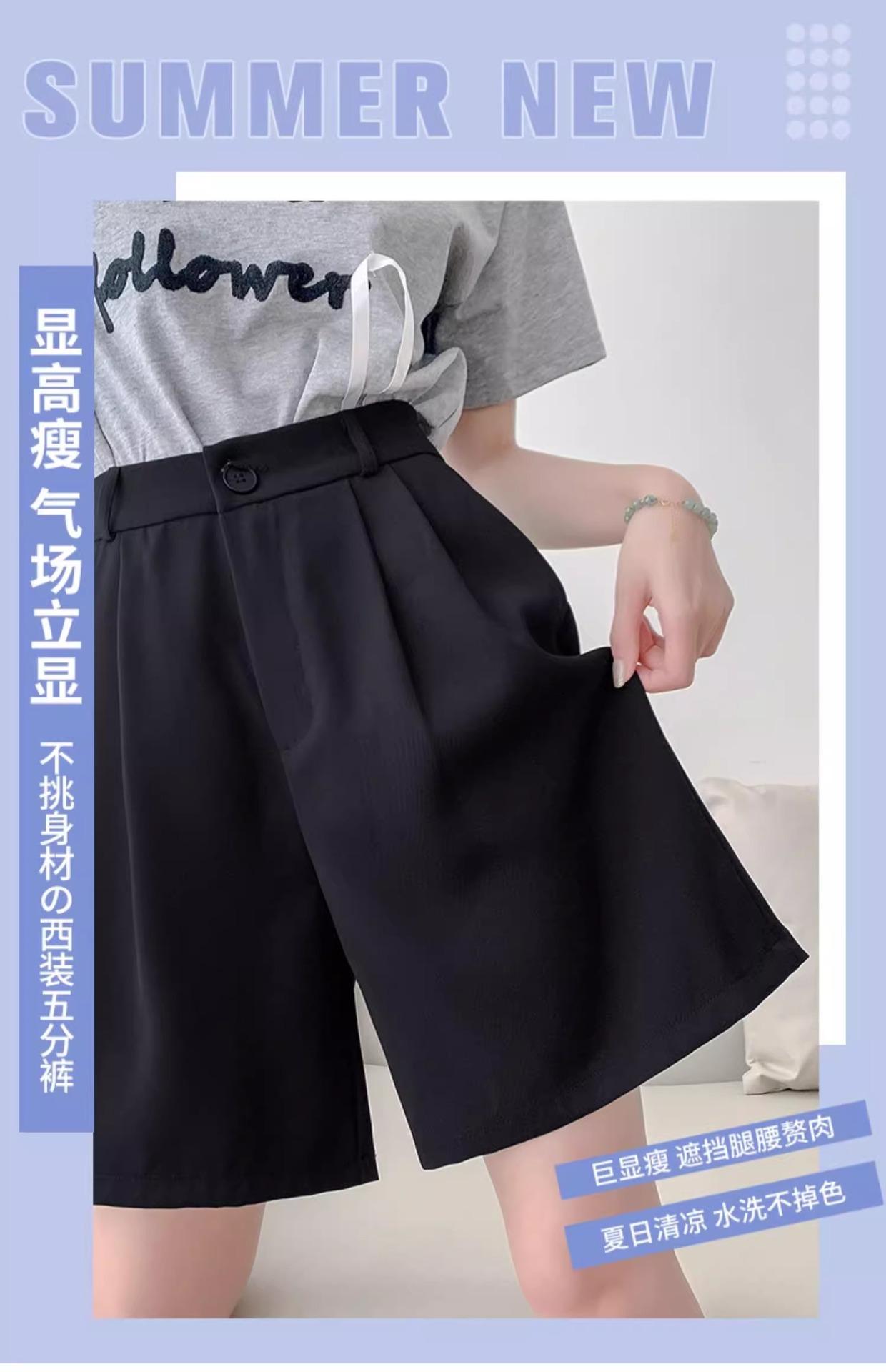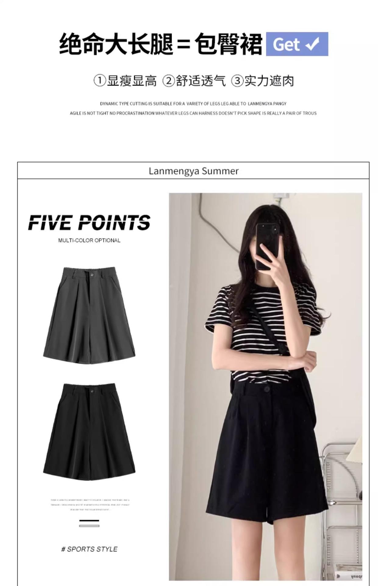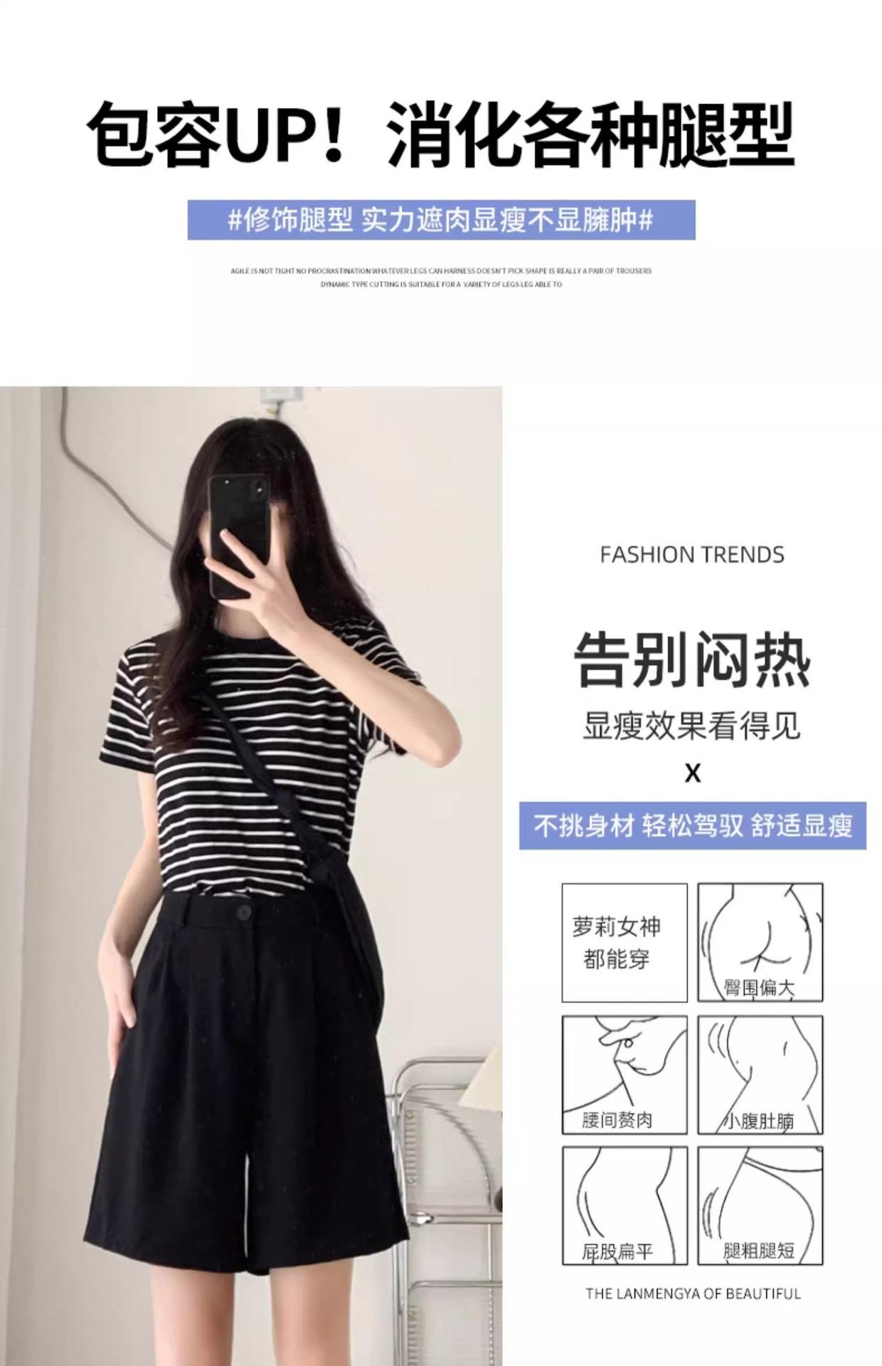 2025 Nuevo Traje Shorts de Verano para Mujer Cintura Alta Adelgazantes Pantalones Rectos Sueltos Seda Helada Casual Pantalones de Pierna Ancha