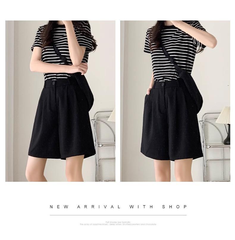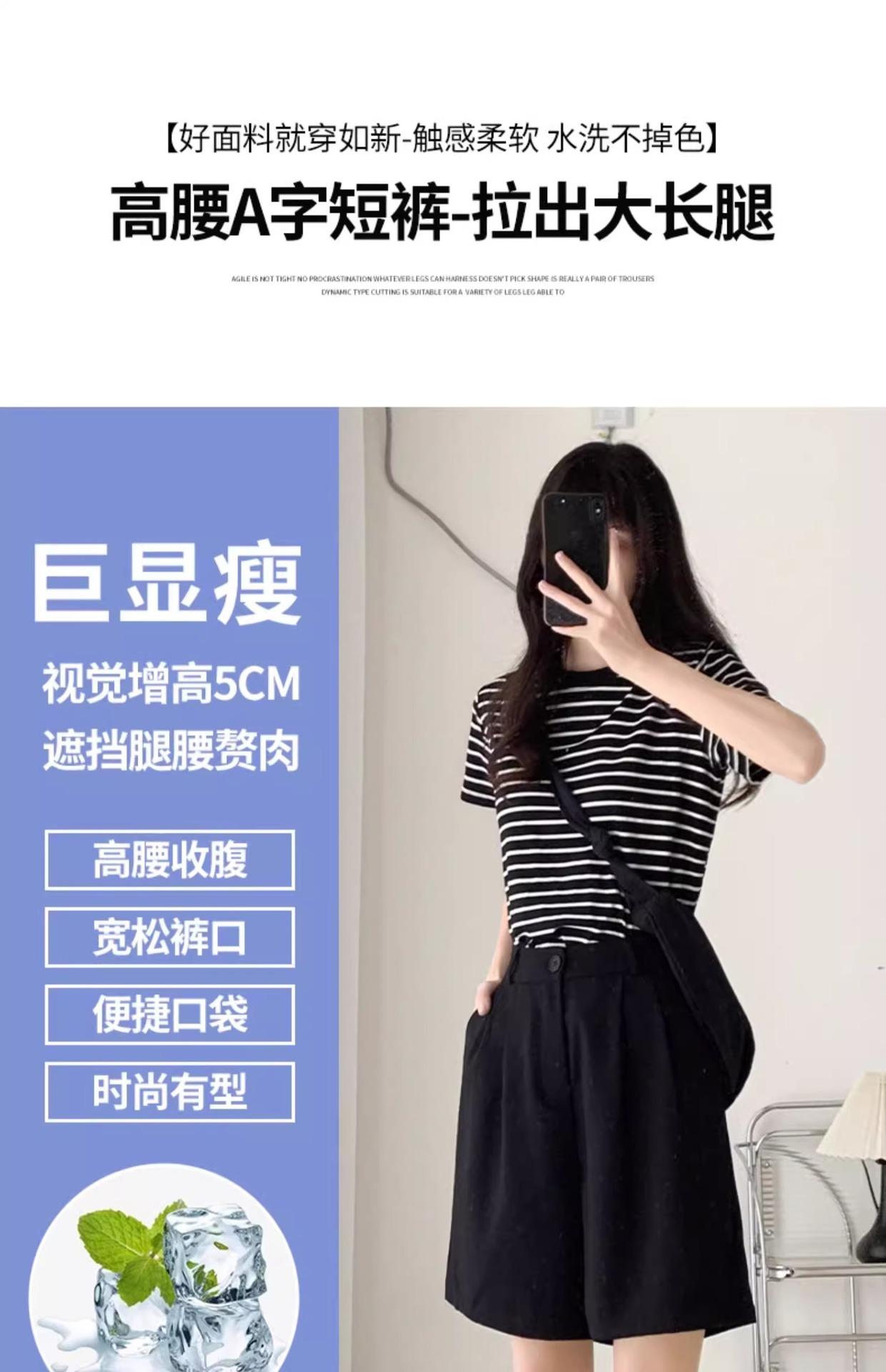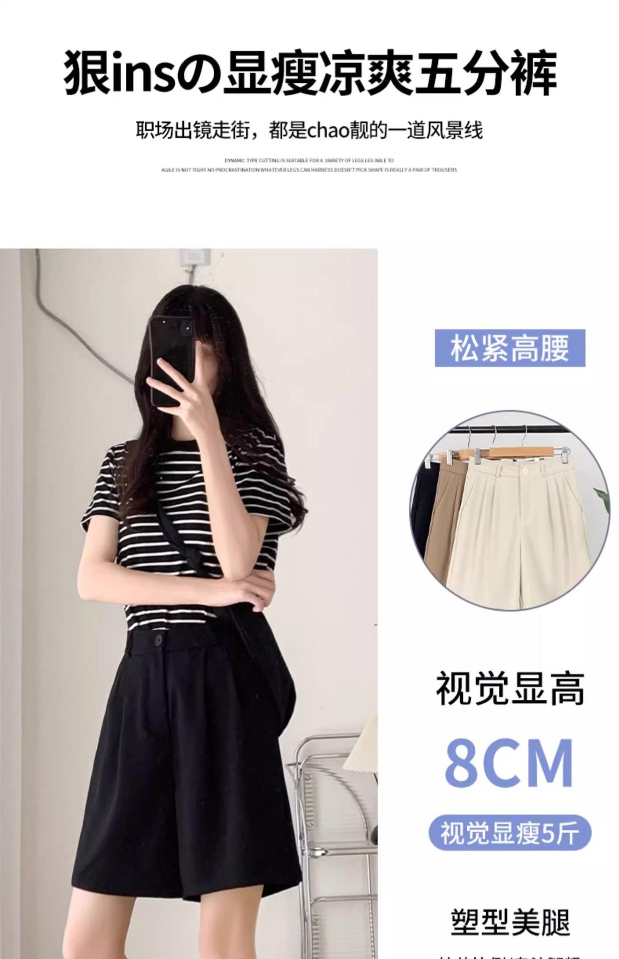 2025 Nuevo Traje Shorts de Verano para Mujer Cintura Alta Adelgazantes Pantalones Rectos Sueltos Seda Helada Casual Pantalones de Pierna Ancha