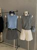 25 Principios de Otoño Nuevo Chinoiserie Cuello Cheongsam Sin Mangas Tejido de Lana Peinada Cuello Mao Camisa Abotonada hasta Abajo