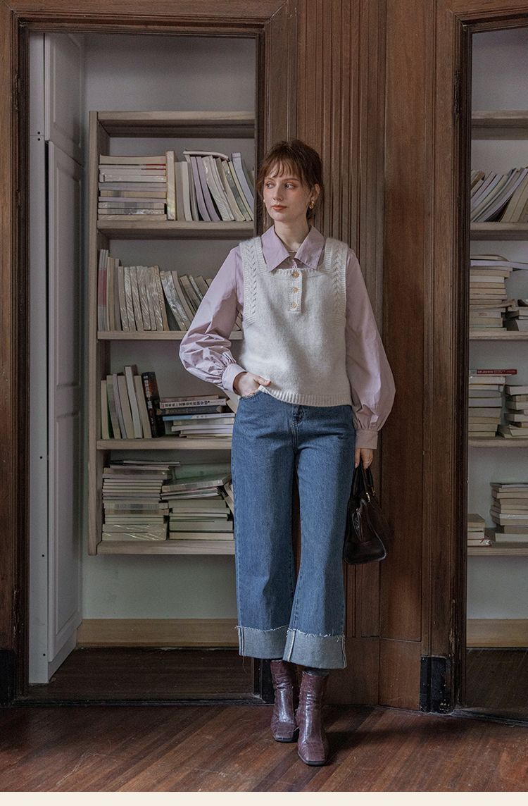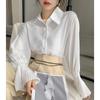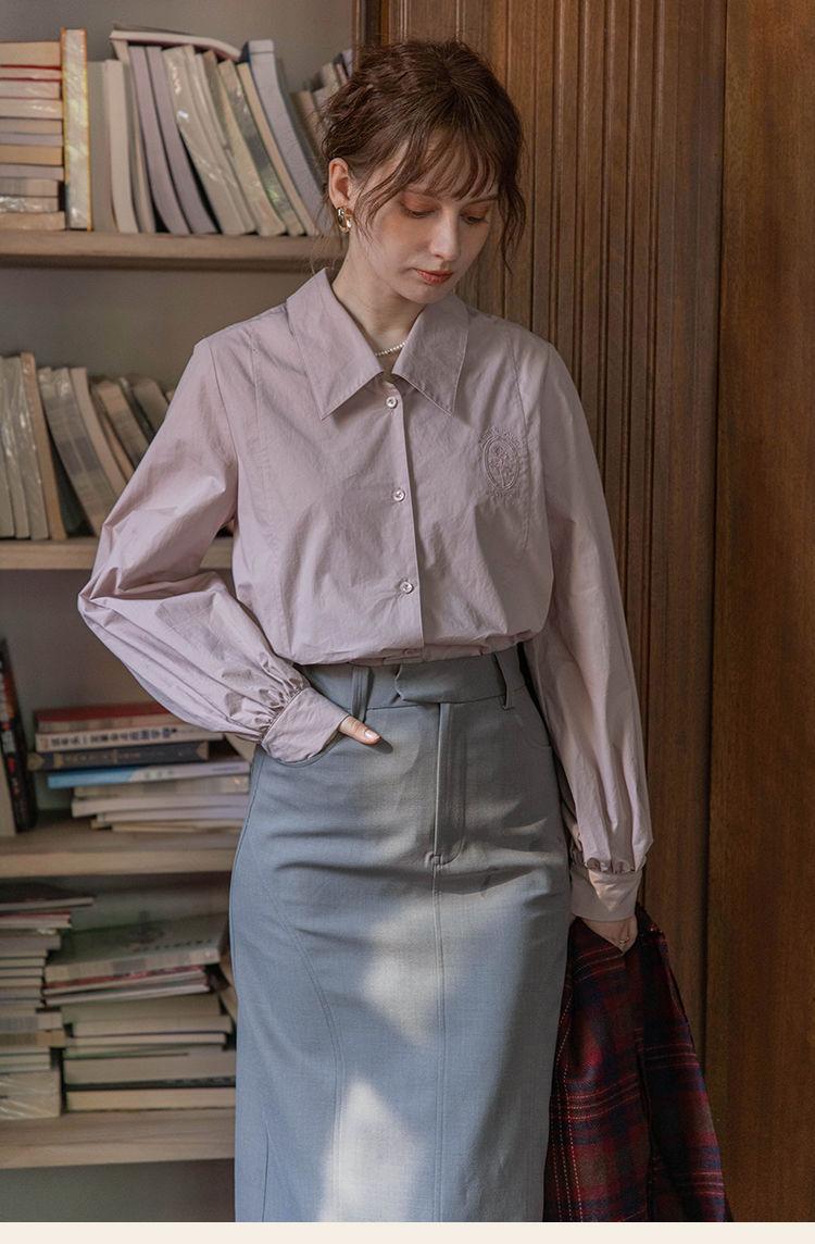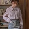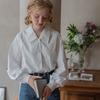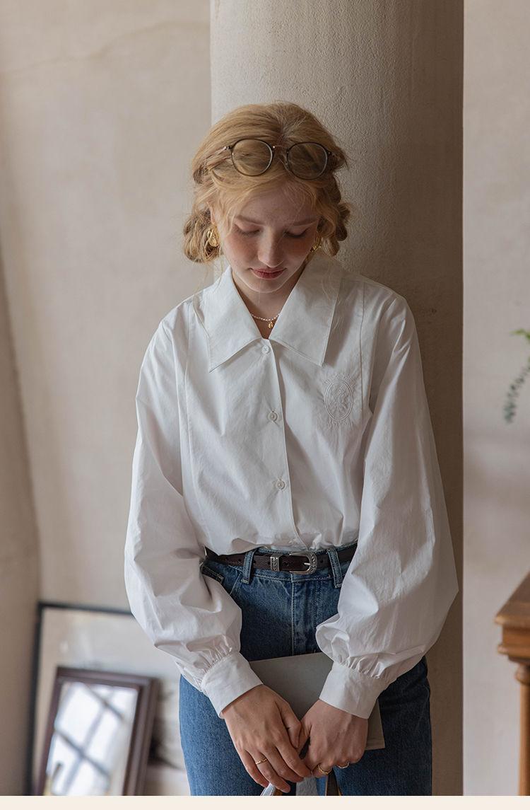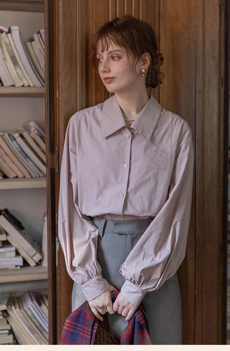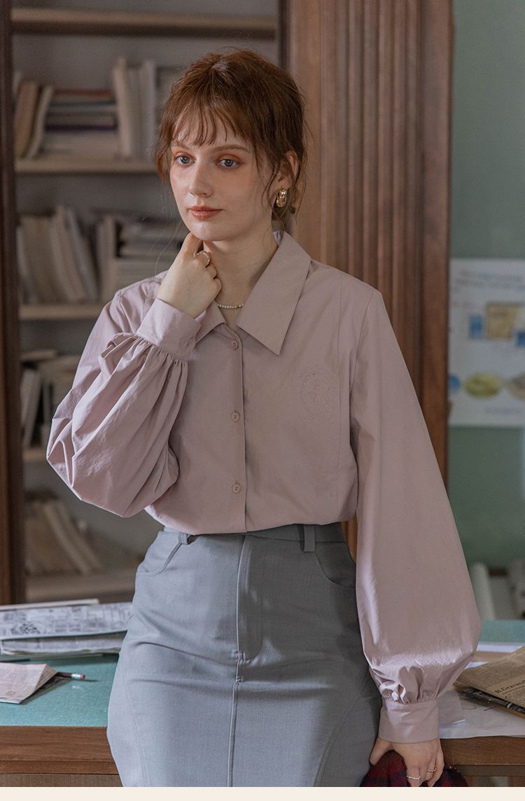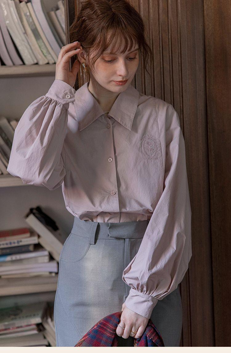 Camisa de Bordado Tridimensional de Rosa Shanlidaidi para Mujer de Manga Larga Retro Francés Simple para Ir al Trabajo Diseño Versátil Holgado