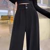 Pantalones de traje negros para mujer 2025 nuevos pantalones casuales otoño drapeado de alta gama cintura alta adelgazantes pierna recta pantalones de pierna ancha