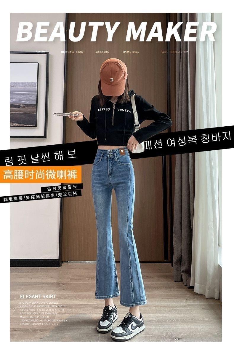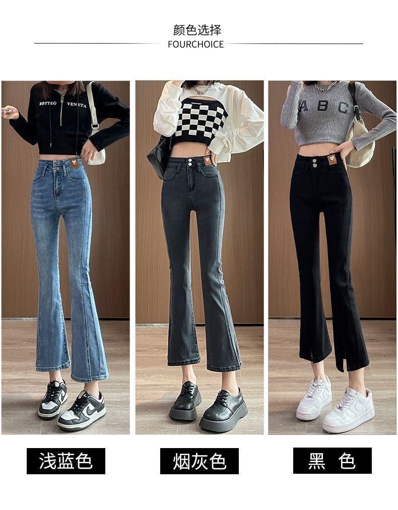 Shanli Dadi Jeans Acampanados Micro-acampanados Divididos Pequeños para Hombre Jeans Elásticos de Cintura Alta Delgados de Moda para Mujer