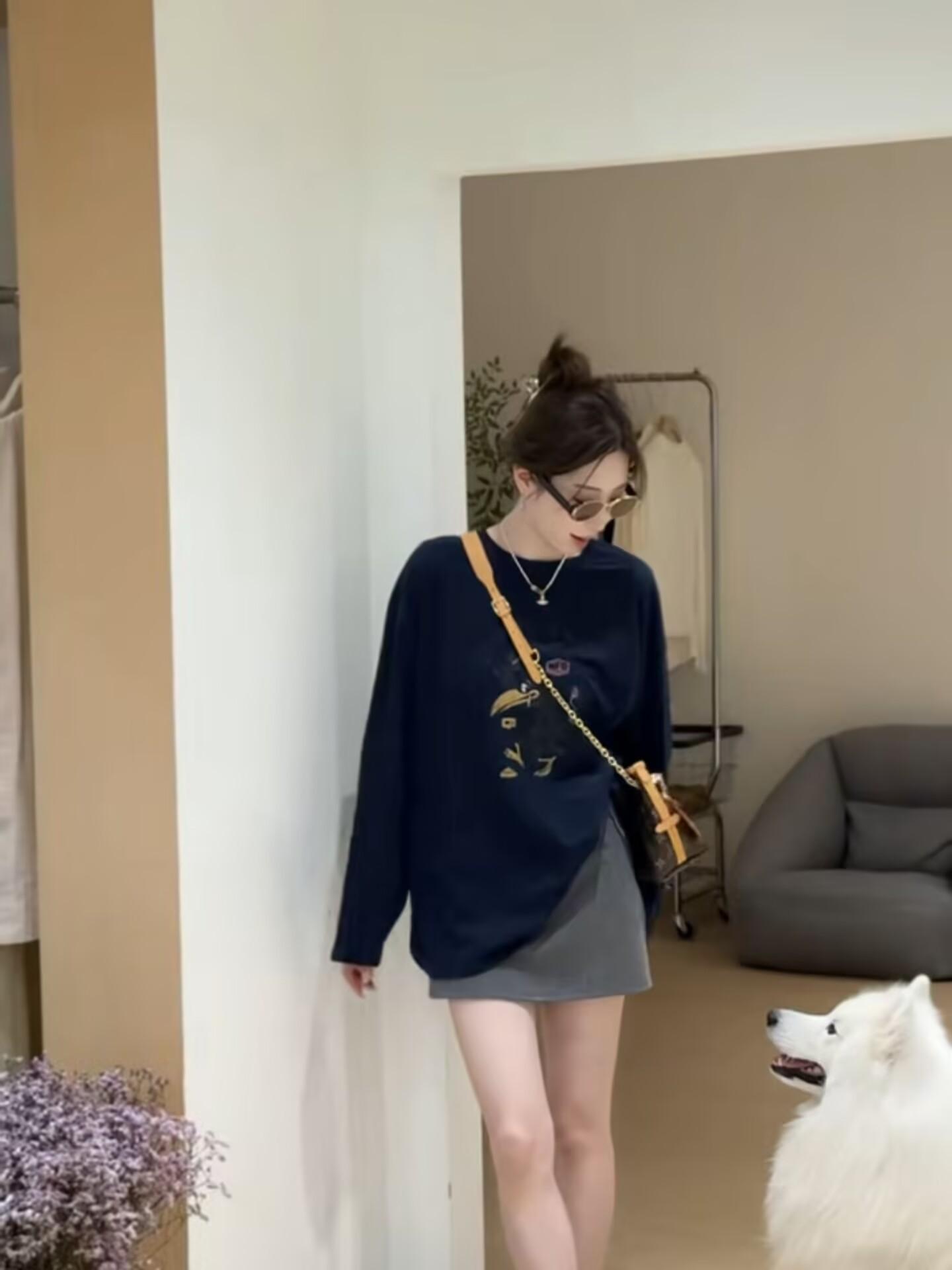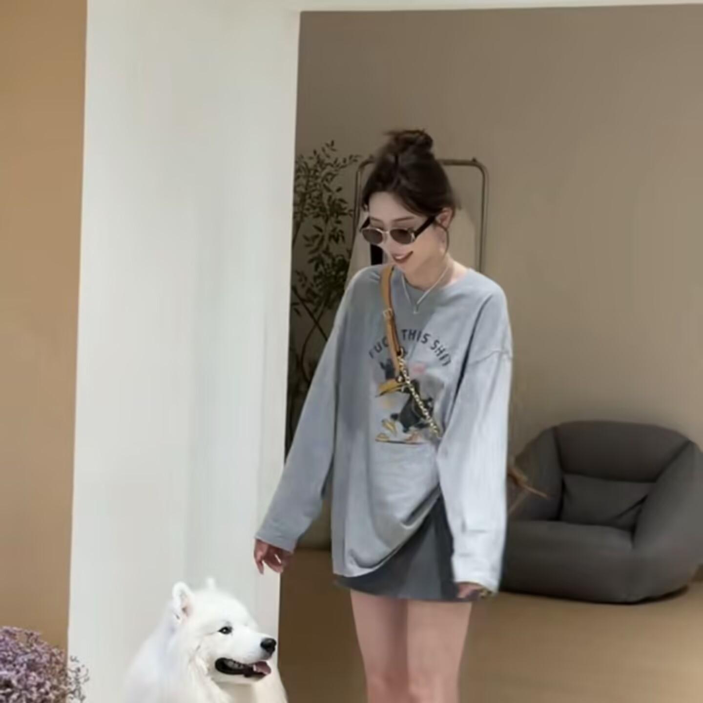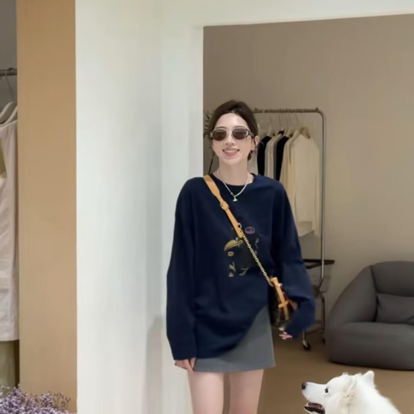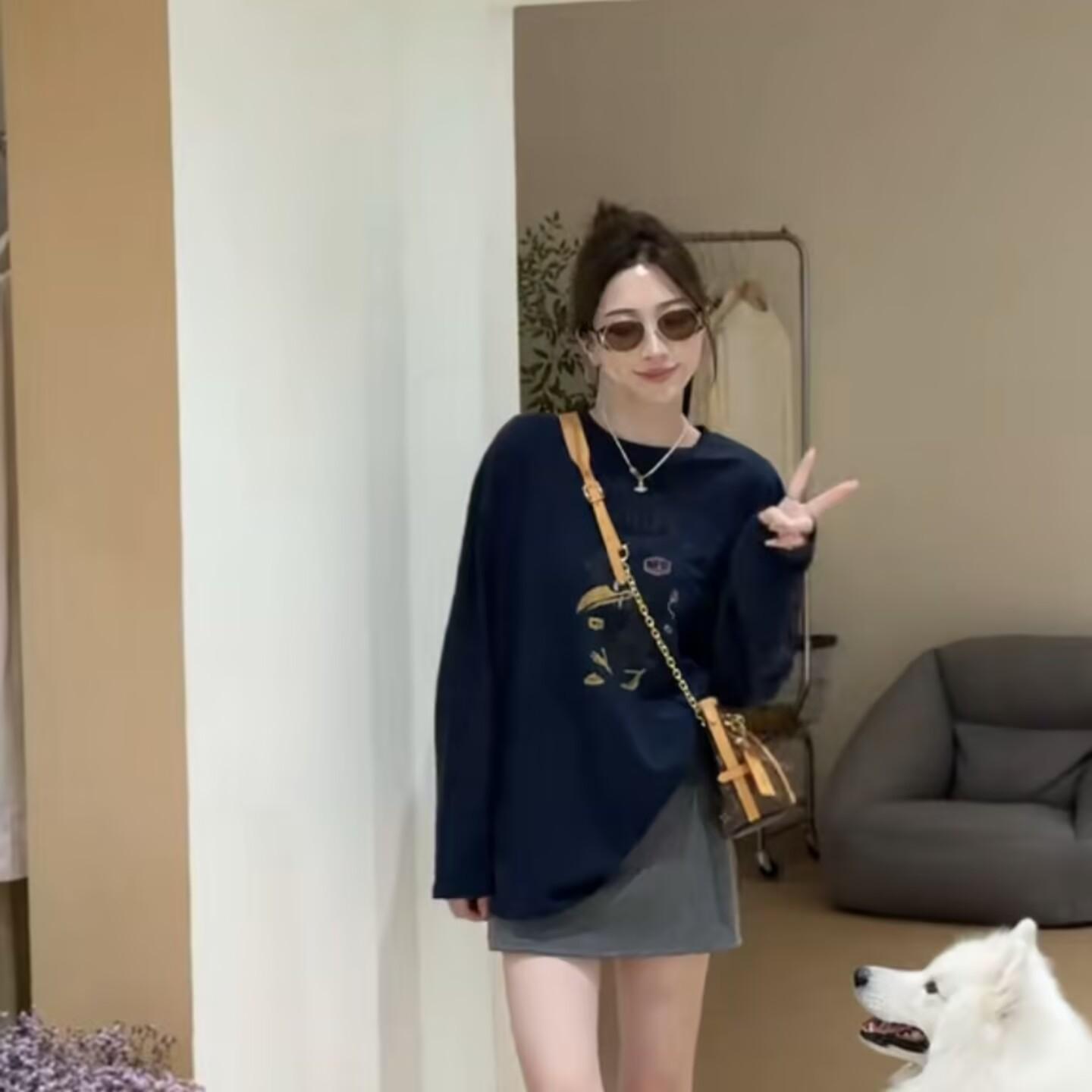 Sudadera holgada de cuello redondo, camiseta de manga larga para mujer, nuevo otoño, temperamento coreano, capa interior, camiseta básica, top adelgazante, moderno