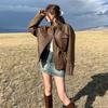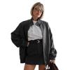 Abrigo de Chaqueta de Cuero Suelto Transfronterizo Europeo y Americano Otoño 2025 Cuello Alto Cremallera Chaqueta de Cuero Versátil Chaqueta de Cuero PU Texturizado Mujer