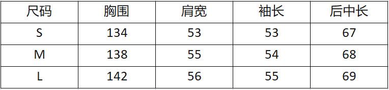 Control de precios al por menor: no menos de 278 Nota: La tabla de tallas corresponde a las tallas de placa de la industria textil. Puede haber variaciones debido a los diferentes métodos de medición de la prenda. Por favor, consulte sus medidas reales.