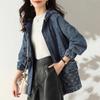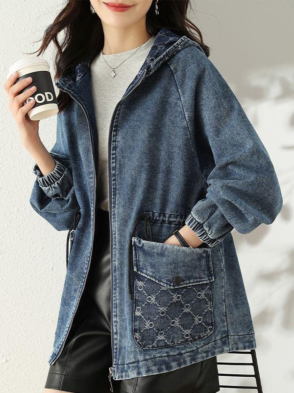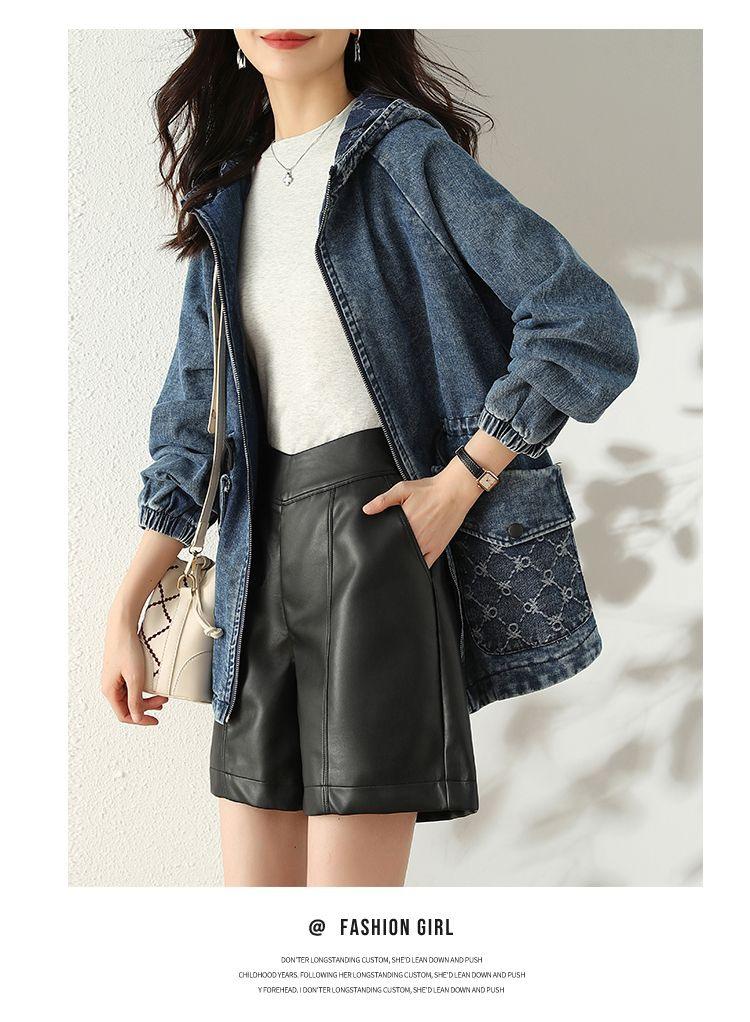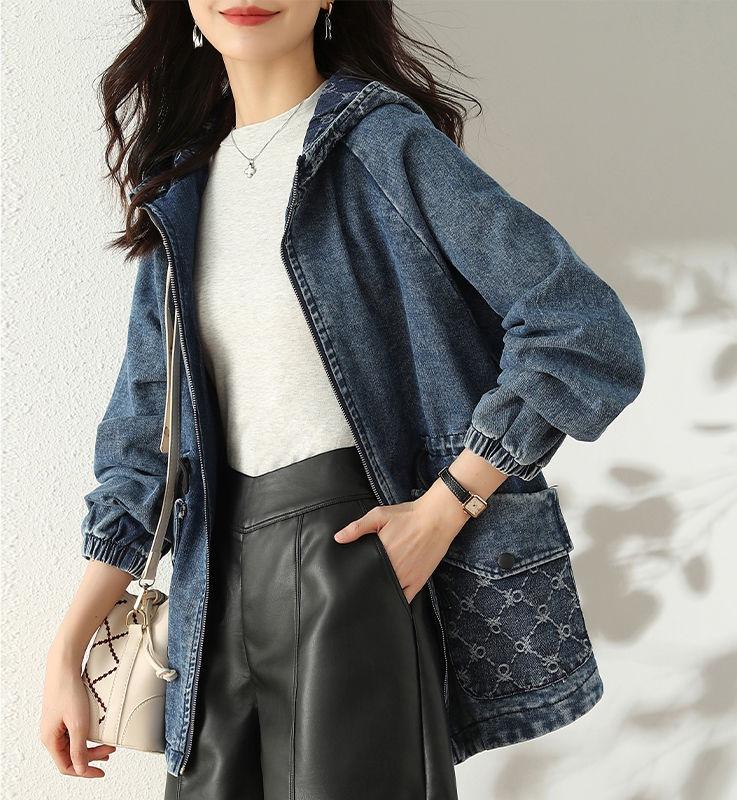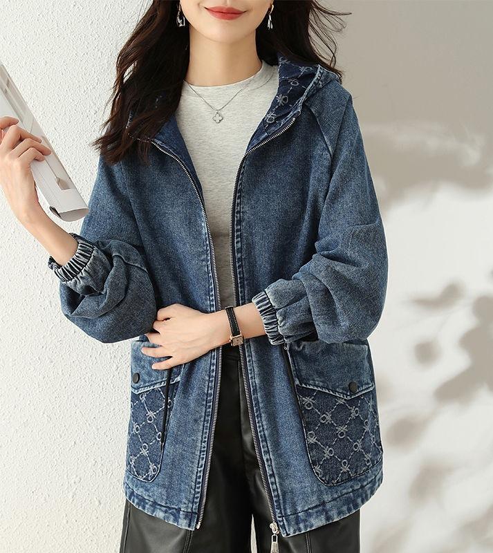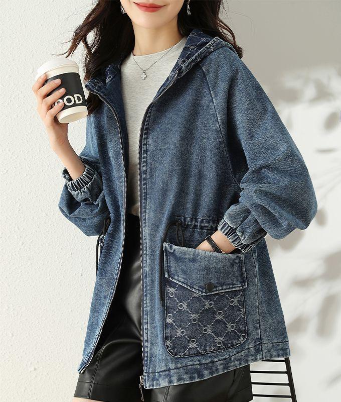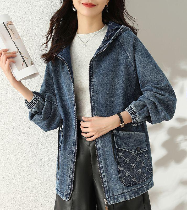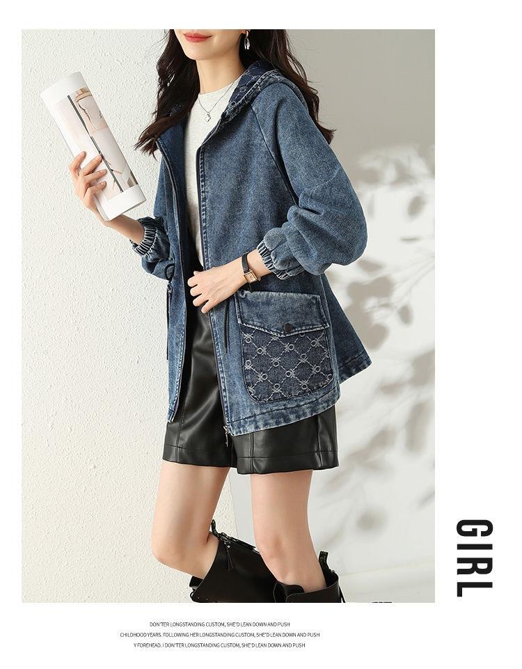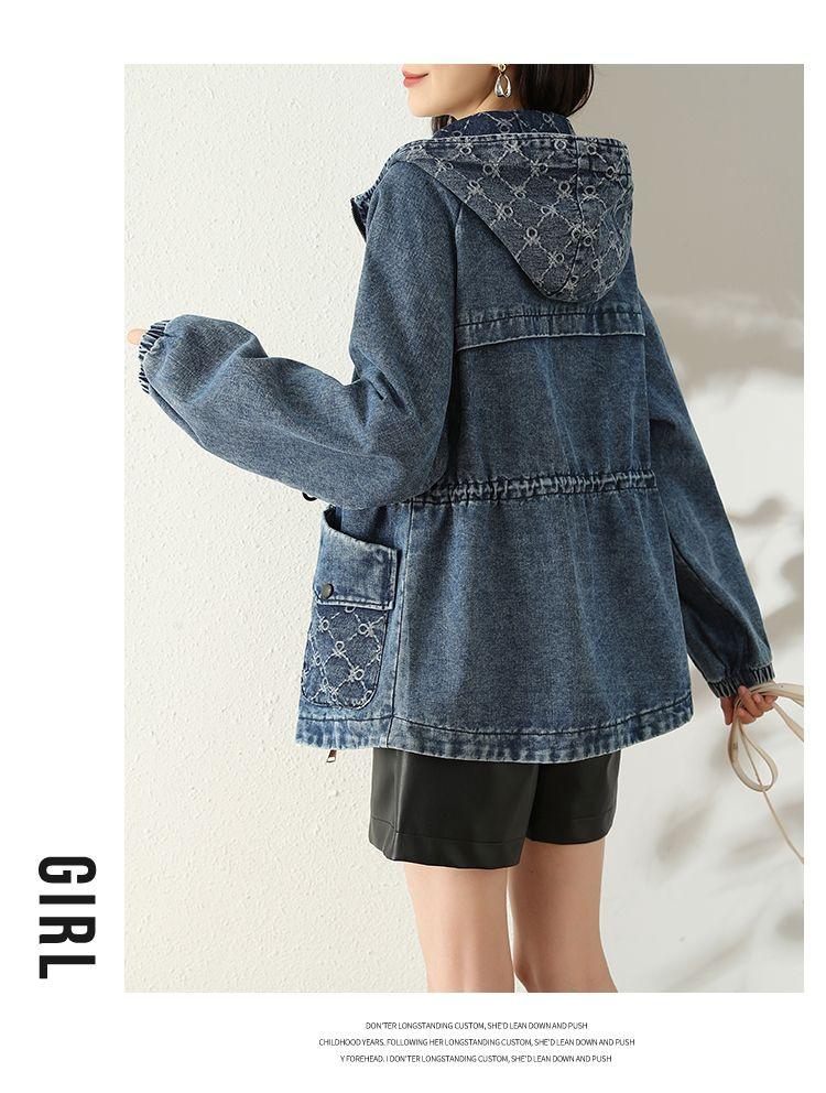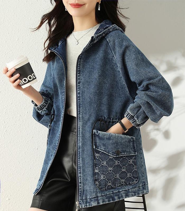 Chaqueta Corta de Mezclilla de Cintura para Mujer Moda de Primavera y Otoño Estilo Coreano Suelta Talla Grande con Capucha Chaqueta Casual de Mezclilla Tops
