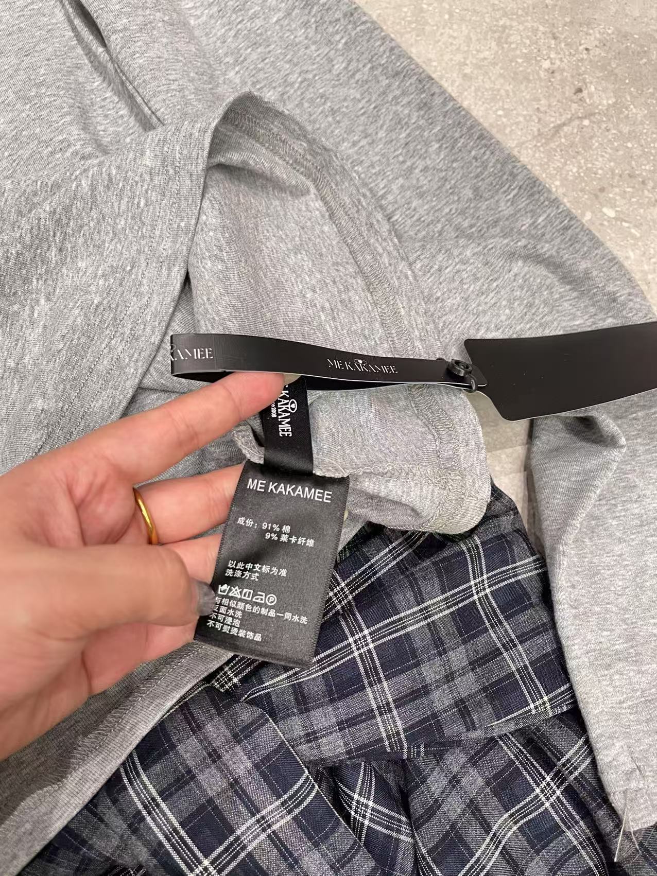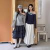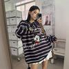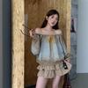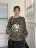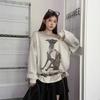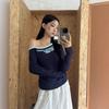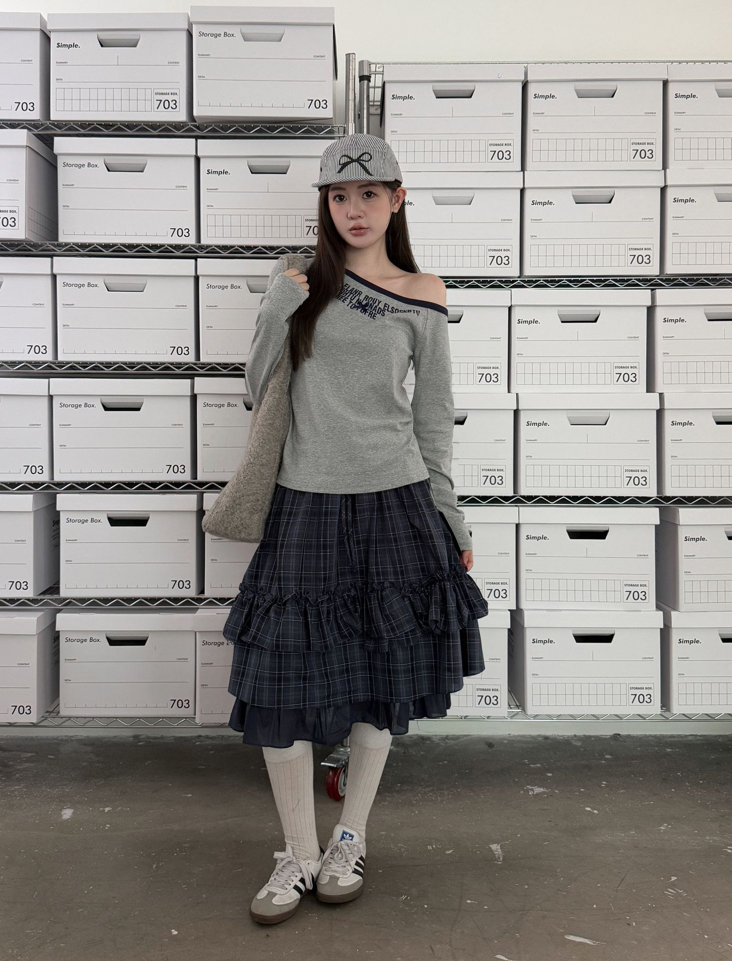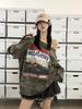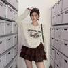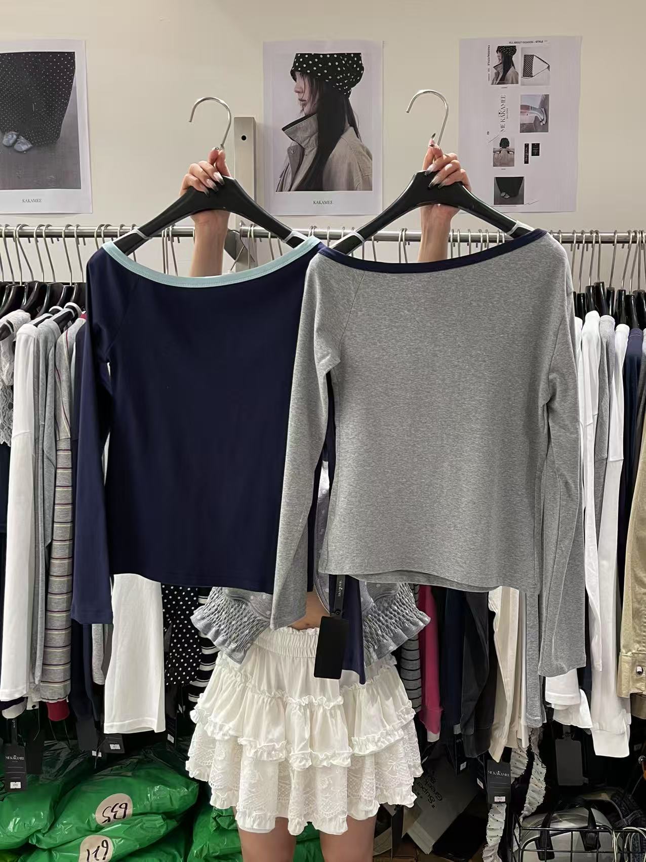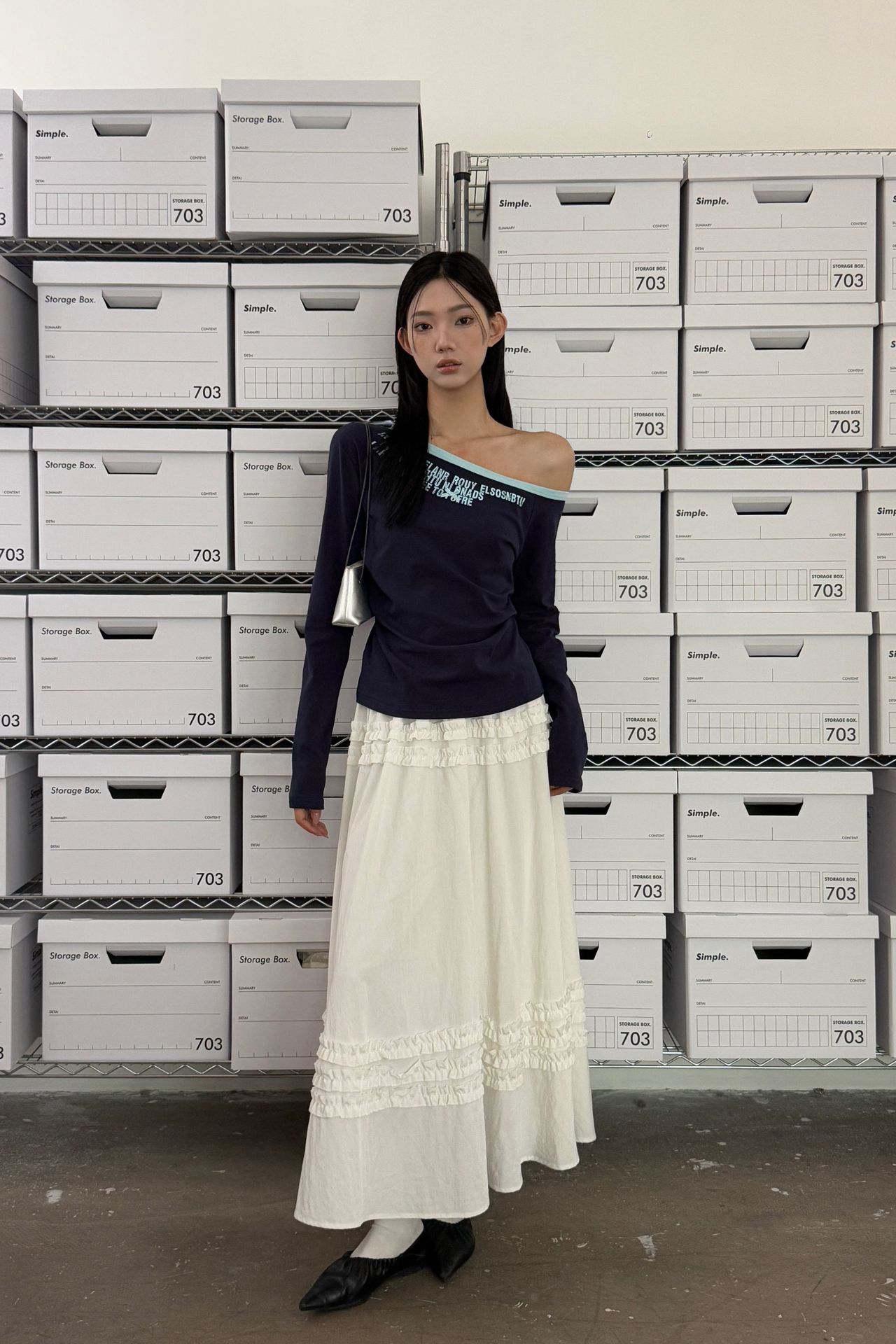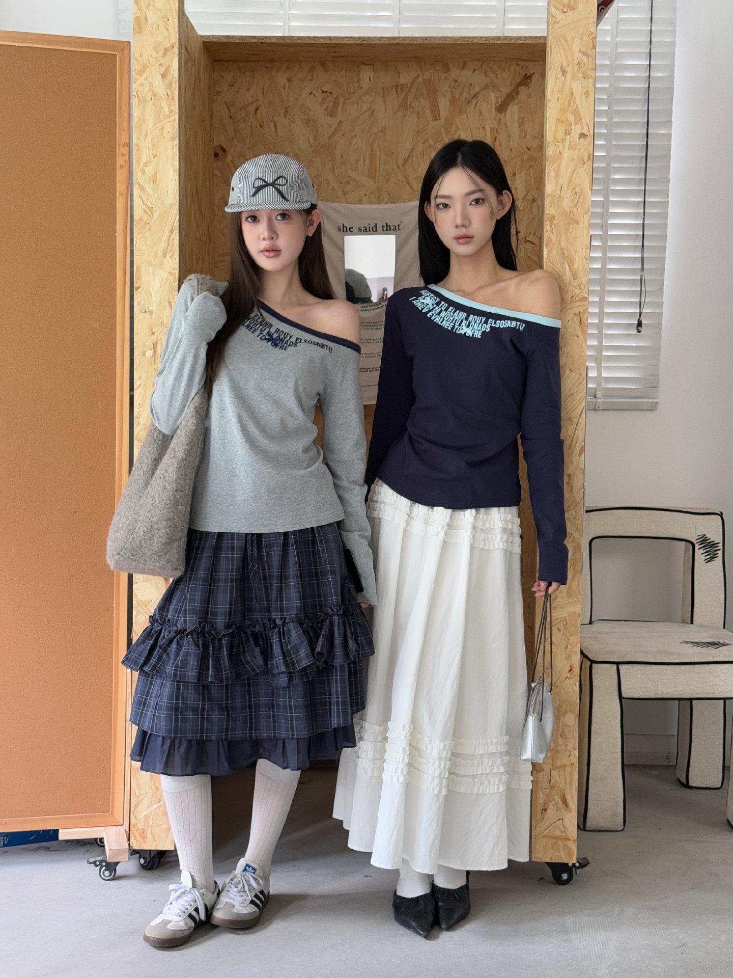 ME KAKAMEE Trece Líneas Otoño Dulce Cool Graffiti Letra Bloque de Color Un Hombro Elástico Versión Pequeña Camiseta de Manga Larga Han 8856