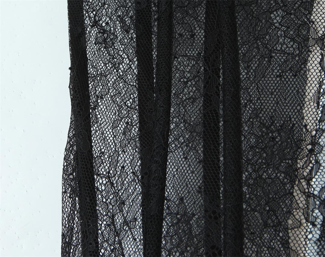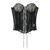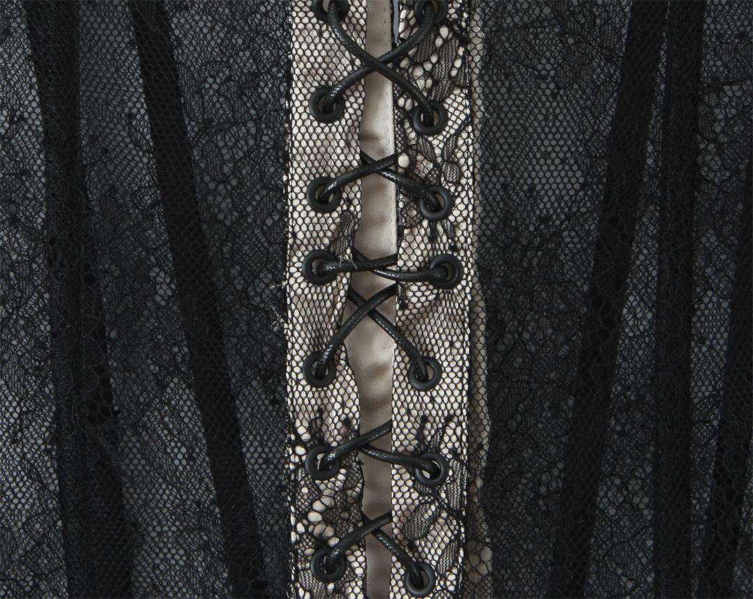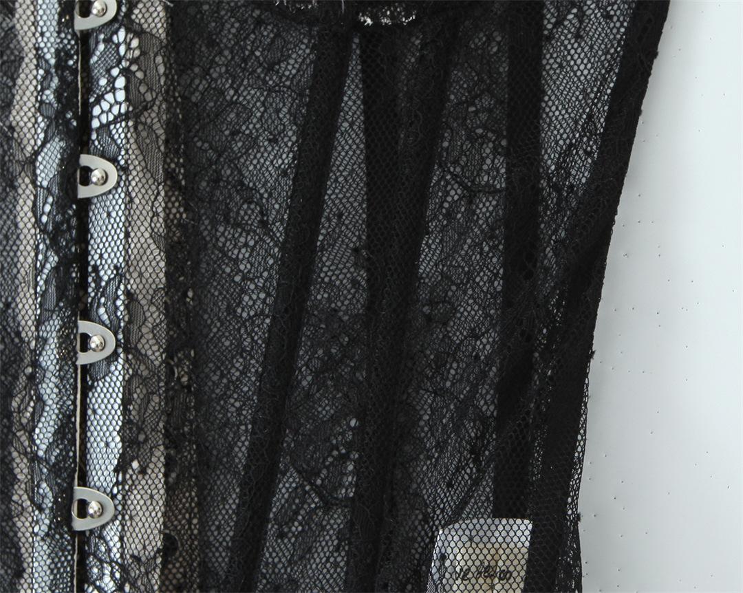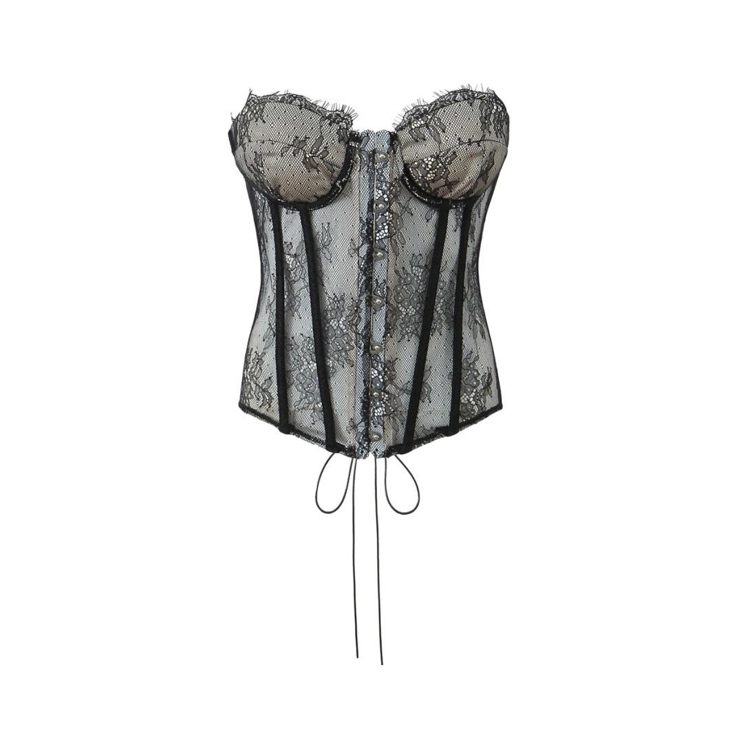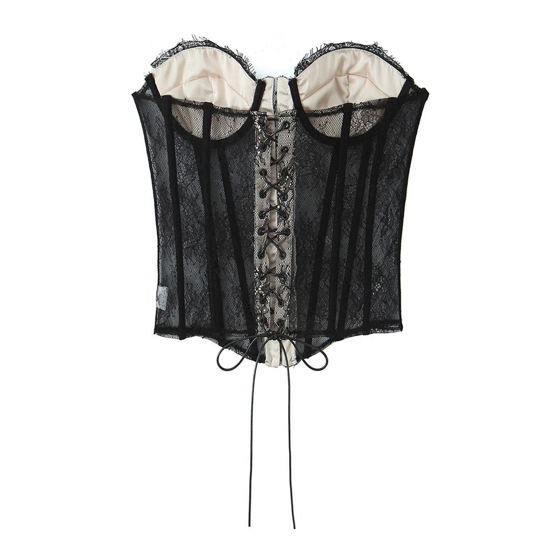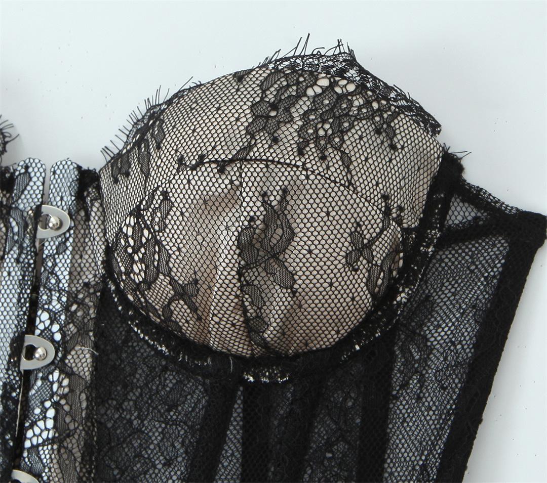 Blusa sexy de encaje estilo blogger europeo y americano, ajustada, ceñidor de cintura con lazo cruzado, sin tirantes, chaleco sexy transparente para mujer