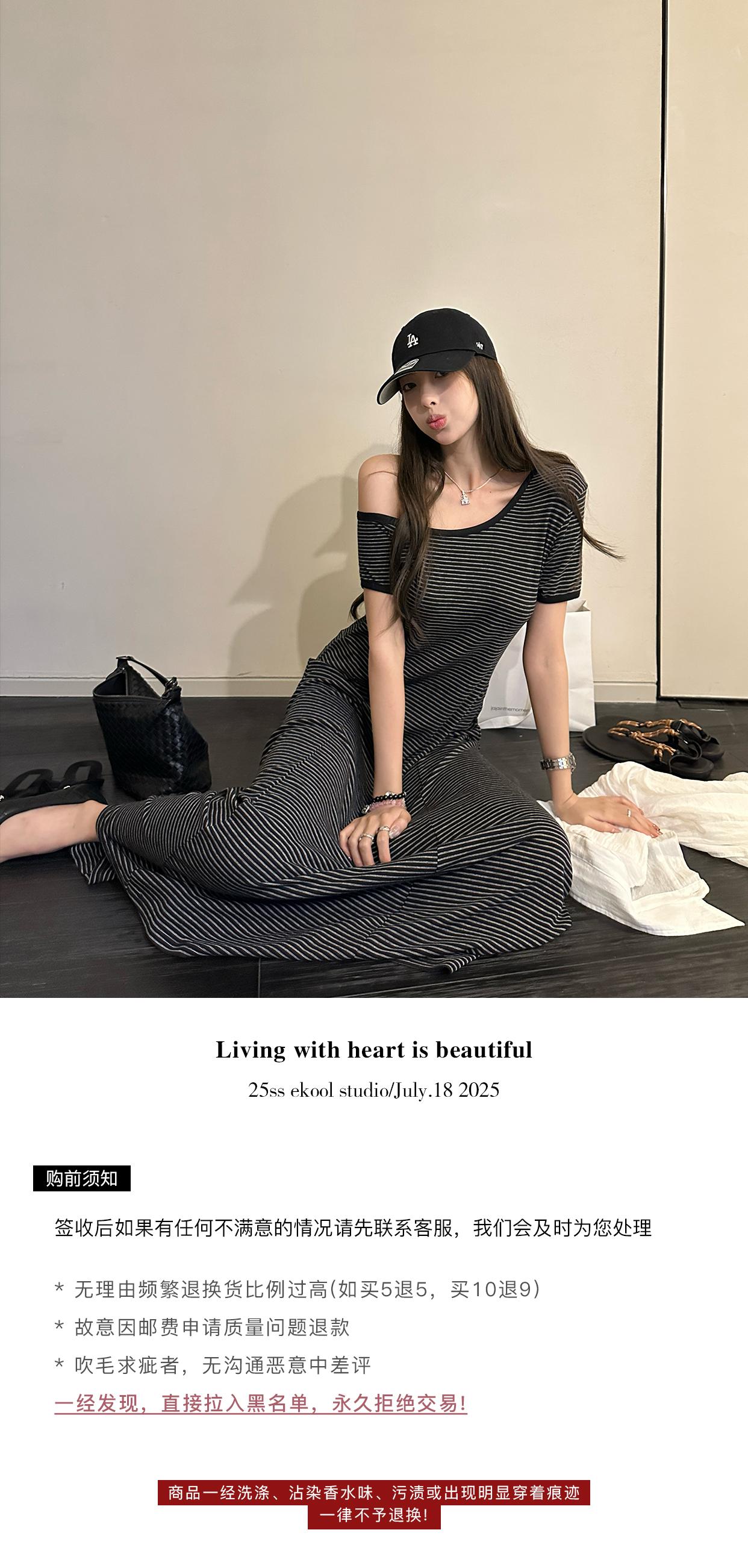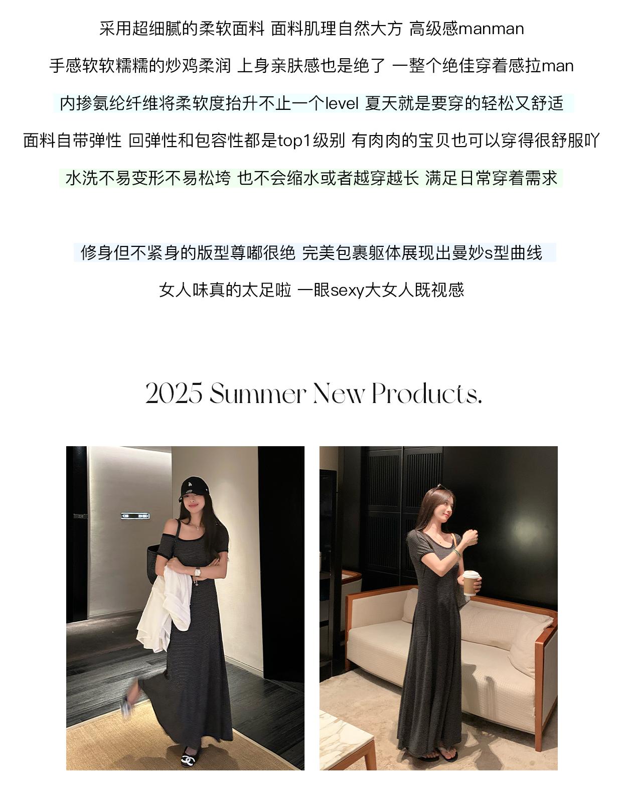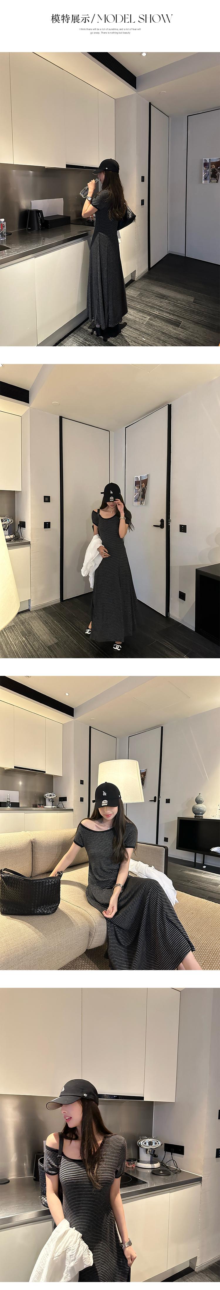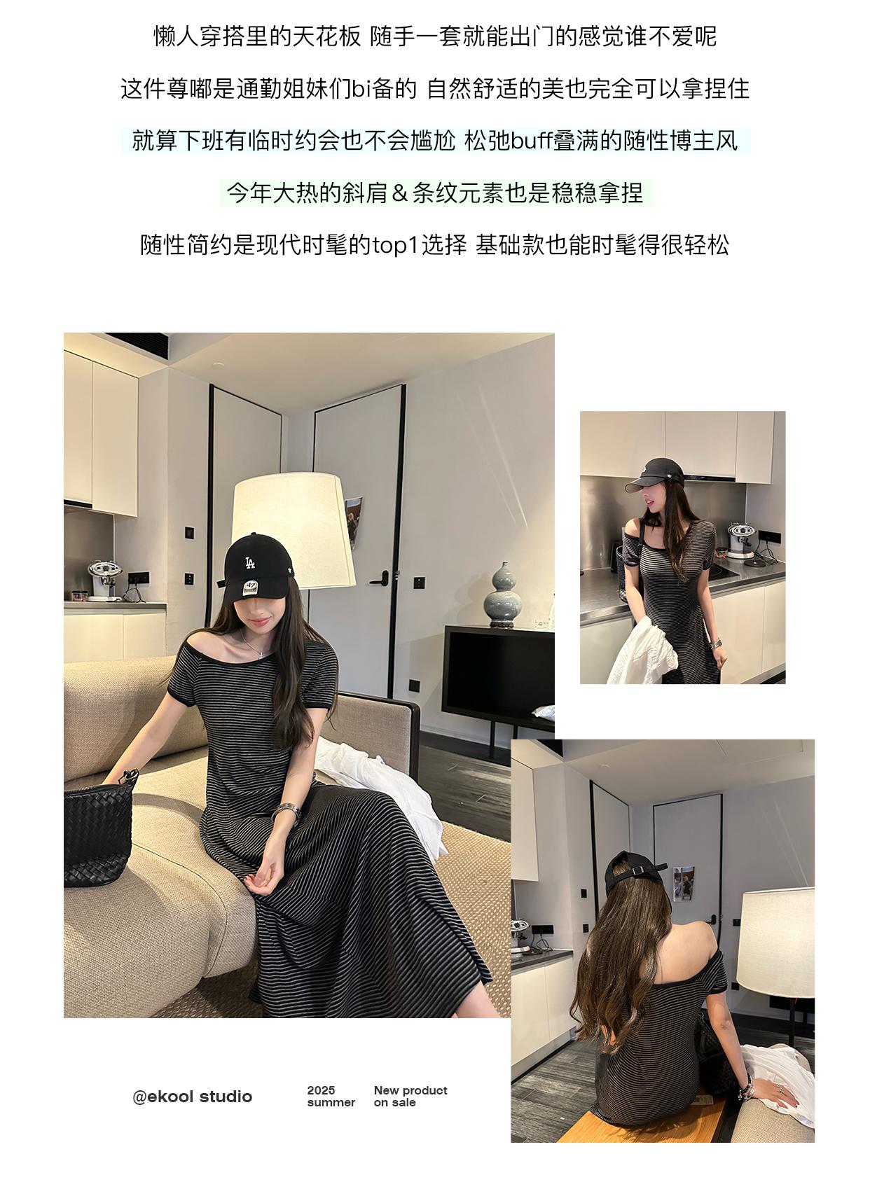 Vestido de rayas de manga corta Bestwon para mujer verano 2025 nuevo corte ajustado adelgazante un hombro línea A vestido largo