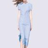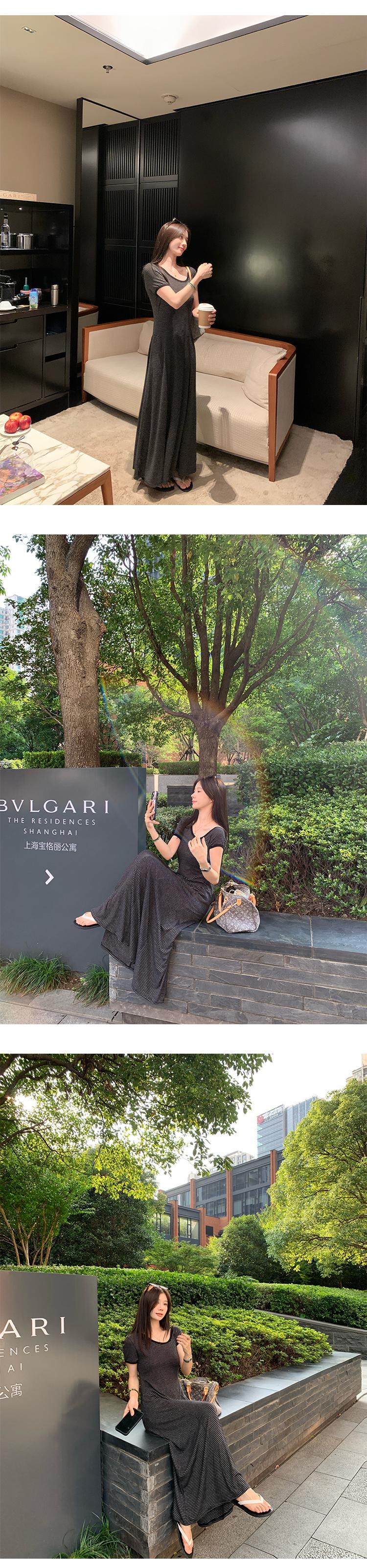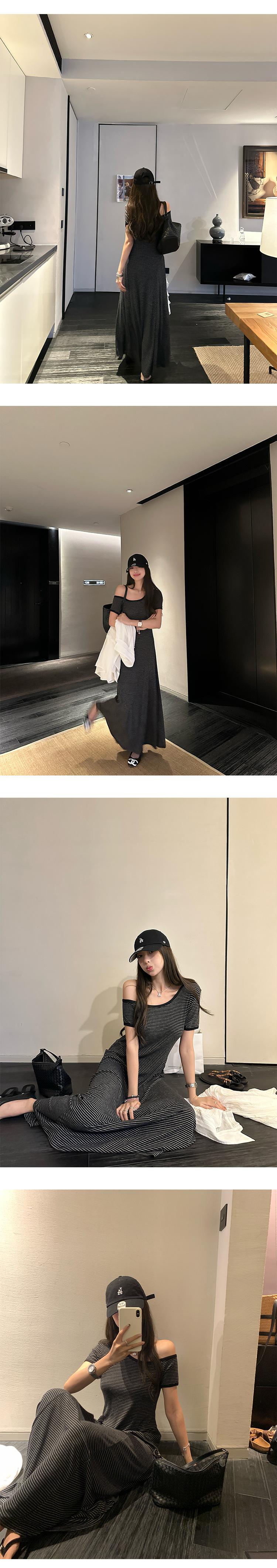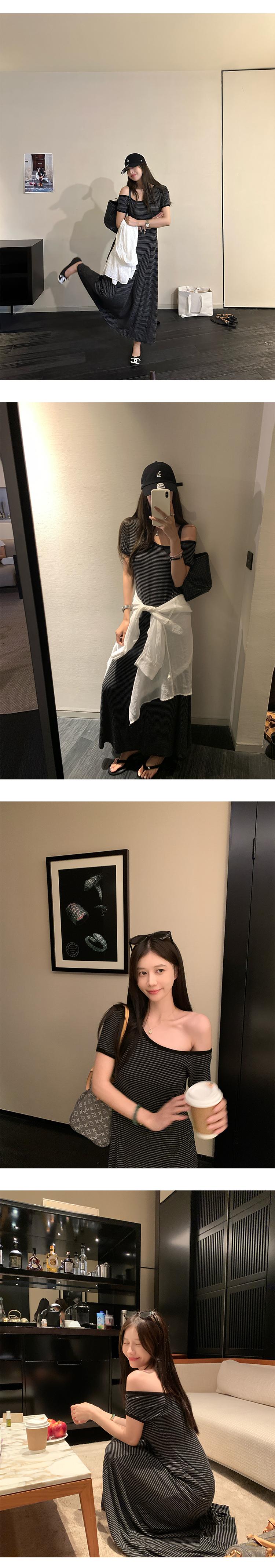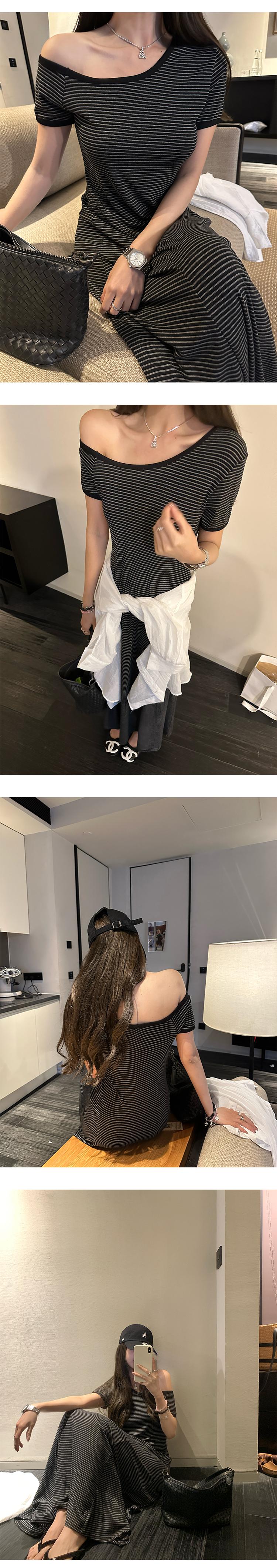 Vestido de rayas de manga corta Bestwon para mujer verano 2025 nuevo corte ajustado adelgazante un hombro línea A vestido largo