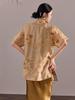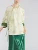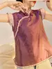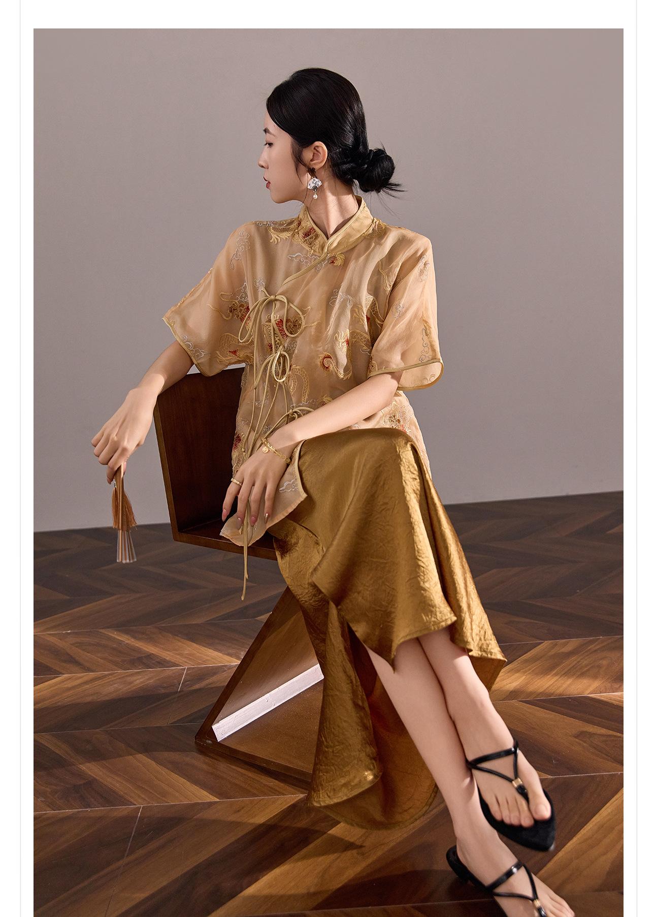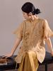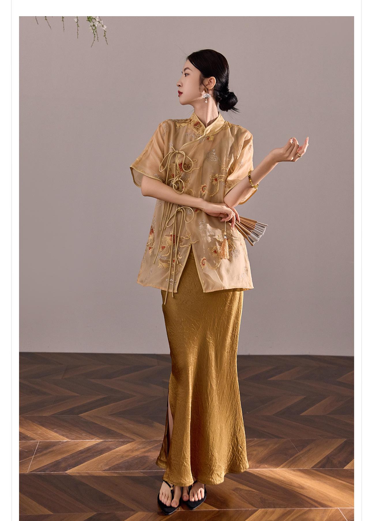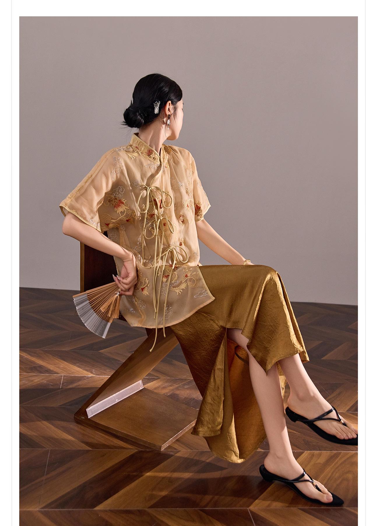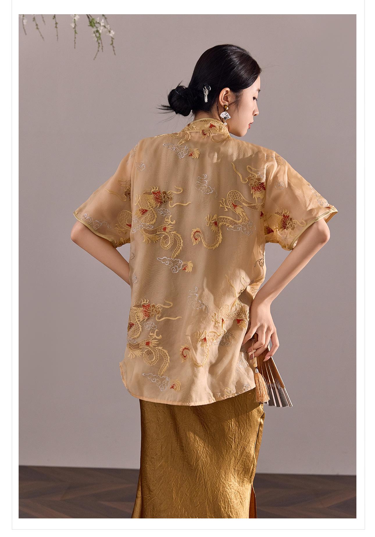 Camisa Bordada Estilo Chino con Diseño Nacional, Solapa Diagonal, Anudado, Top de Manga Corta de Seda de Morera de Alta Calidad Modelo Zx M5100