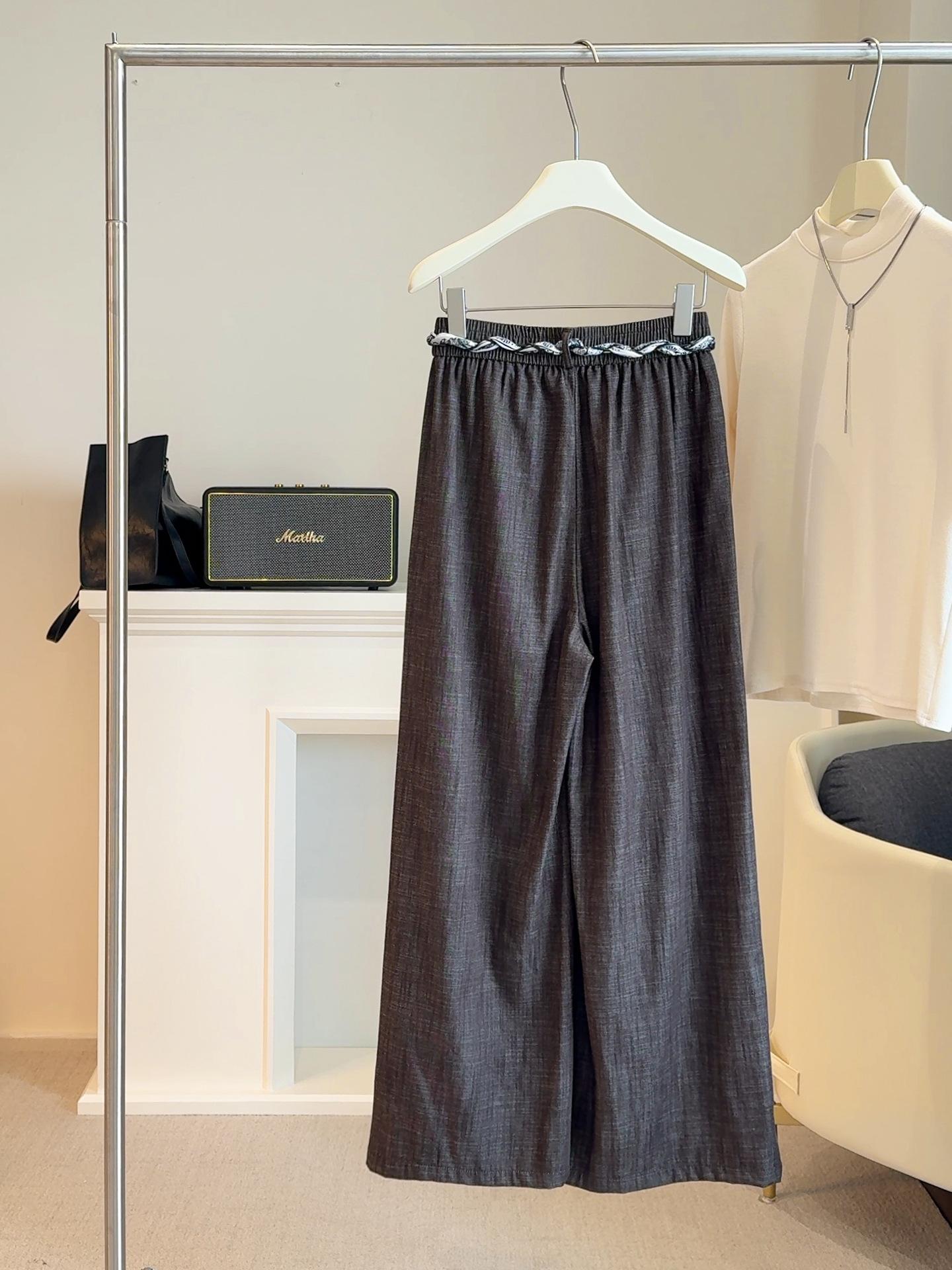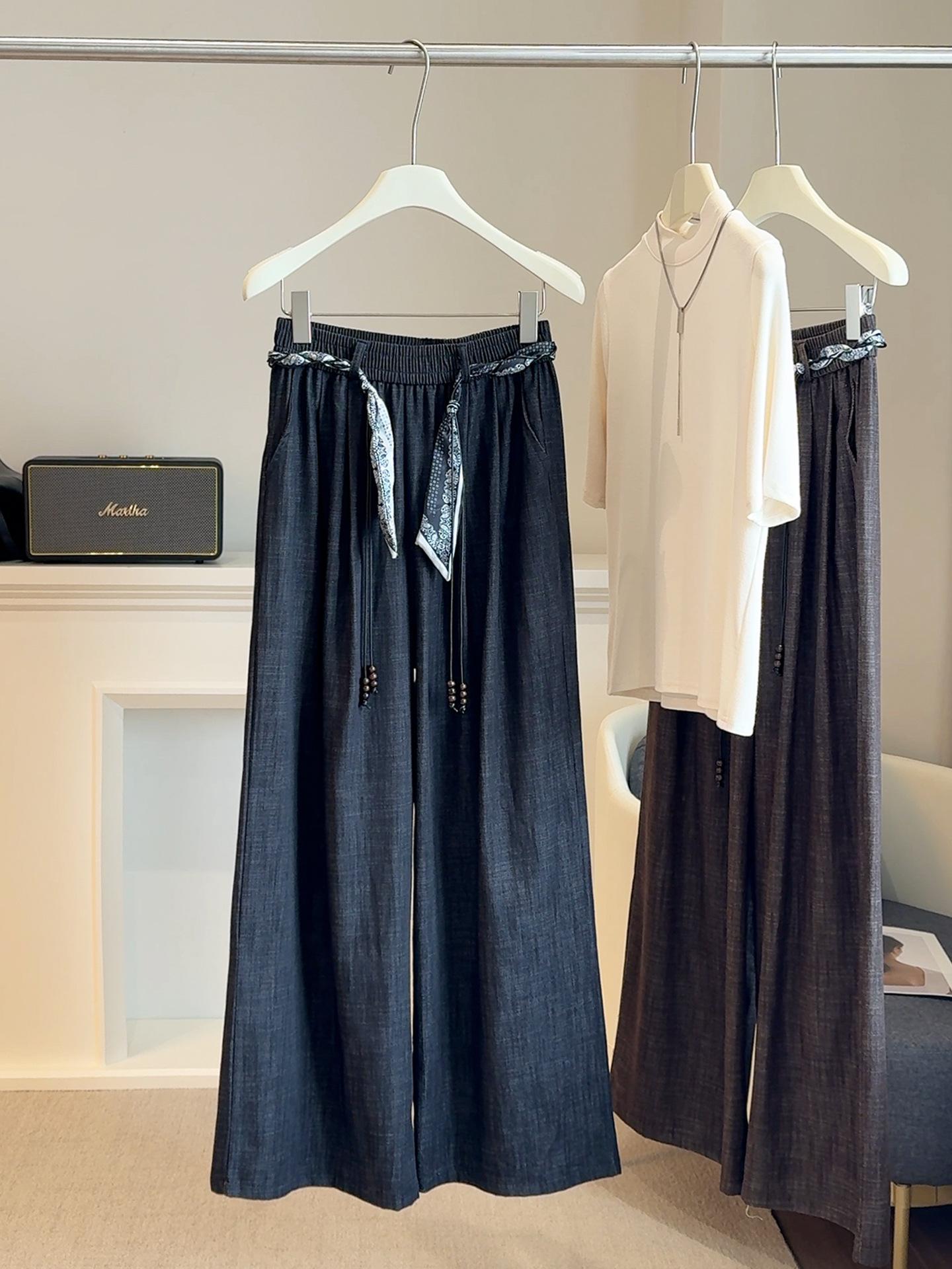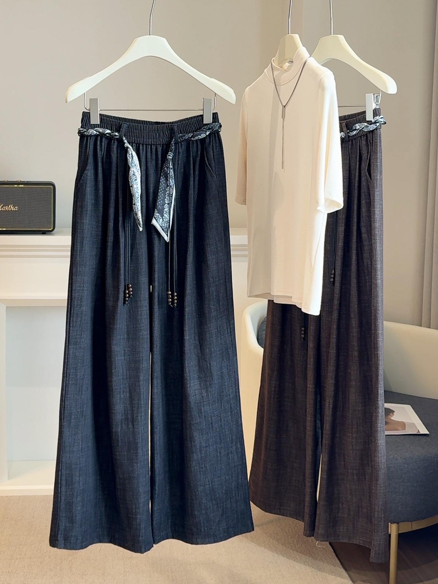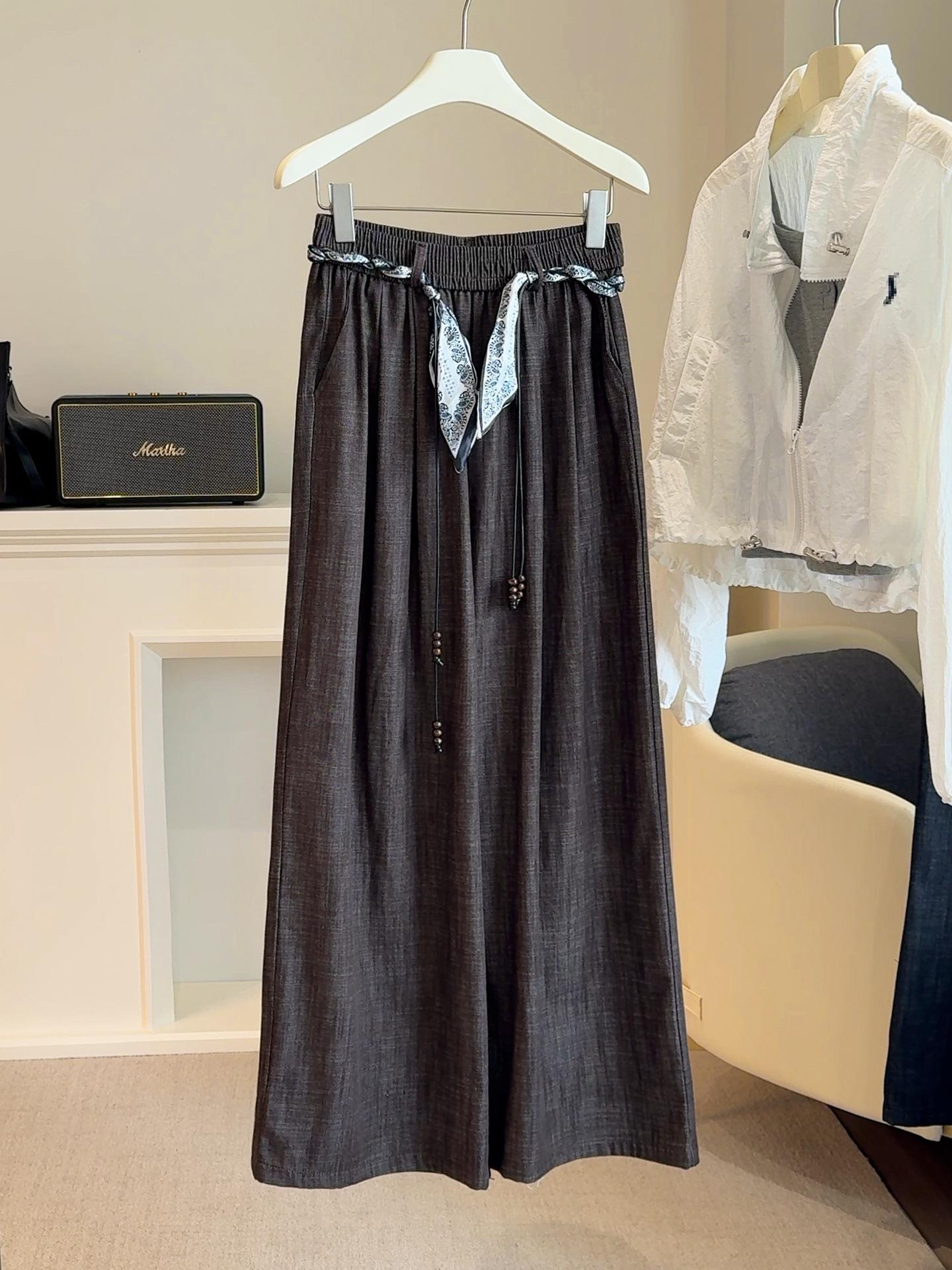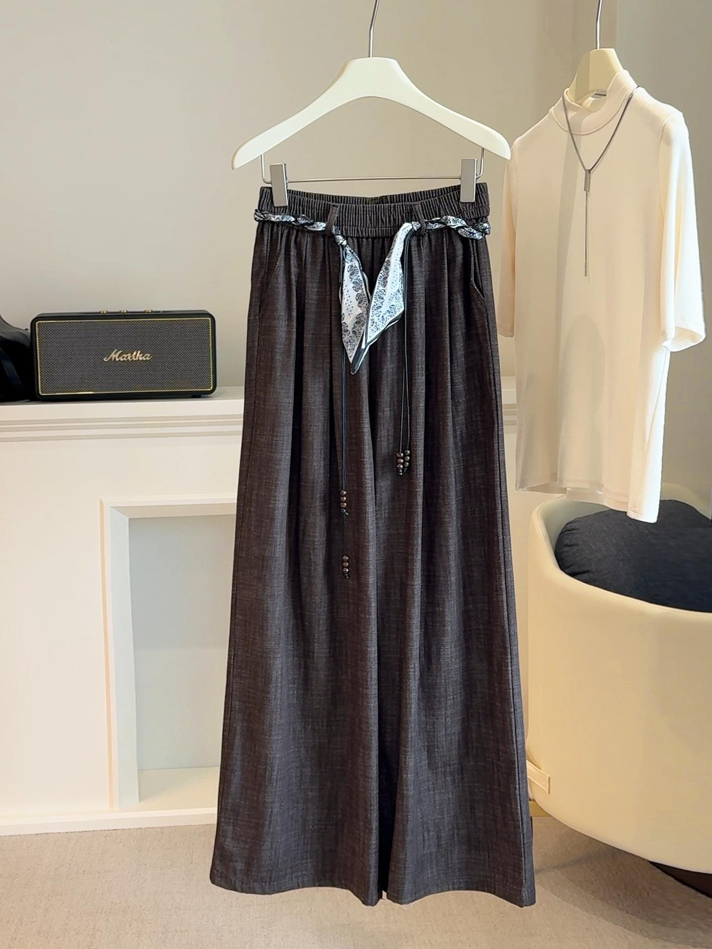 Pantalones casuales holgados drapeados adelgazantes texturizados casuales para mujer 2025 otoño nuevos cintura elástica pantalones de pierna ancha A6295