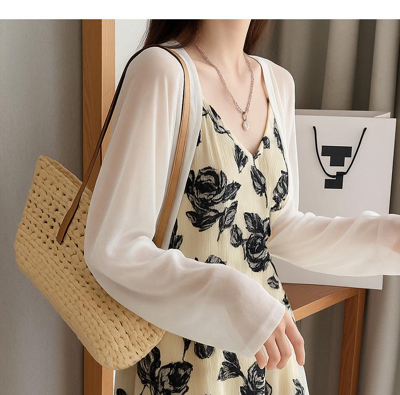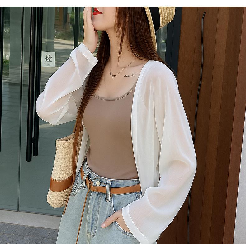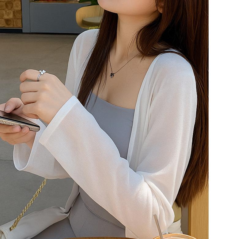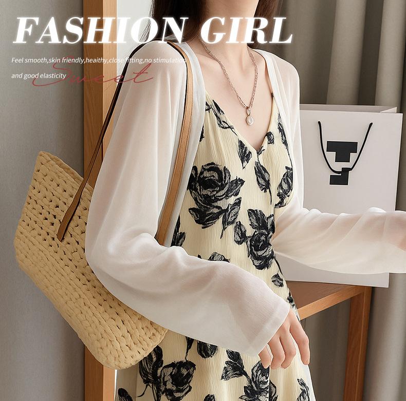Nuevo Estilo Chal Pequeño Ropa Exterior para Mujer, Cárdigan de Seda de Hielo Protección Solar, Cubre-Hombros Fino de Verano, Capa Pequeña, Top Corto, Camisa para Aire Acondicionado