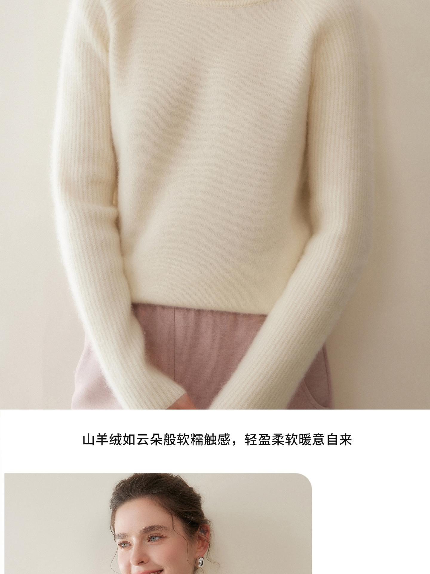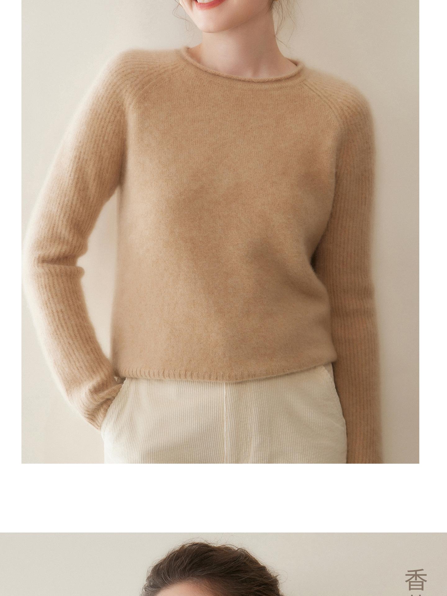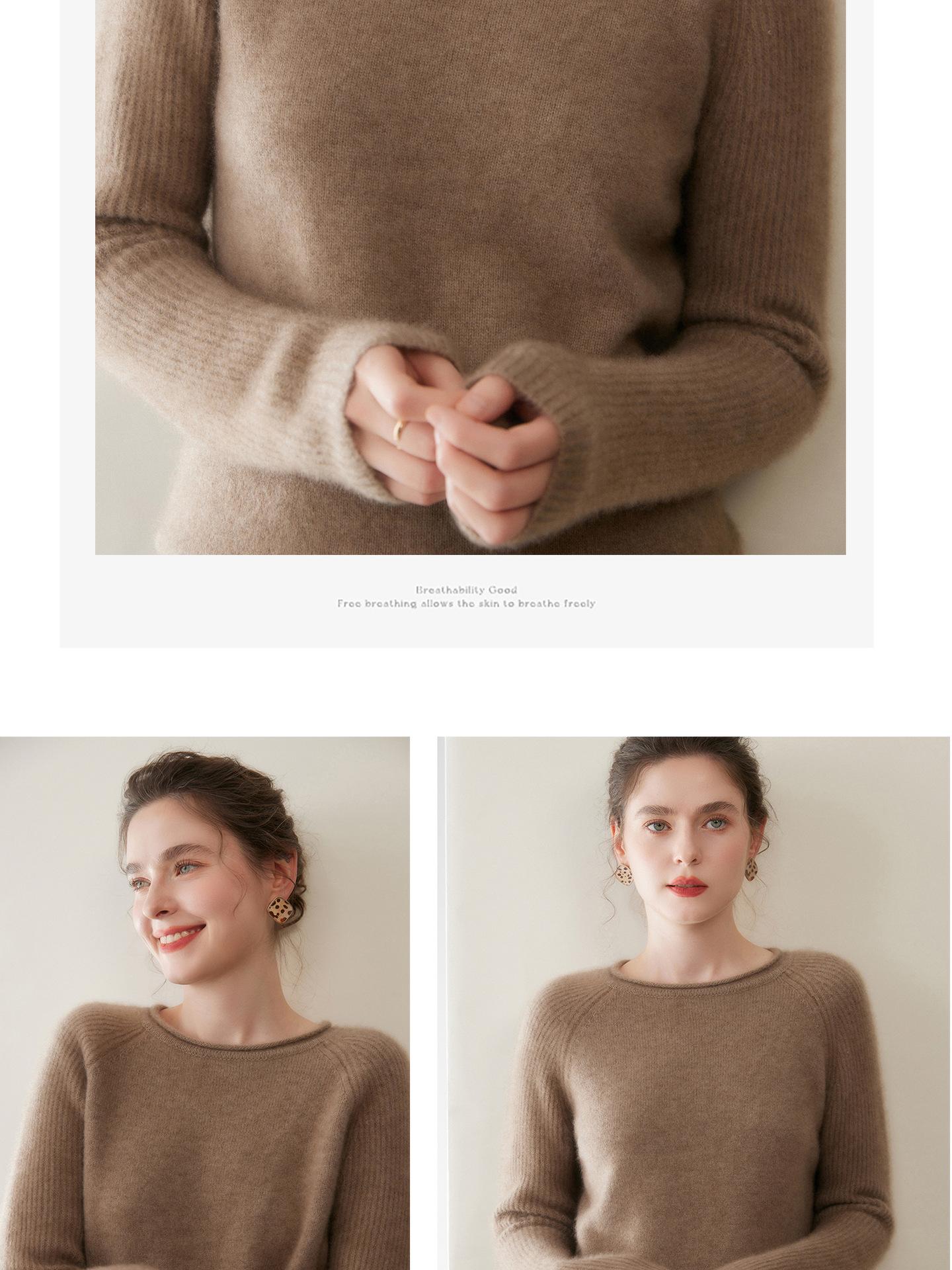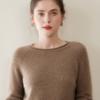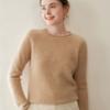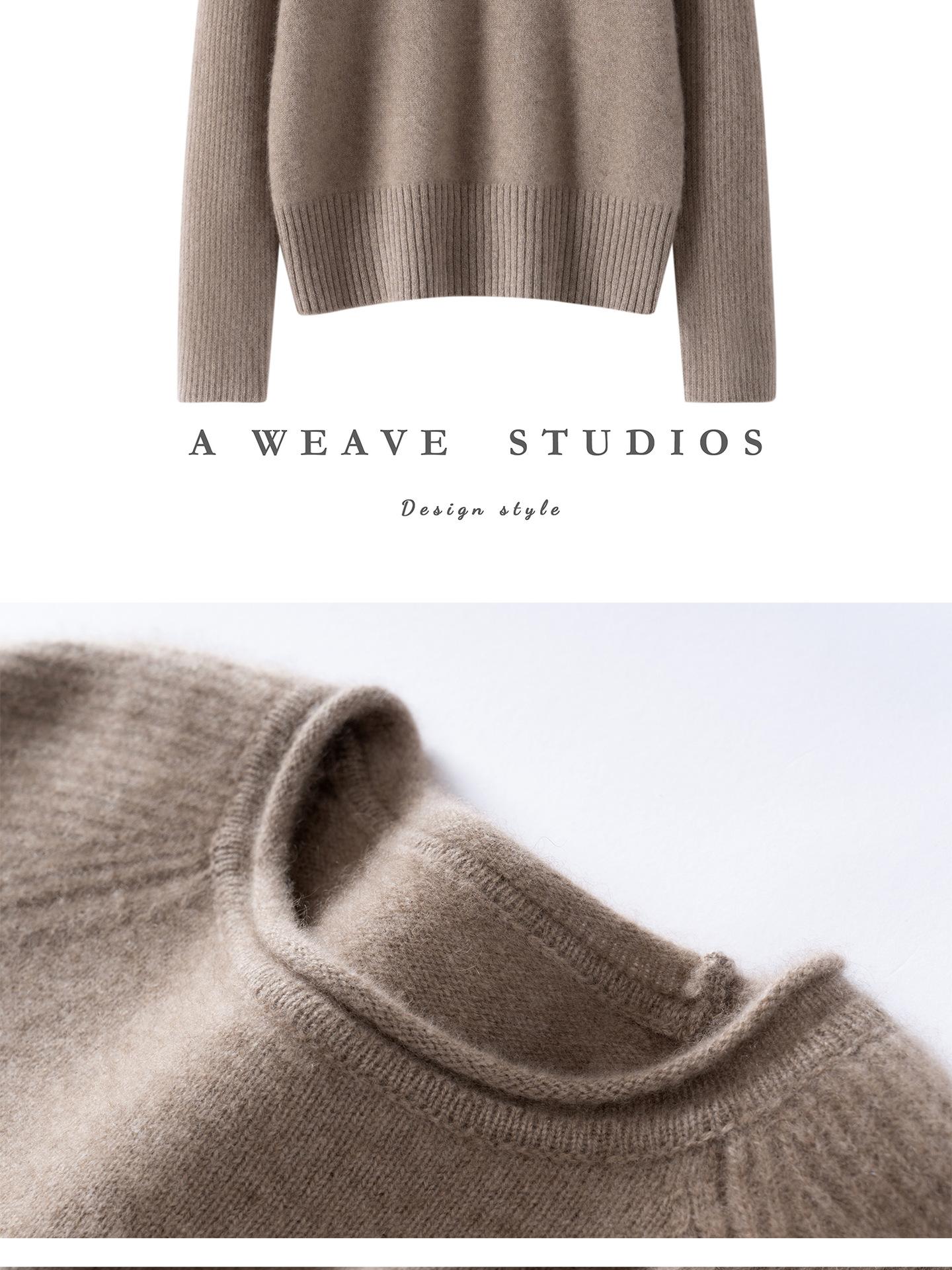 Nueva Otoño/Invierno Simple Versátil Color Sólido Tejido de Cachemira Camiseta Base Suelta Adelgazante Jersey Suéter para Mujer Capa Interior