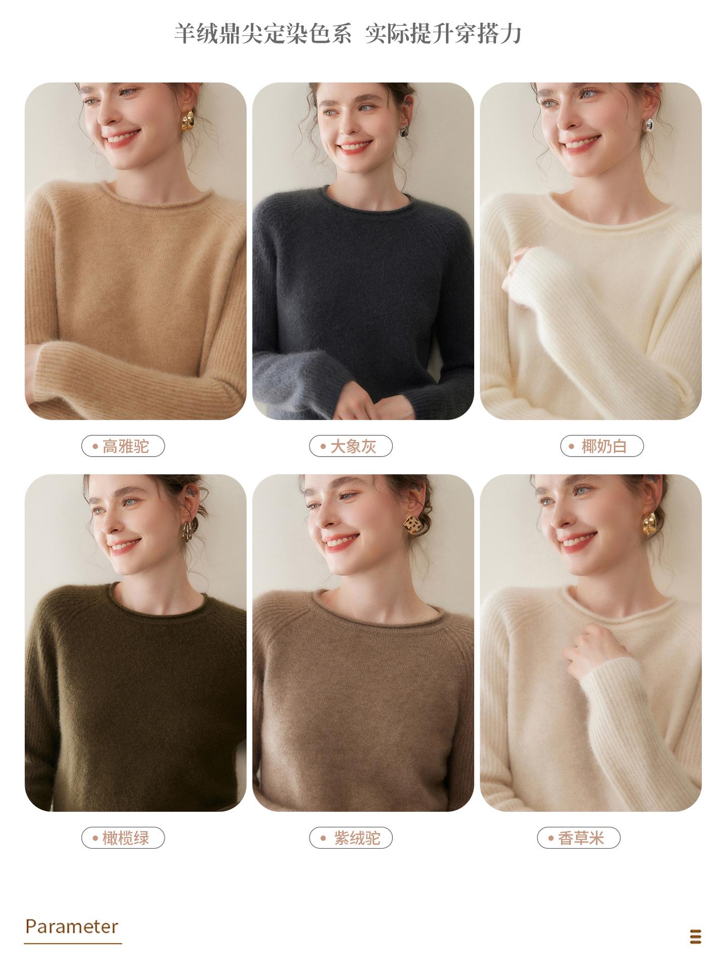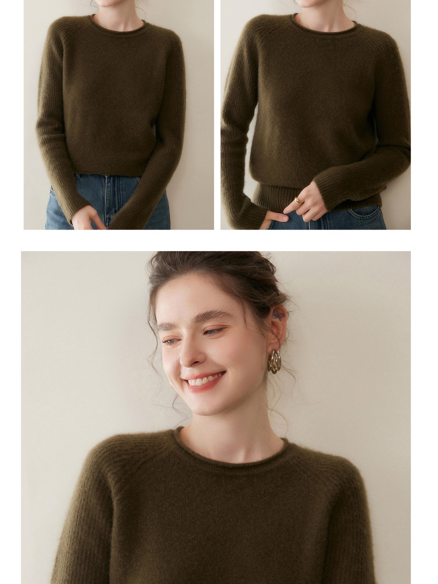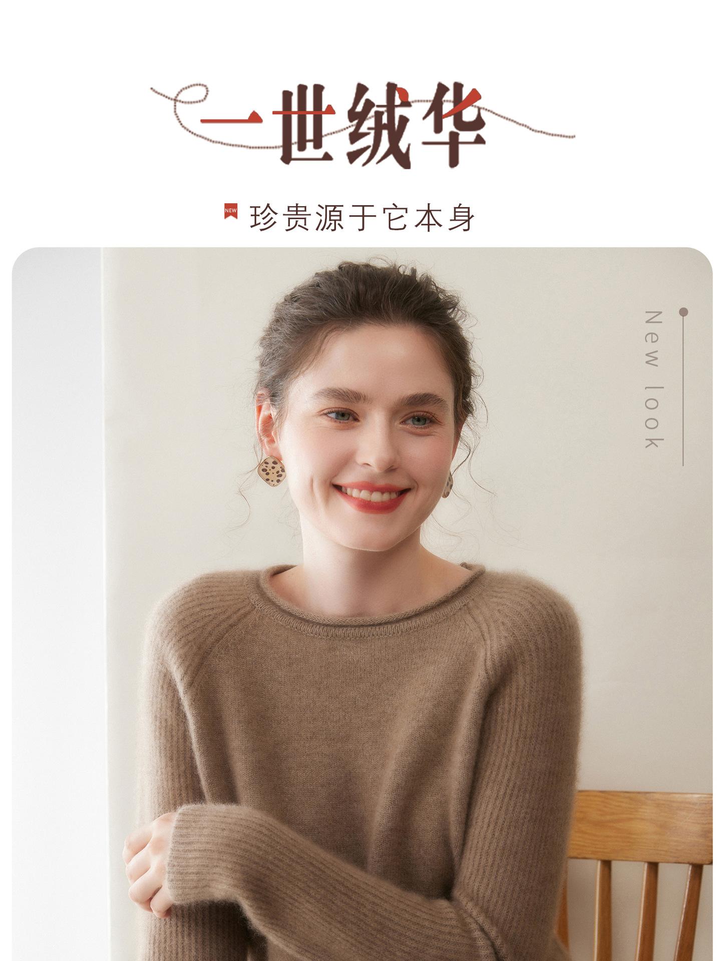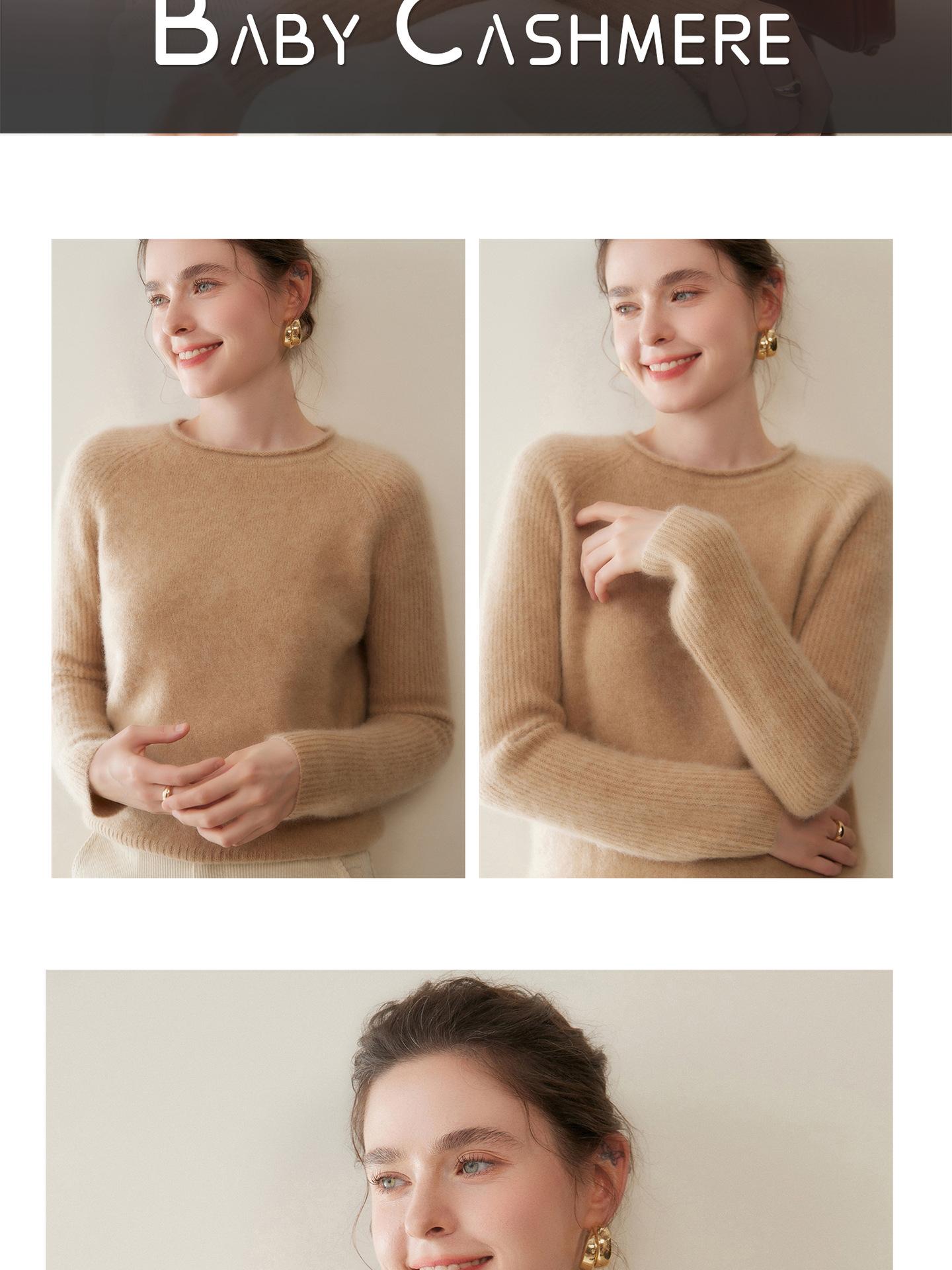 Nueva Otoño/Invierno Simple Versátil Color Sólido Tejido de Cachemira Camiseta Base Suelta Adelgazante Jersey Suéter para Mujer Capa Interior