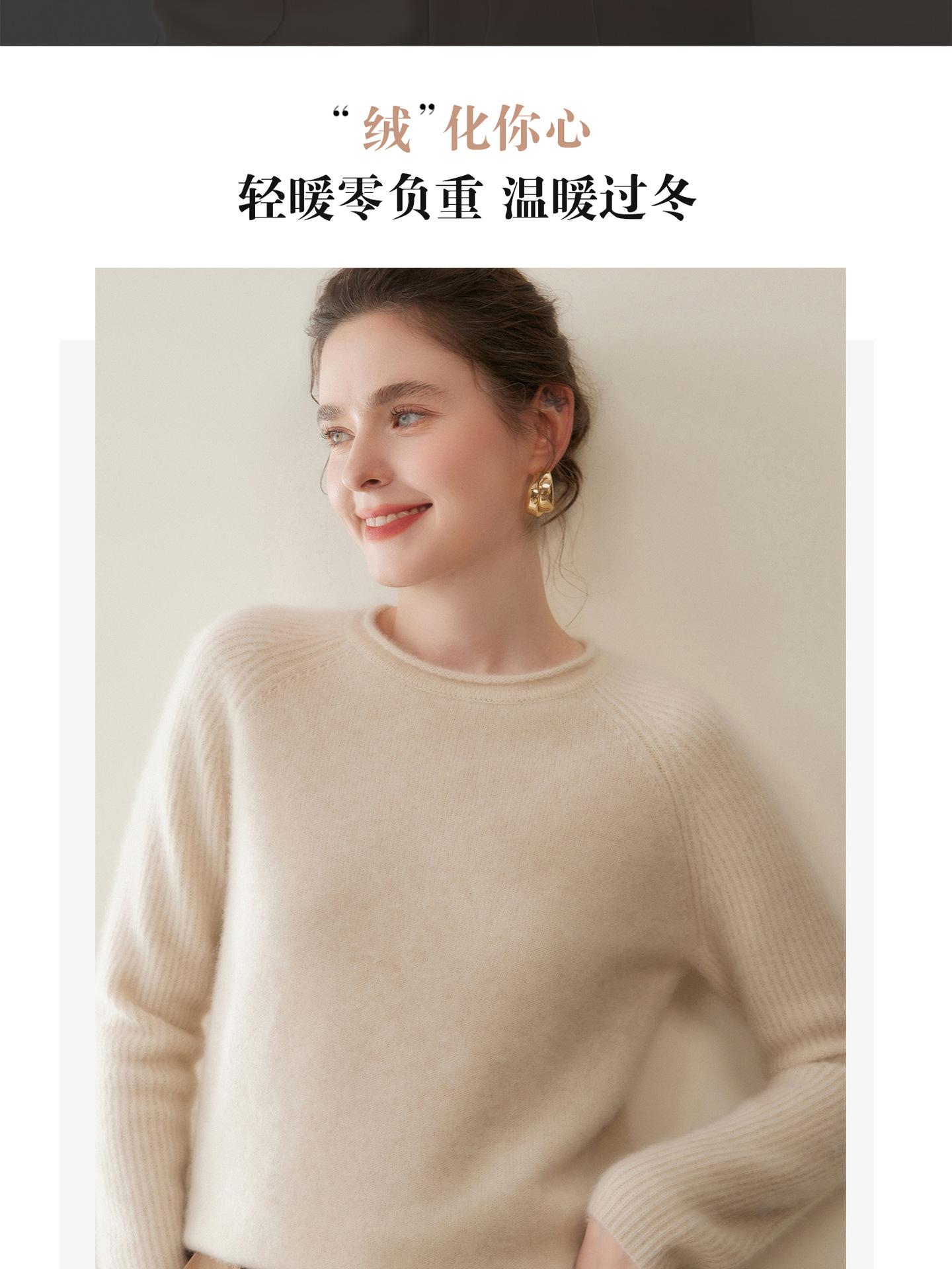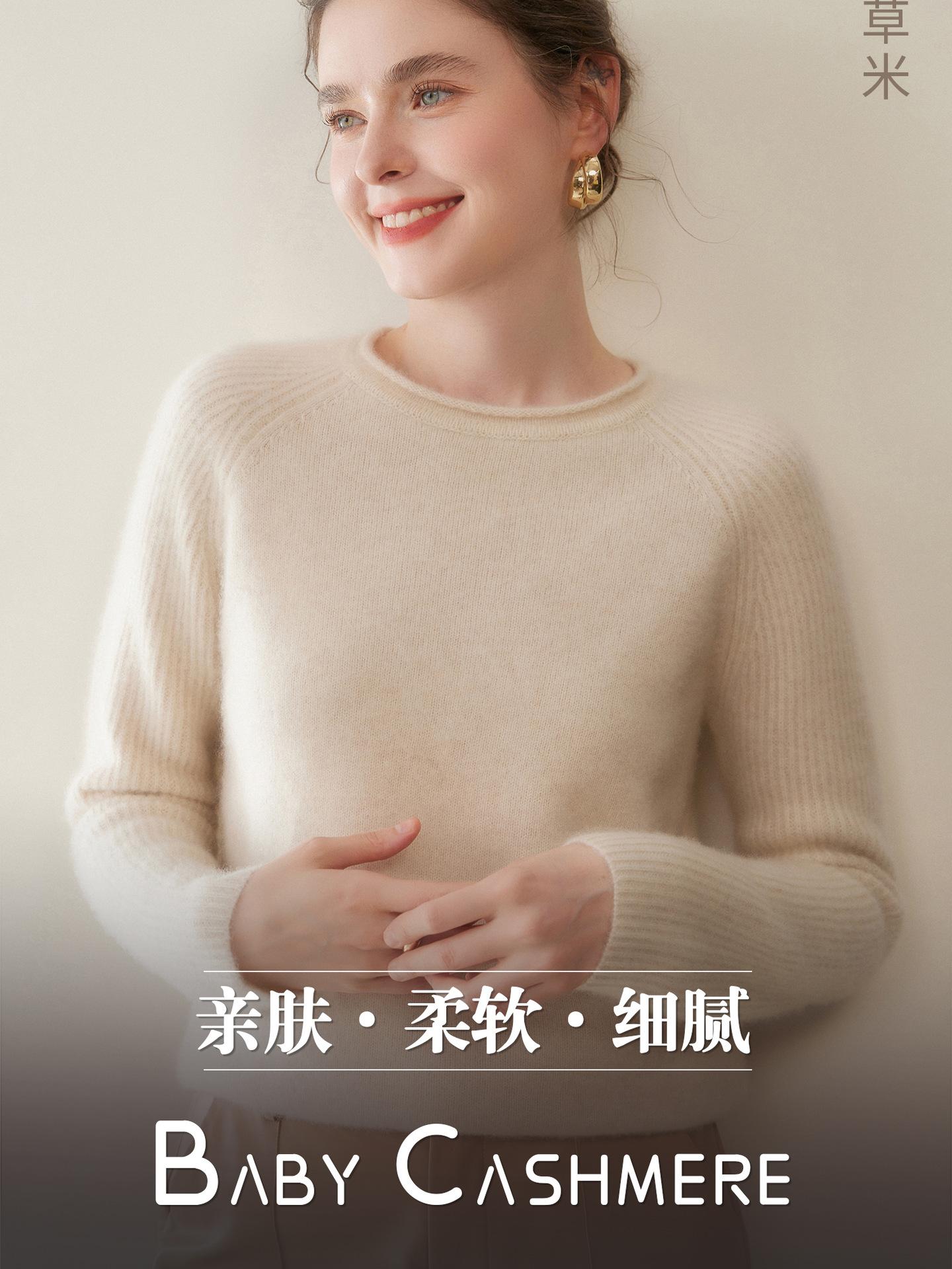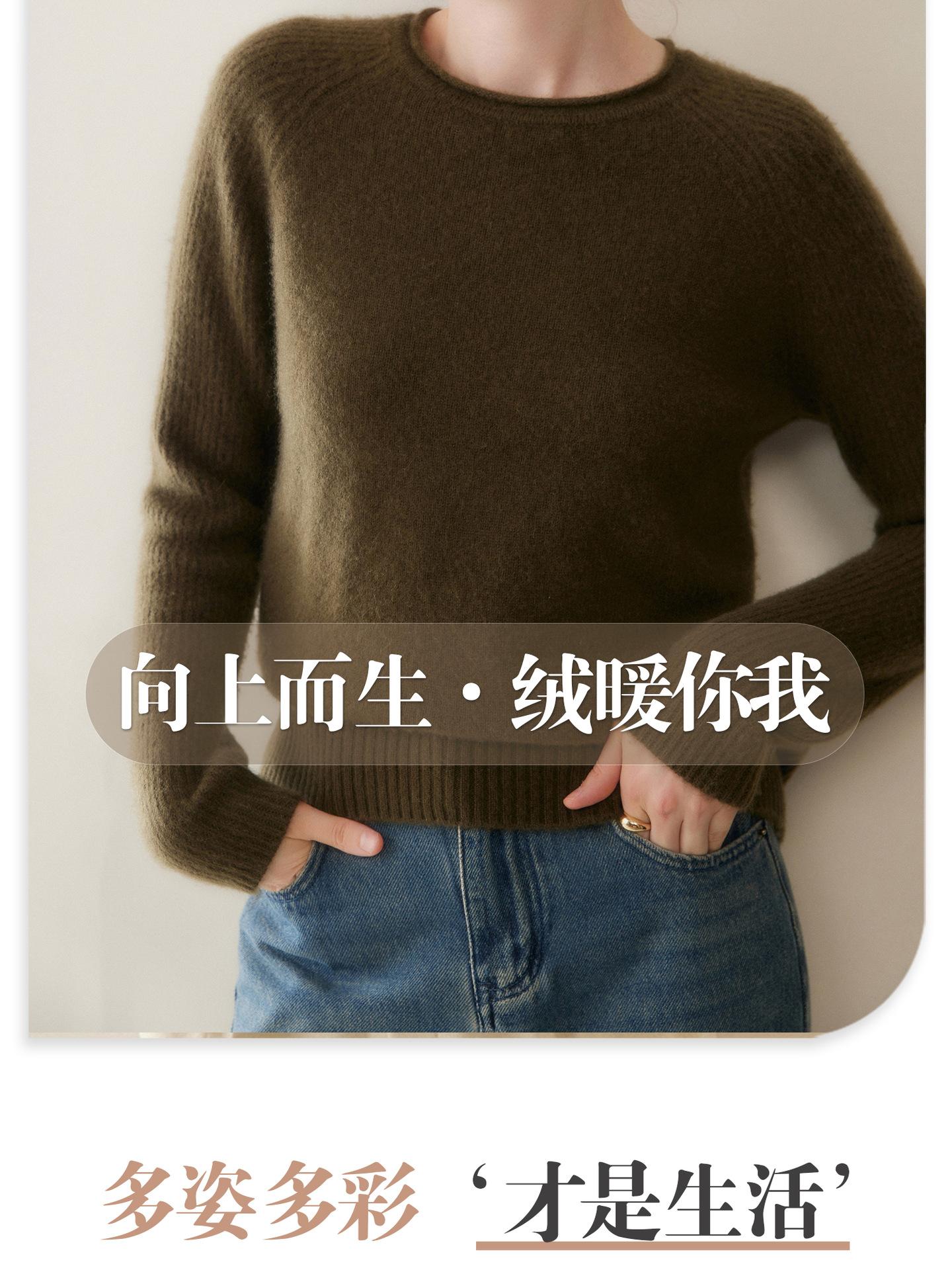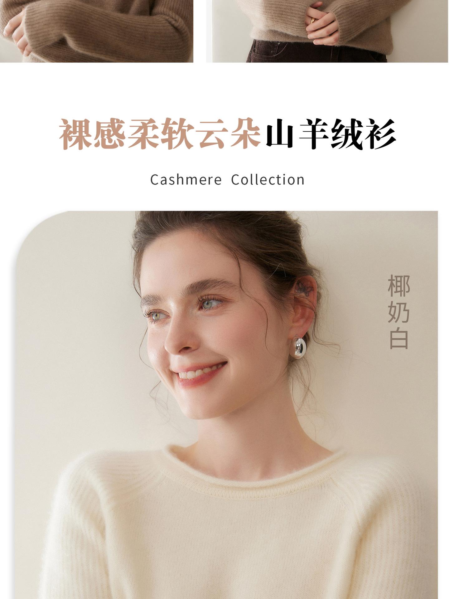 Nueva Otoño/Invierno Simple Versátil Color Sólido Tejido de Cachemira Camiseta Base Suelta Adelgazante Jersey Suéter para Mujer Capa Interior