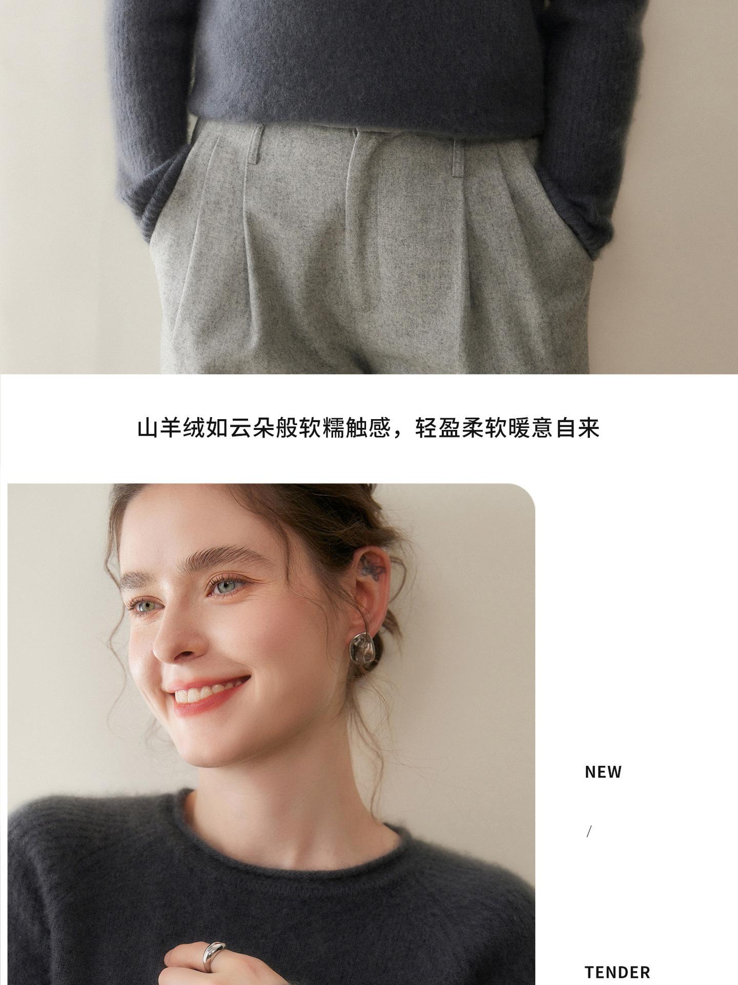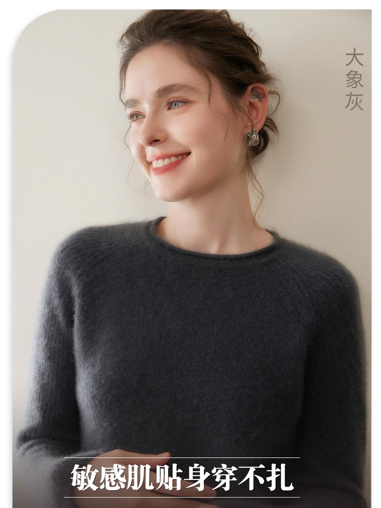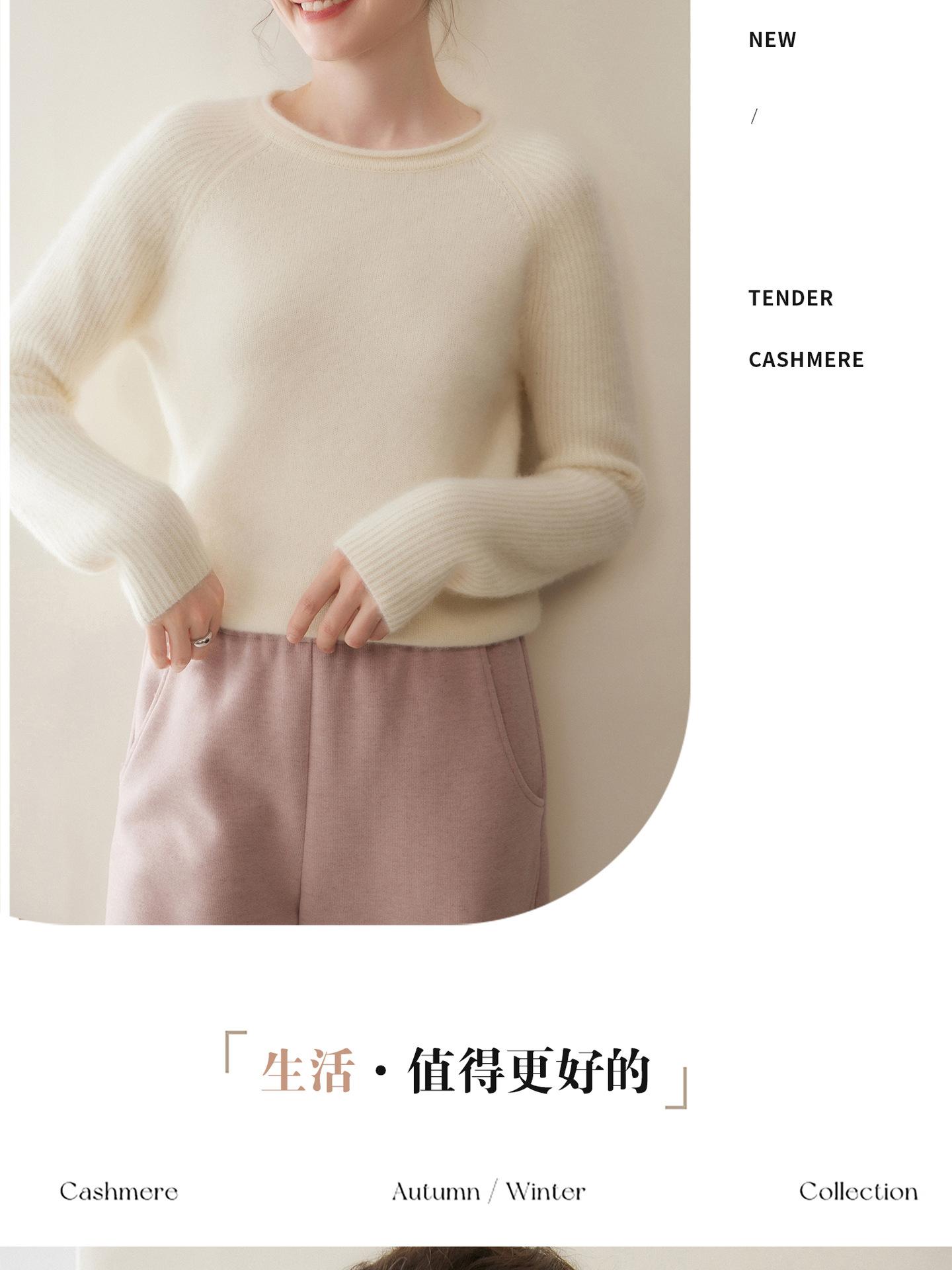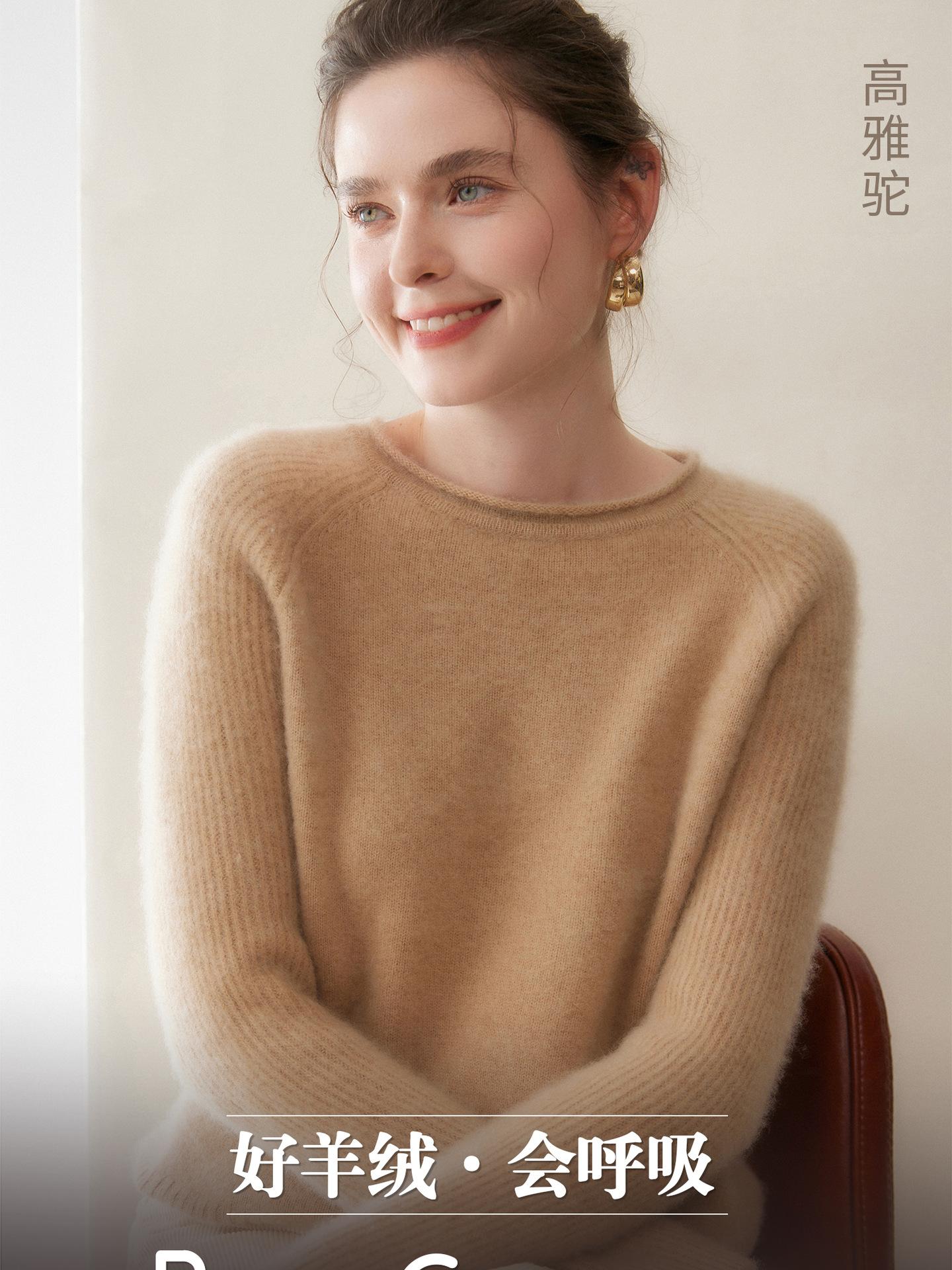Nueva Otoño/Invierno Simple Versátil Color Sólido Tejido de Cachemira Camiseta Base Suelta Adelgazante Jersey Suéter para Mujer Capa Interior
