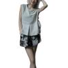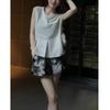 23531 Daaimai Aiyuan 2025 Verano Nuevo Top Sin Mangas Plisado Reductor de Edad Holgado Shorts Estampados Adelgazantes