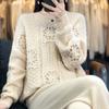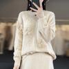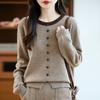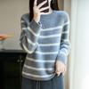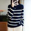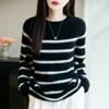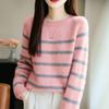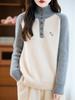 100% lana pura otoño/invierno 2025 nuevo suéter de punto base corto holgado de cuello redondo con bloques de color para mujer