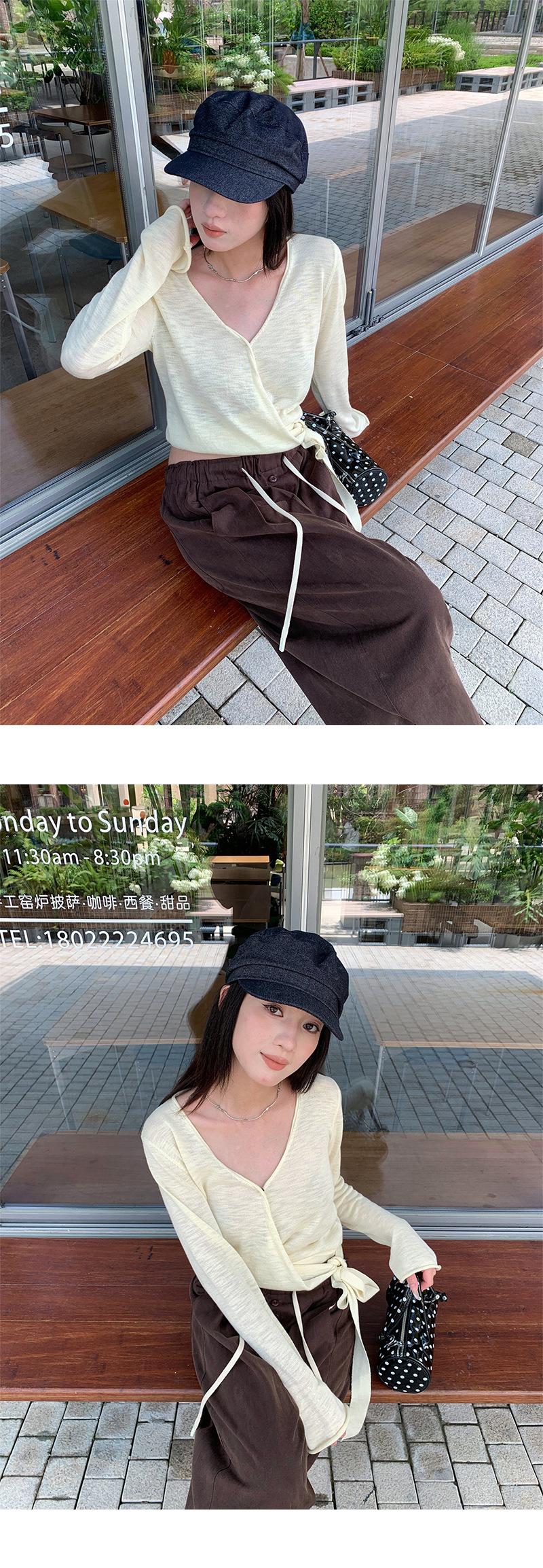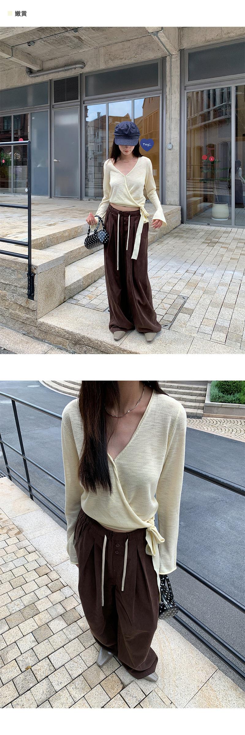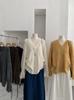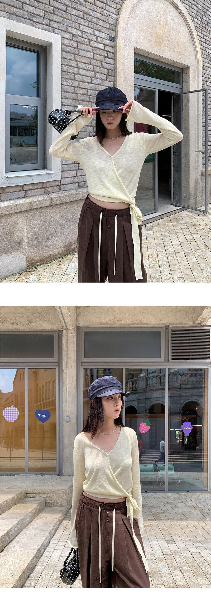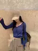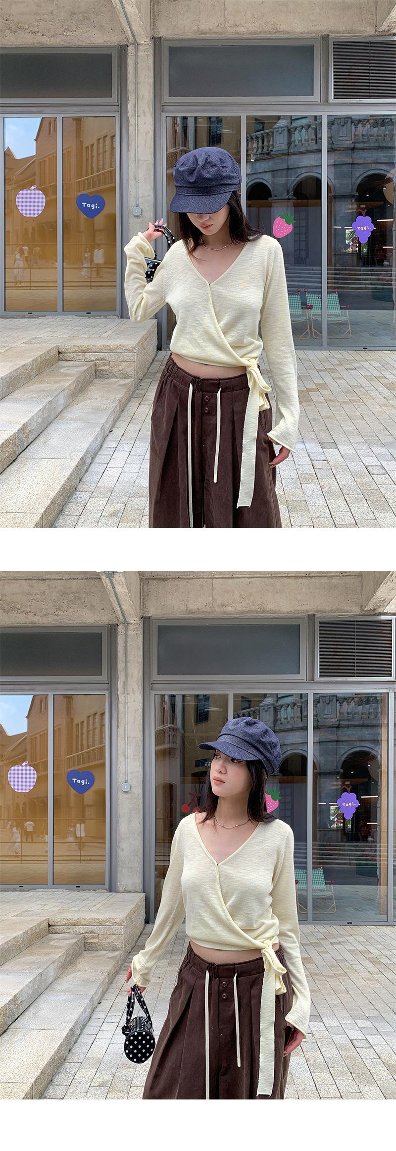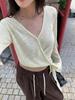 Yuyi Nuevo Diseño Otoño 2025 Suéter de Punto Cuello en V Mujer Versátil Manga Larga Irregular Top Mujer cm1363