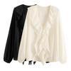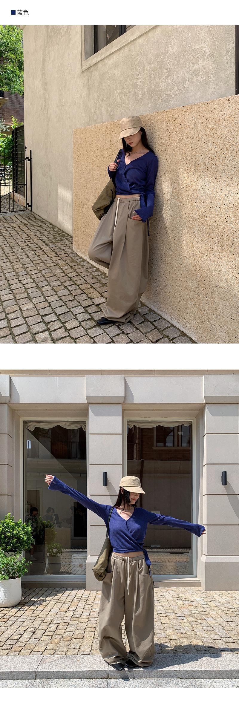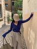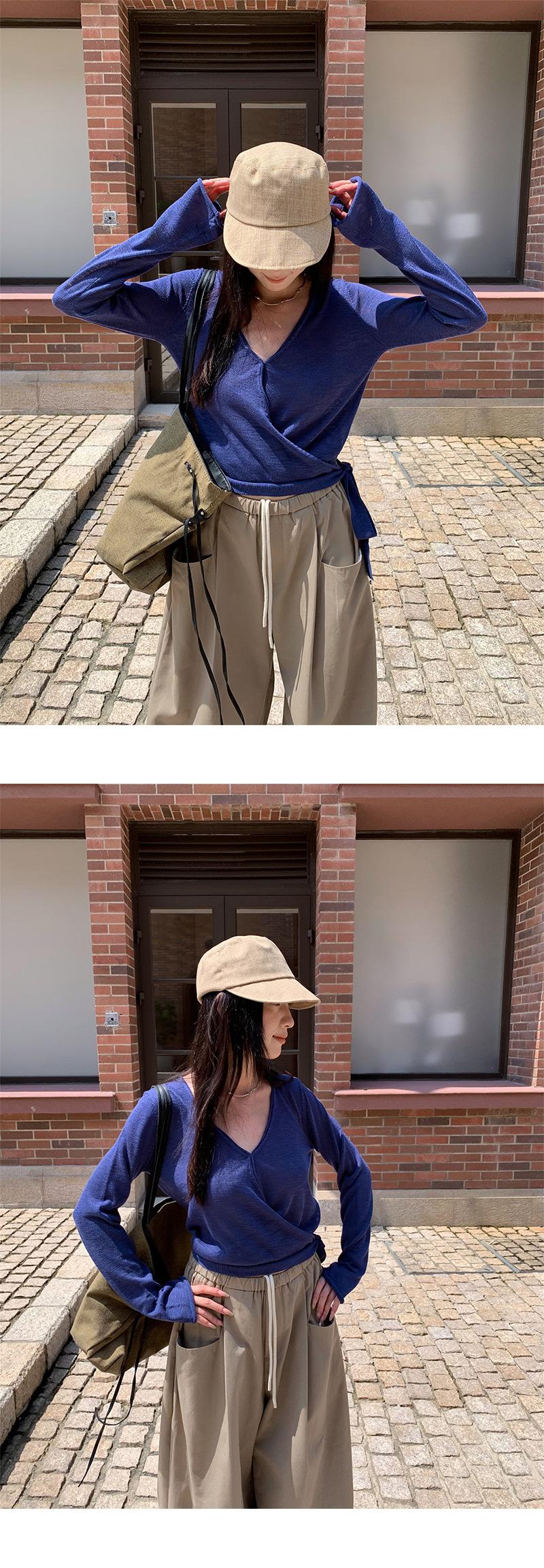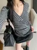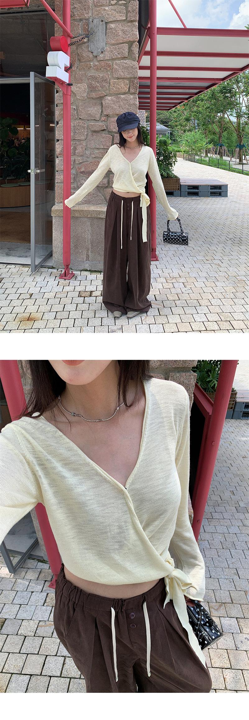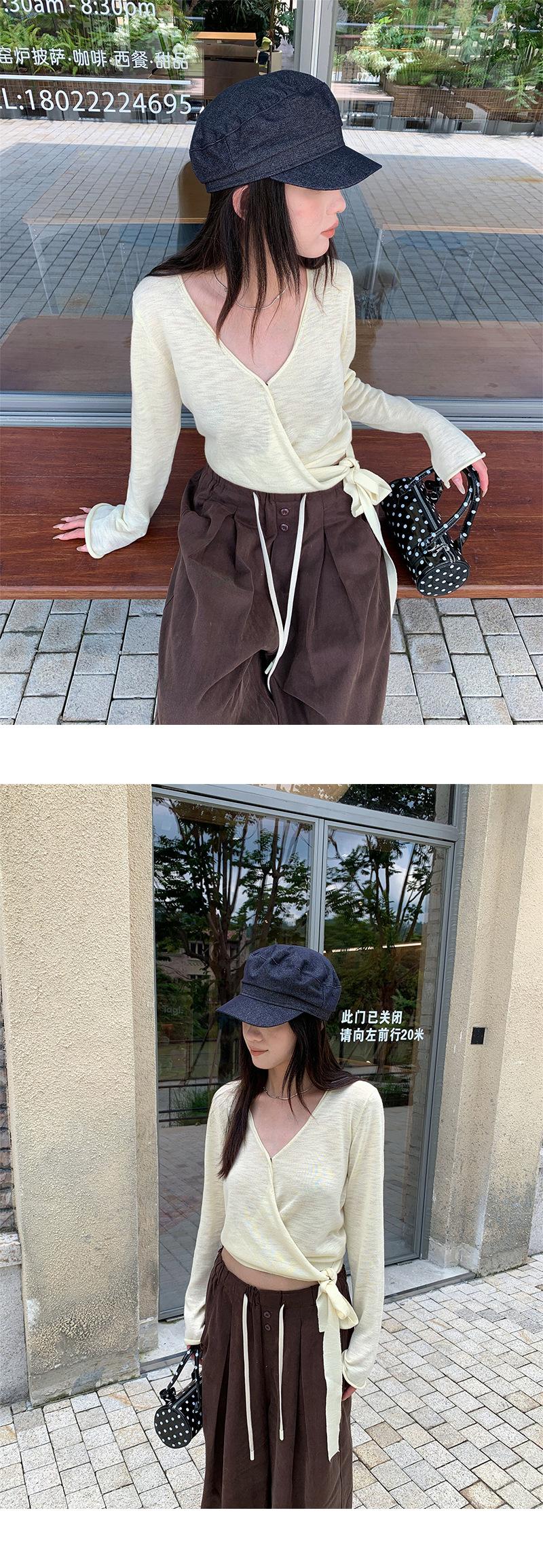 Yuyi Nuevo Diseño Otoño 2025 Suéter de Punto Cuello en V Mujer Versátil Manga Larga Irregular Top Mujer cm1363