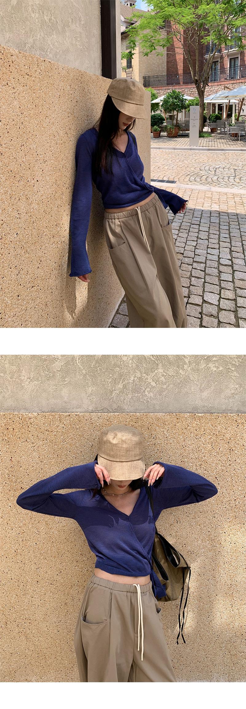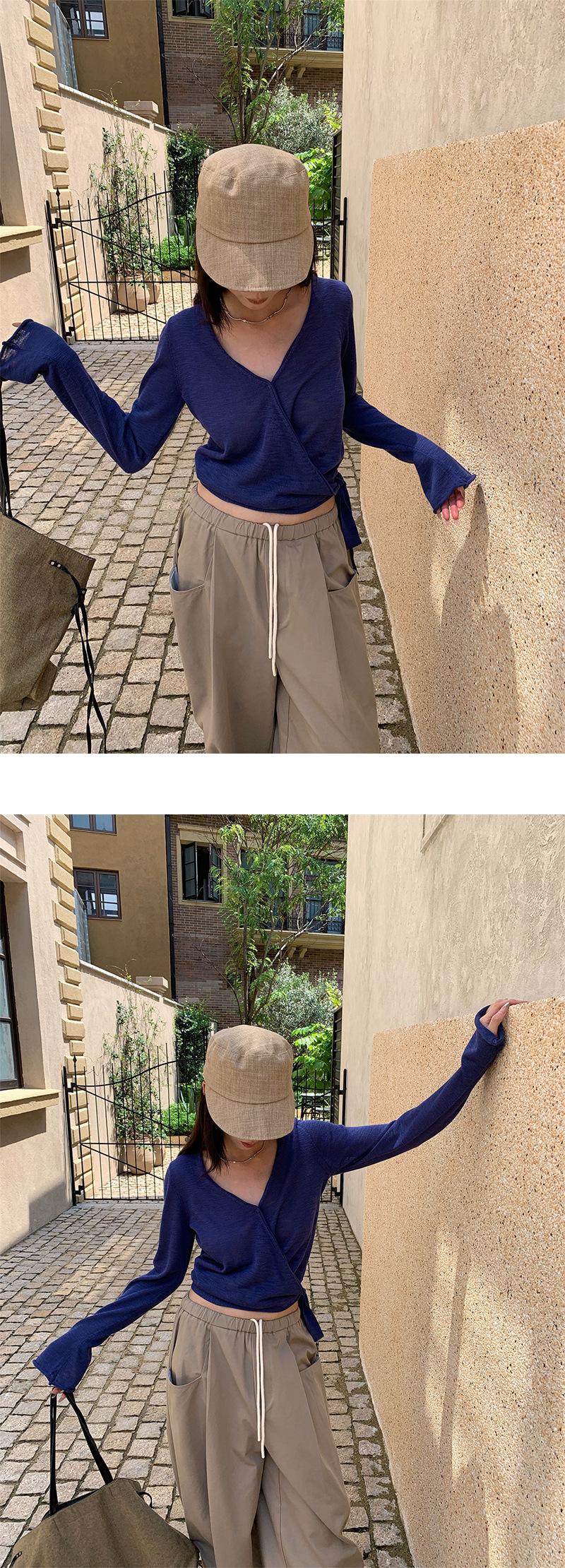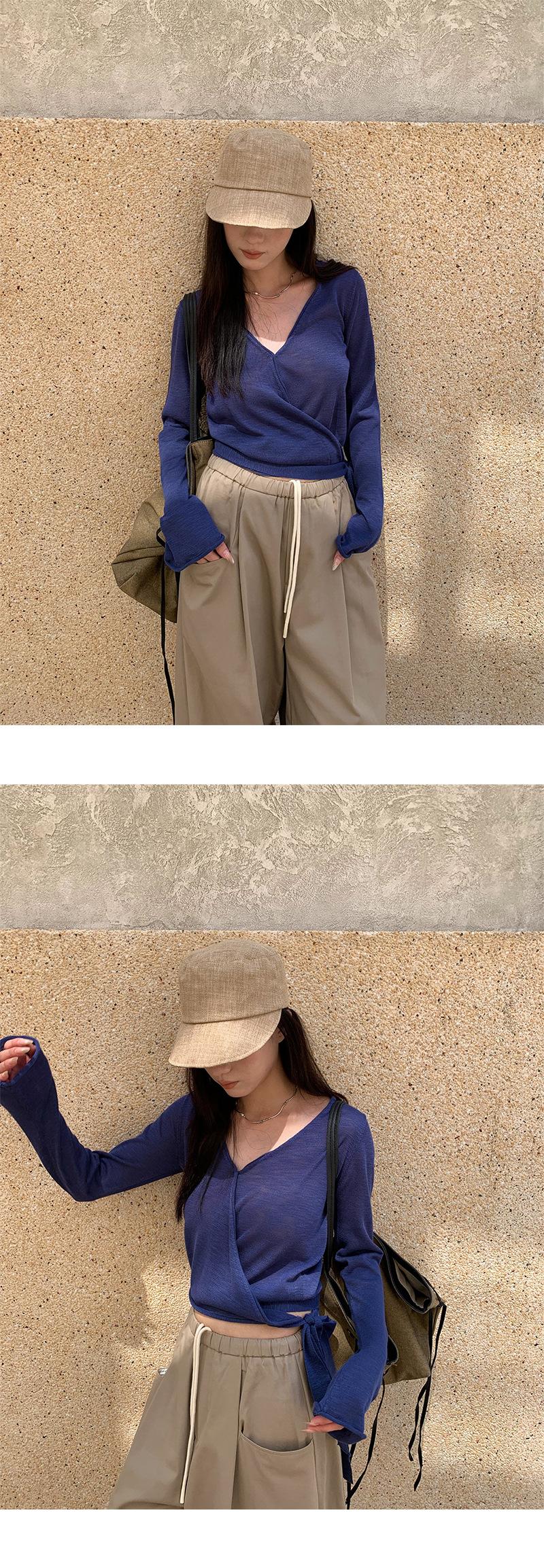 V-neck, solid color, knitting