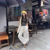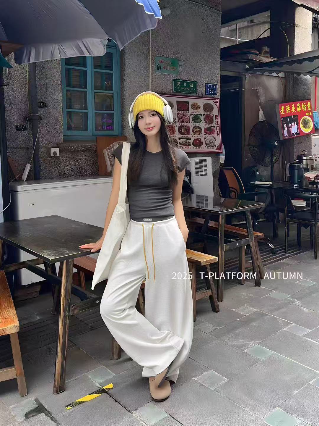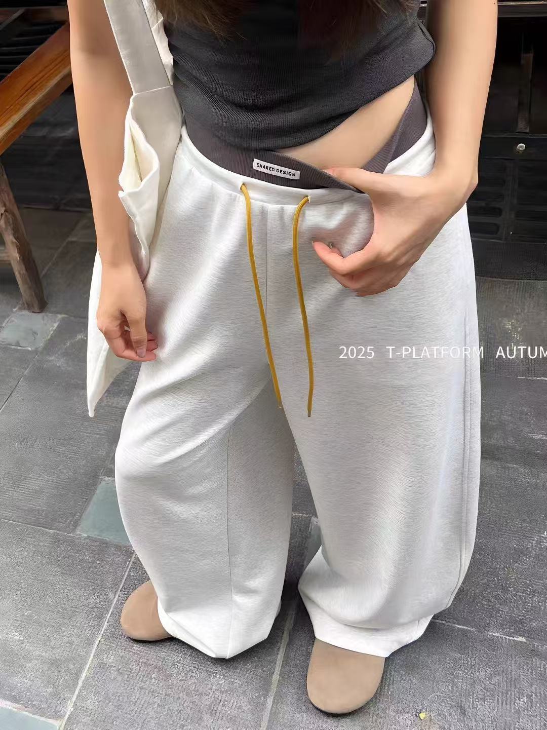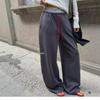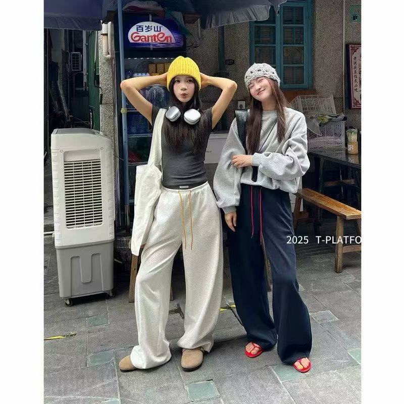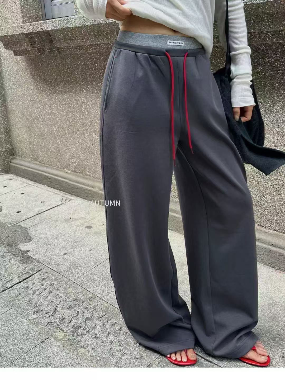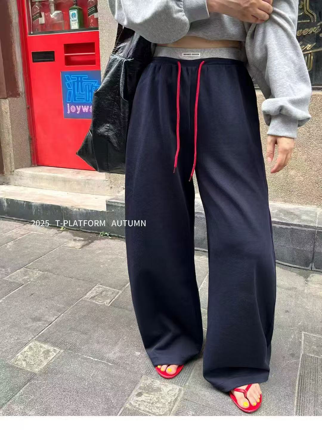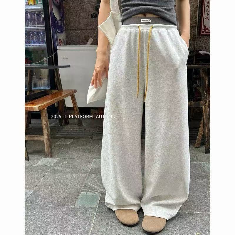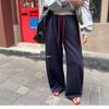 Pantalones deportivos de pierna ancha con cordón de bloques de color estilo coreano para mujer otoño 2025 nuevos pantalones casuales holgados de pierna recta