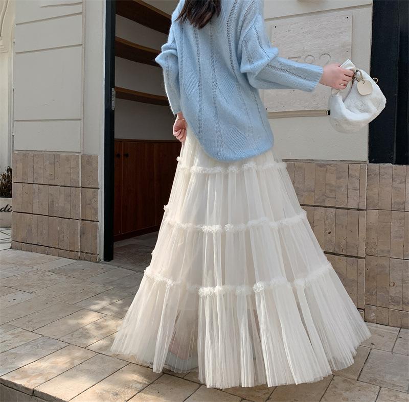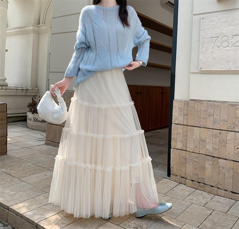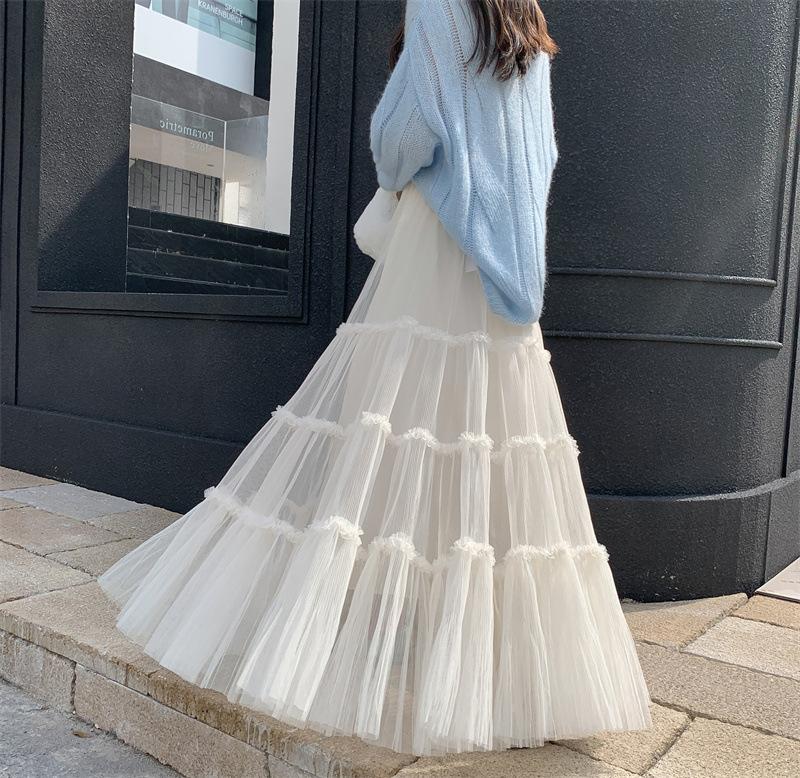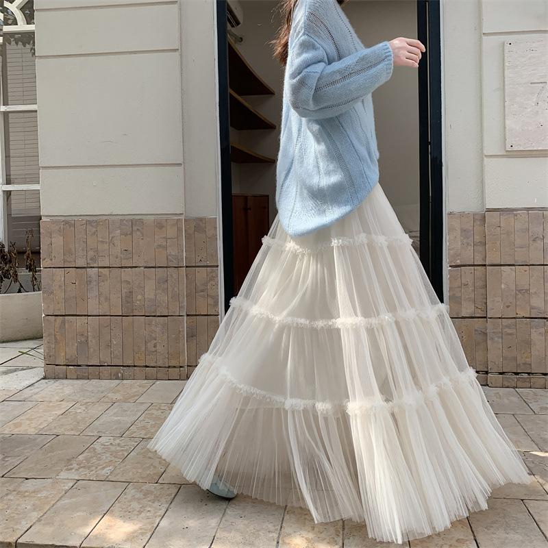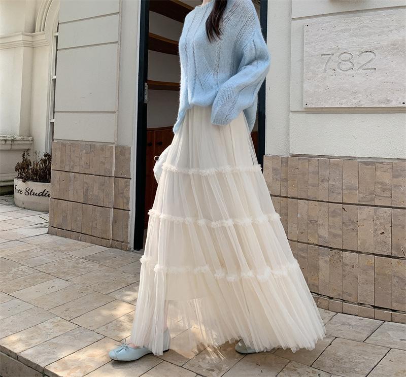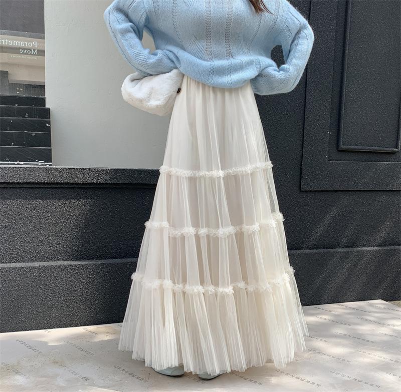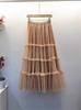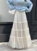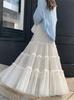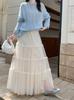 Falda Midi de Tul A-line Versátil de Temperamento a la Moda para Mujer 2025 Otoño Nueva Falda Larga Empalmada de Gran Vuelo