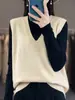Abrigo chaleco holgado de cuello redondo para exteriores estilo literario en capas sin mangas tejido de punto top nuevo para otoño e invierno para mujer