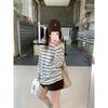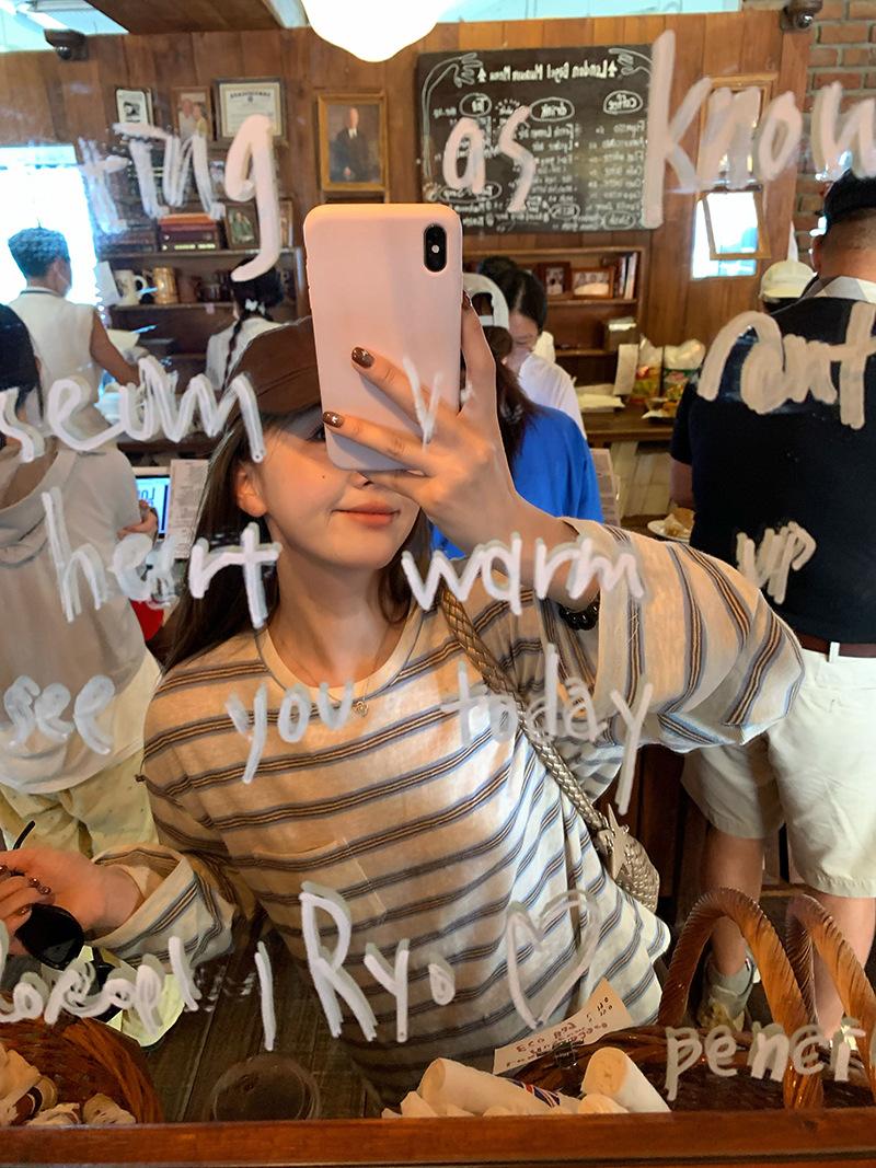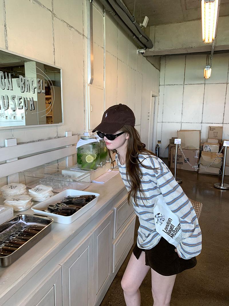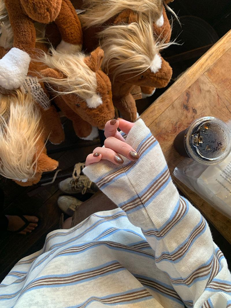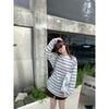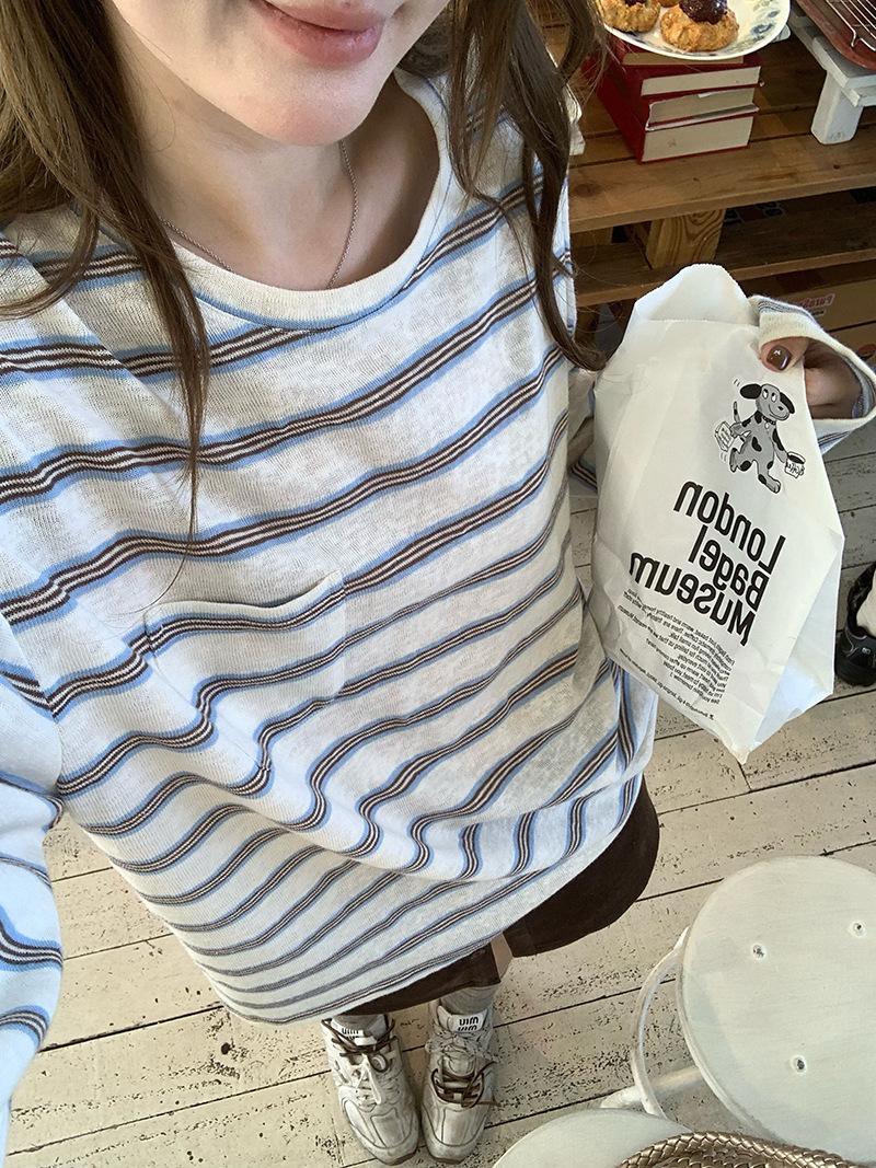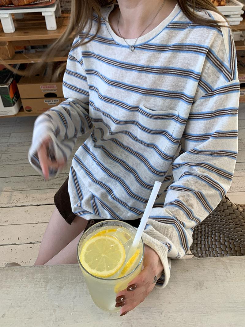 Camiseta de Manga Larga con Cuello Redondo a Rayas Estilo Coreano Mujer Otoño 2025 Nuevo Estilo Lazy Streetwear Casual Versátil Top Holgado