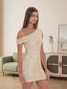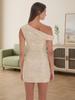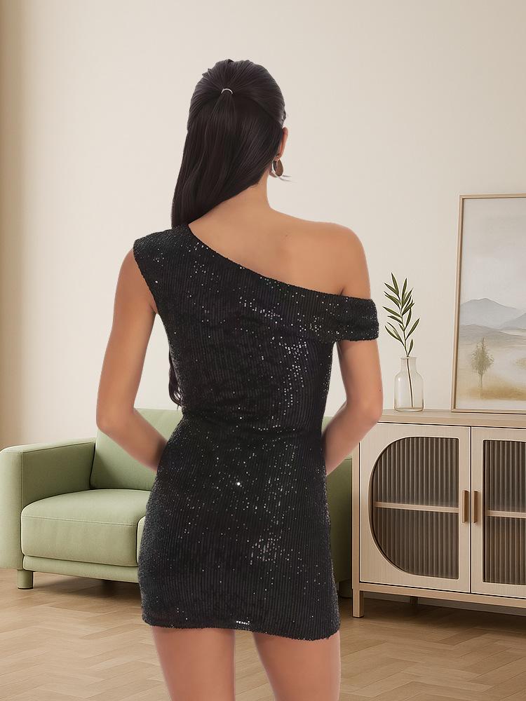 Nuevo vestido corto ajustado de verano estilo socialité europeo y americano, temperamento elegante, sexy, con lentejuelas y cuentas, un hombro, ceñido a las caderas