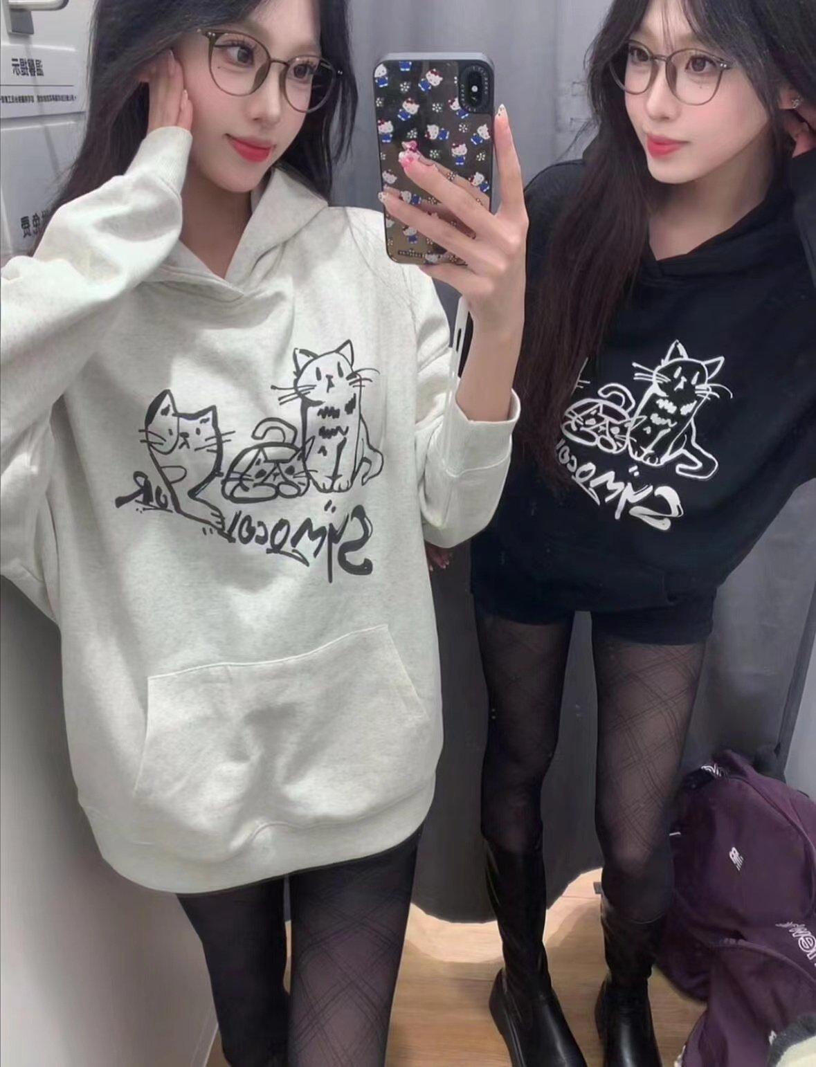 Sudadera con capucha gruesa de moda para pareja de estudiantes, forrada de polar de manga larga, sudadera con capucha de moda, para mujer, estampada, hip hop