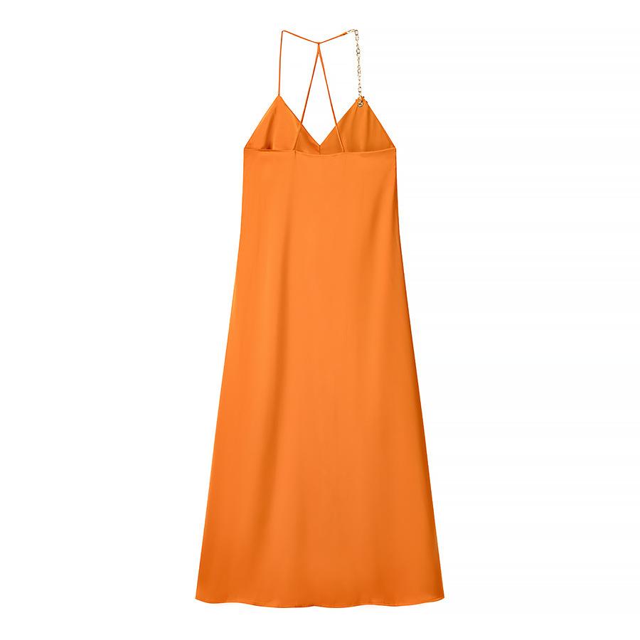 Ropa de Otoño 2025 para Mujer Estilo Europeo y Americano Moda Sencilla Temperamento Vestido Halter Irregular