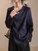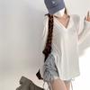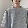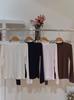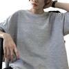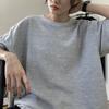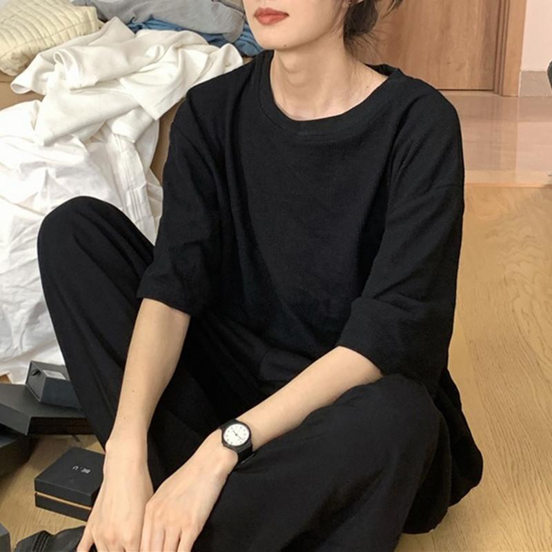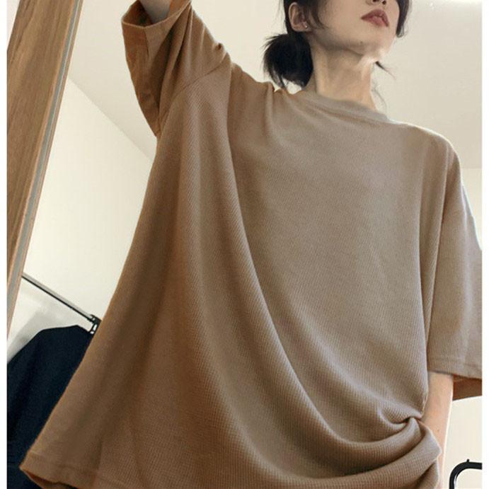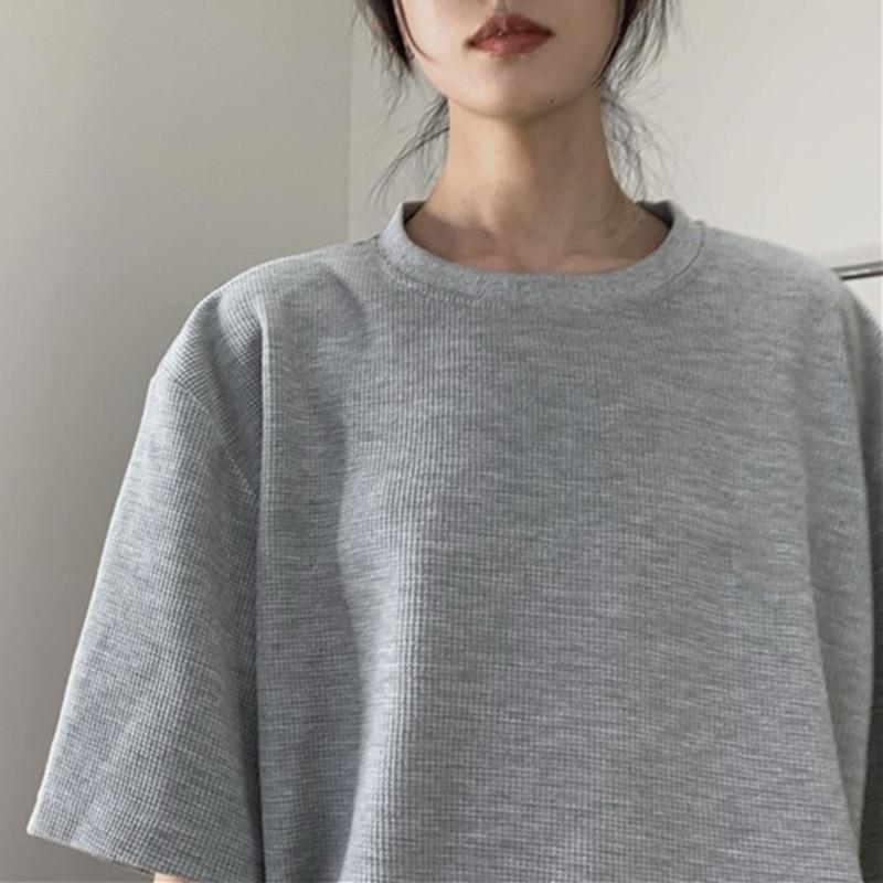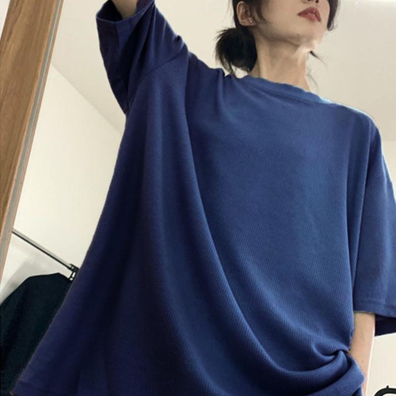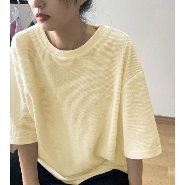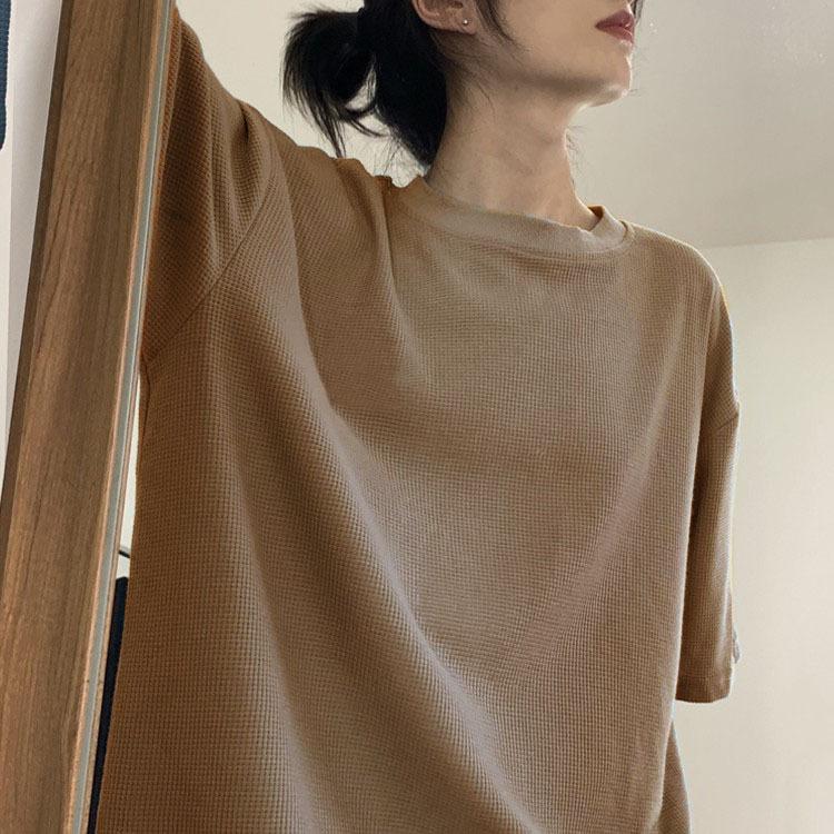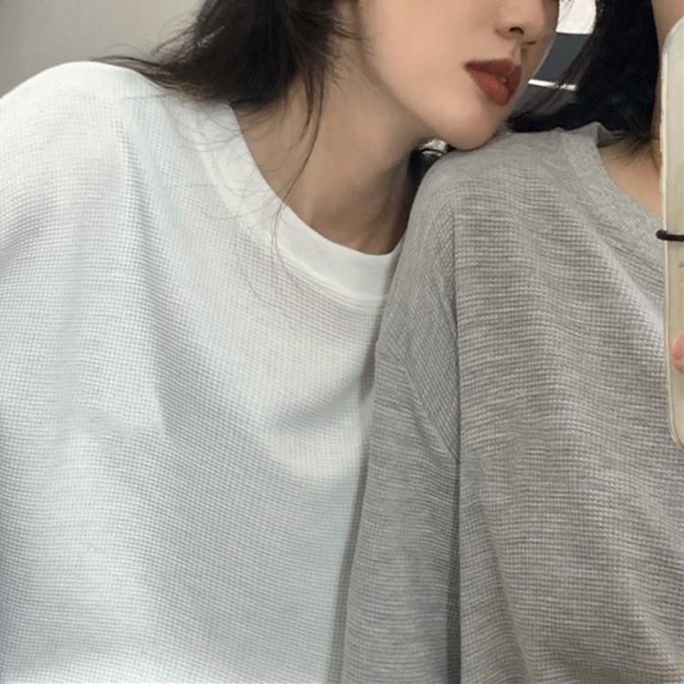 Waffle Manga Larga Cuello Redondo Canesú Trasero Top de Verano Ropa de Pareja para Mujer Camiseta Estilo Lazy Holgada Versátil Ropa de Mujer