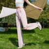 Pantalones de Pierna Ancha de Seda Helada para Mujer Verano Delgados 2025 Nuevos Cintura Alta Slim Drapeados Rectos Deportivos Casuales Pequeños