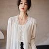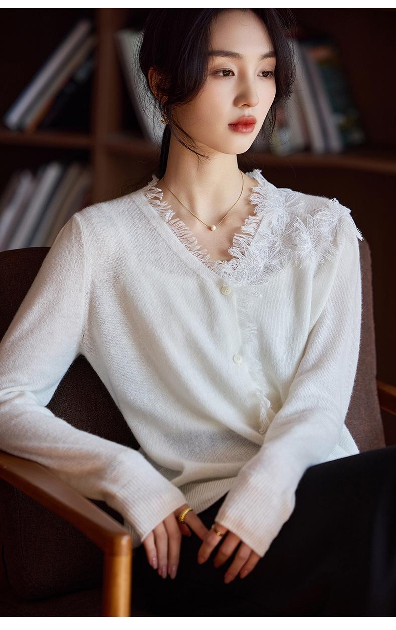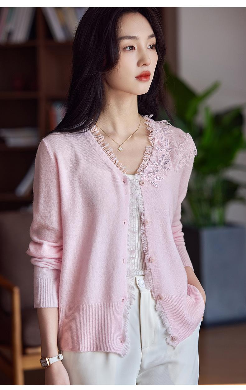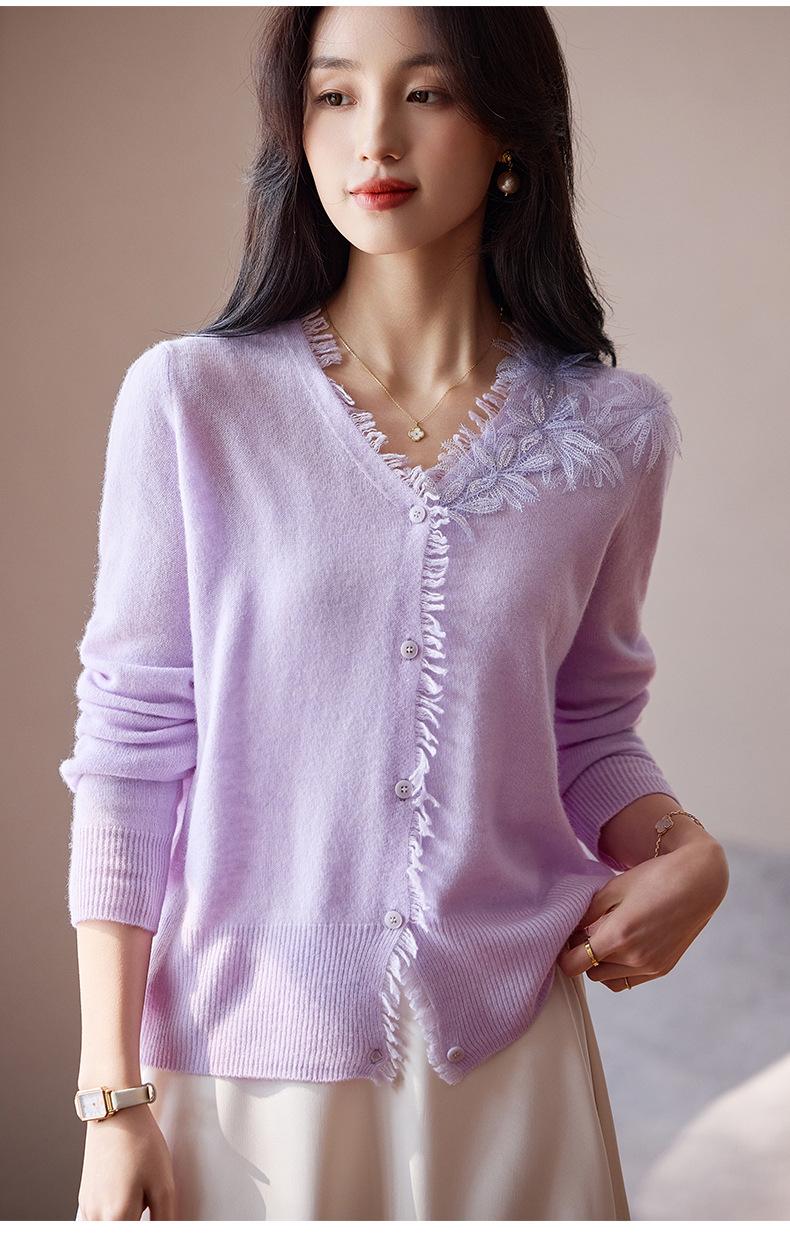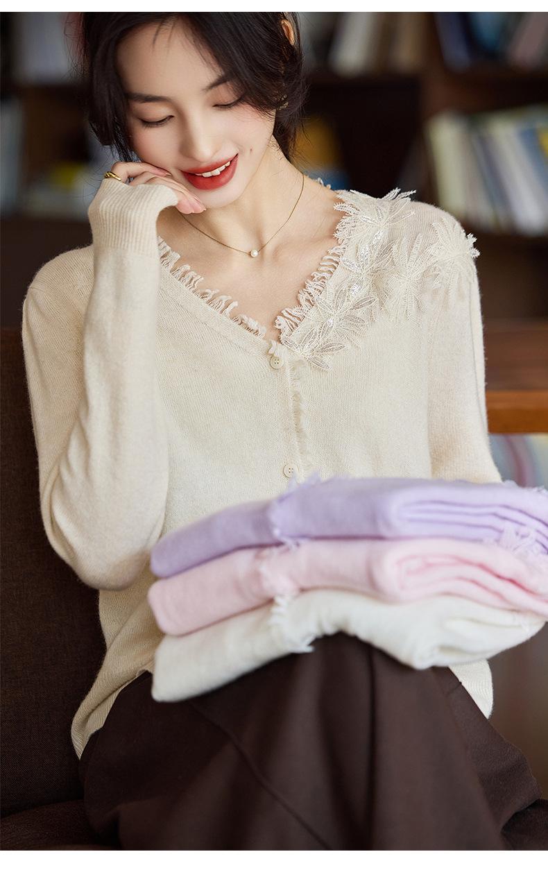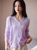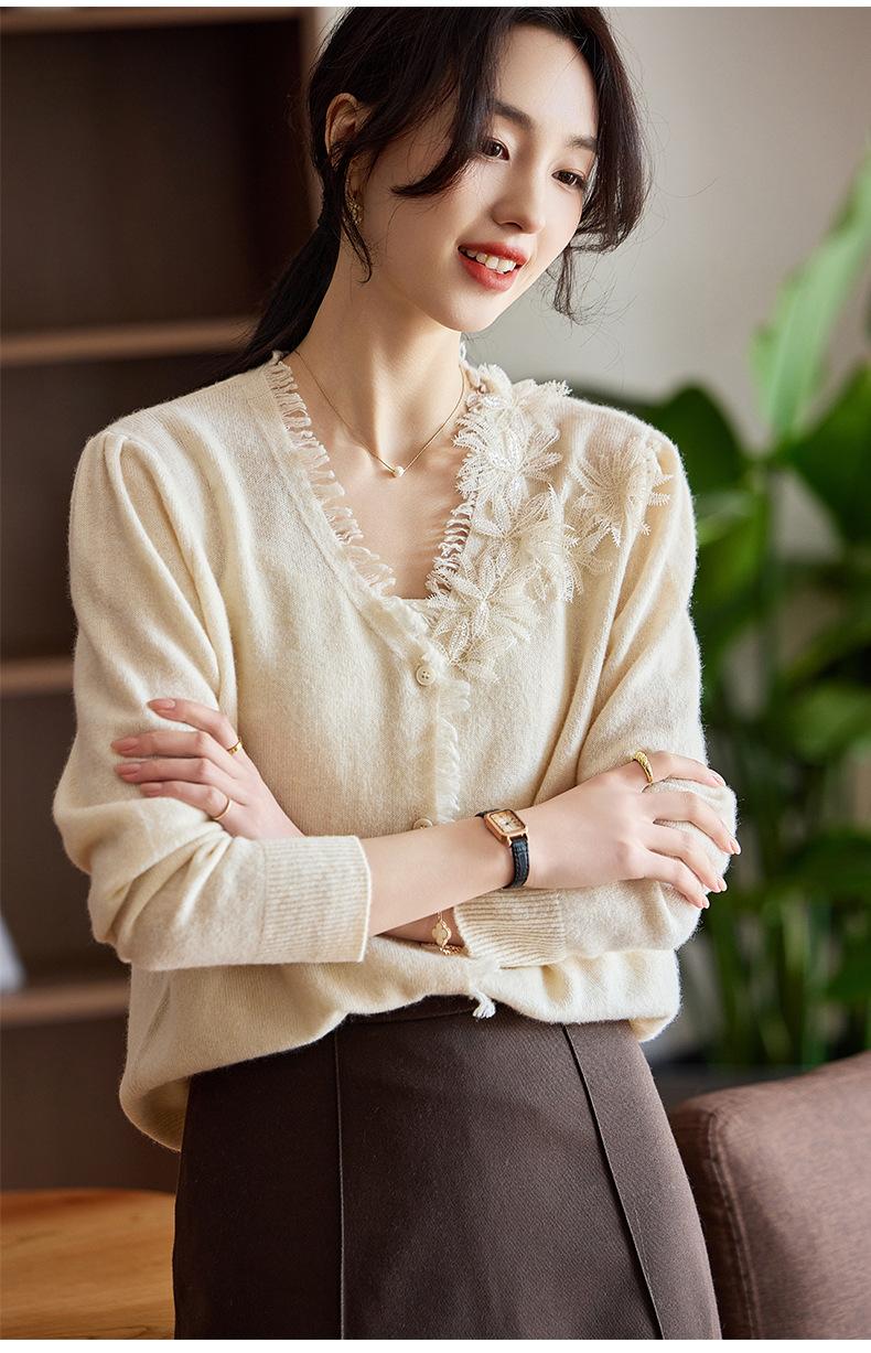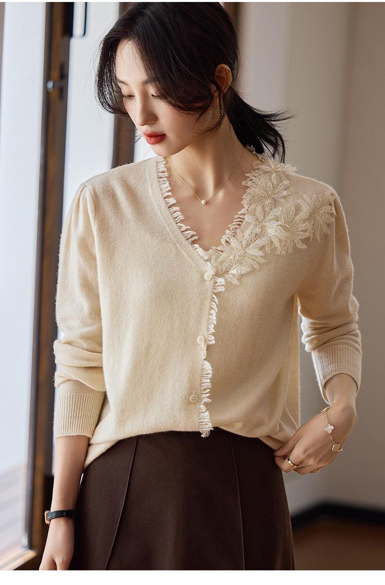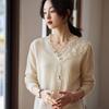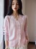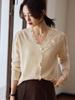 Cárdigan de Punto para Mujer de Lana 100% Pura Abrigo Cuello en V Otoño e Invierno Nuevo Hecho a Mano Crochet Clásico Color Sólido Estilo Versátil