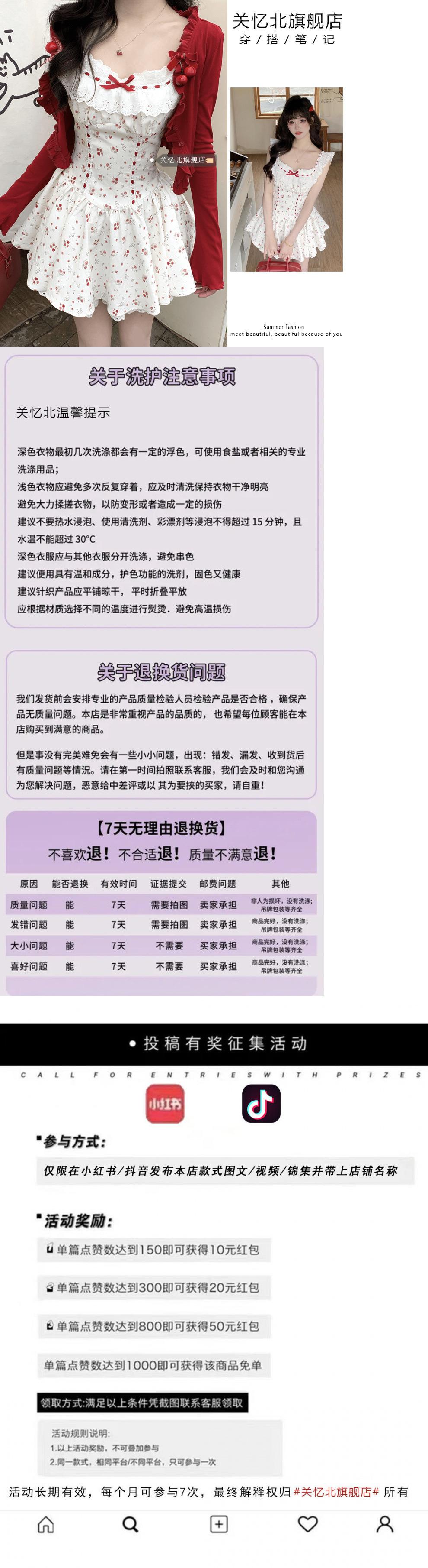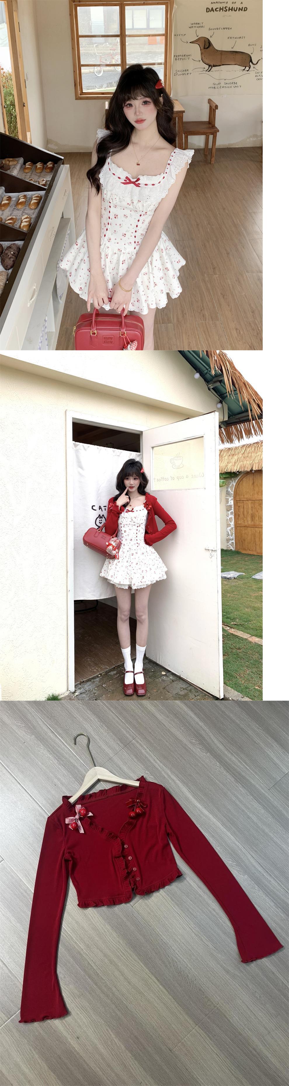 Cherry long-sleeved cardigan + floral sundress two-piece set, Cherry long-sleeved cardigan single piece (high-...