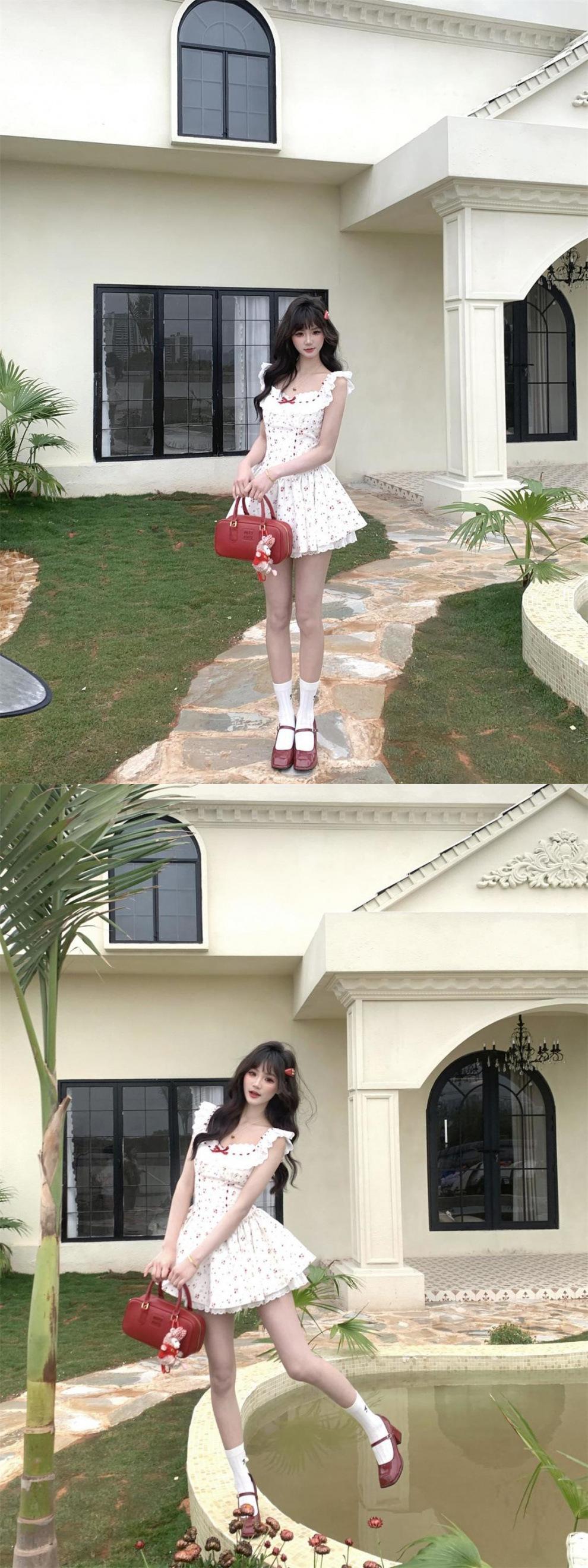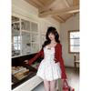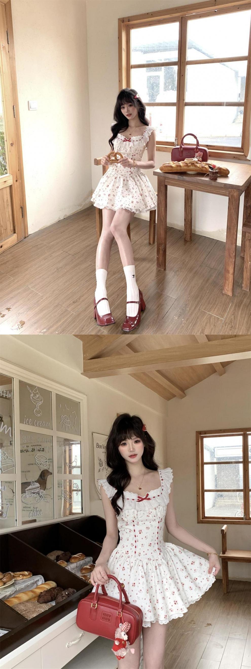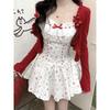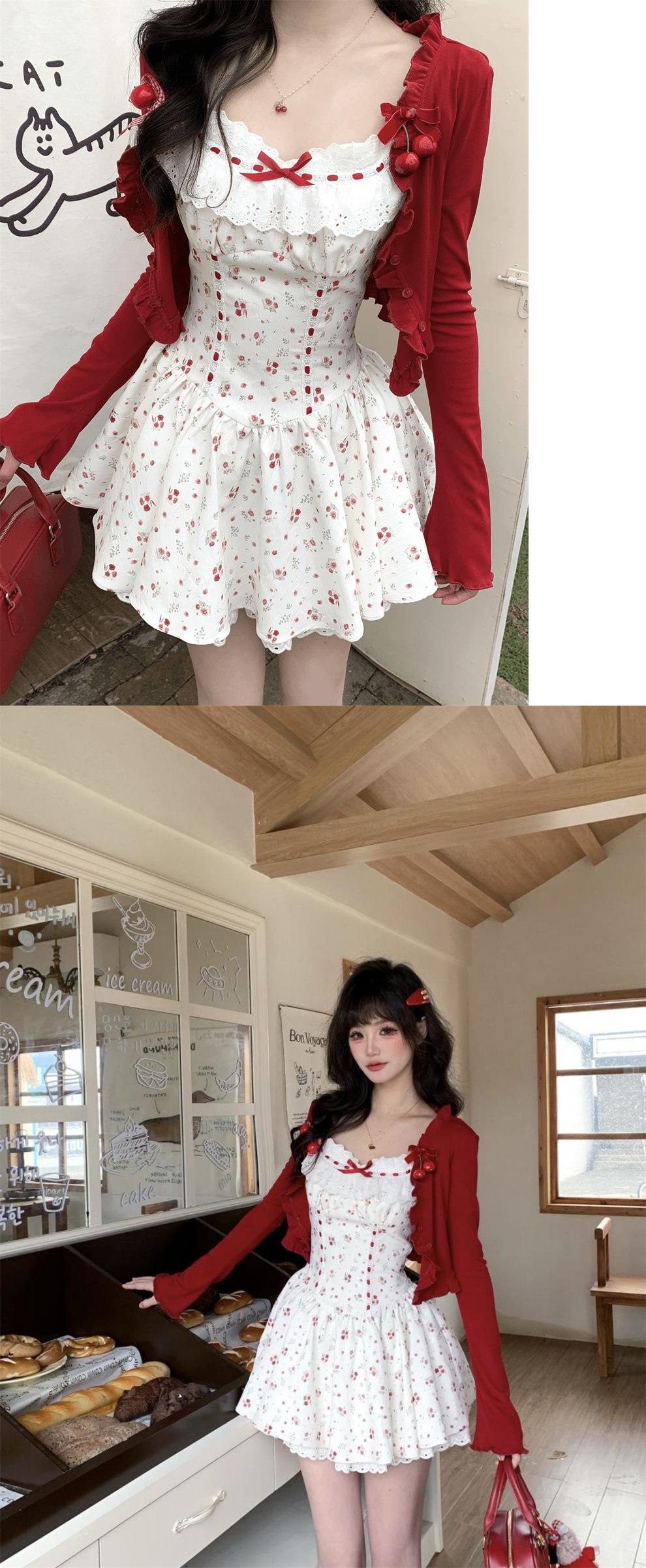 Cherry long-sleeved cardigan + floral sundress two-piece set