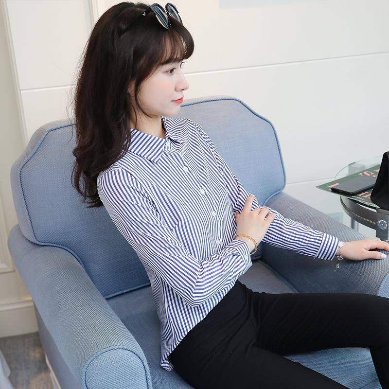 Camisa de Verano de Manga Larga con Diseño de Rayas a la Moda para Mujer Estilo Coreano Temperamento Nueva Versátil Holgada Casual Top Blusa