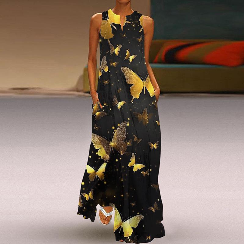 Vestido sexy estampado de verano para mujer sin mangas con cuello en V nuevo 2023 vestido Europa y Estados Unidos comercio exterior transfronterizo ropa de mujer