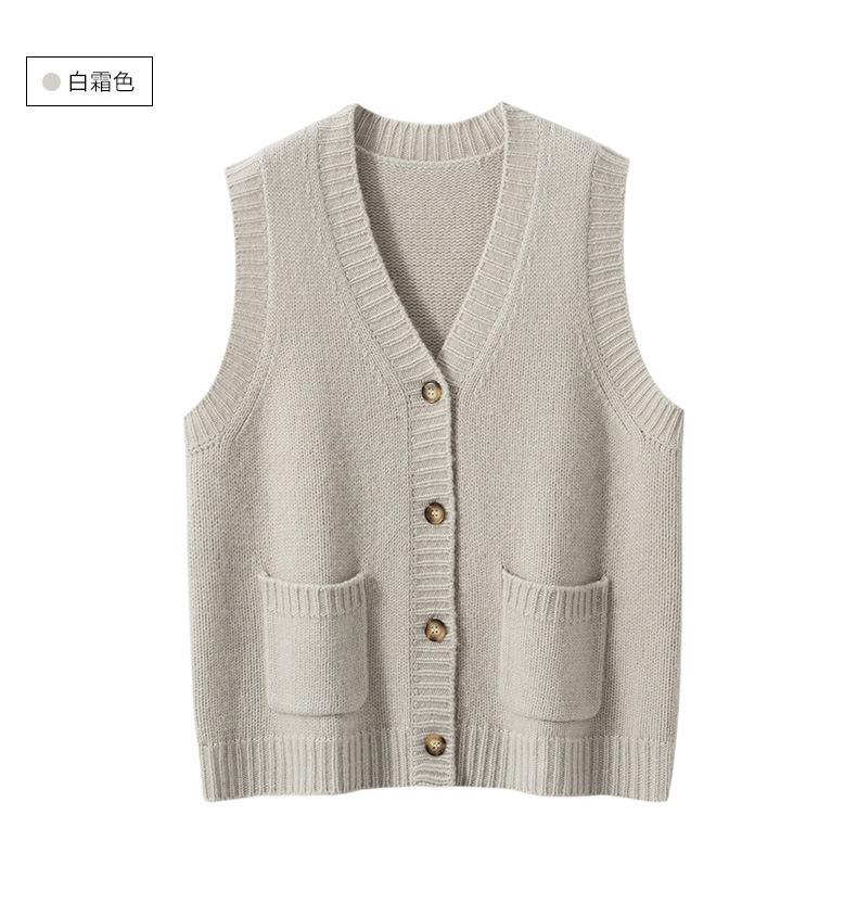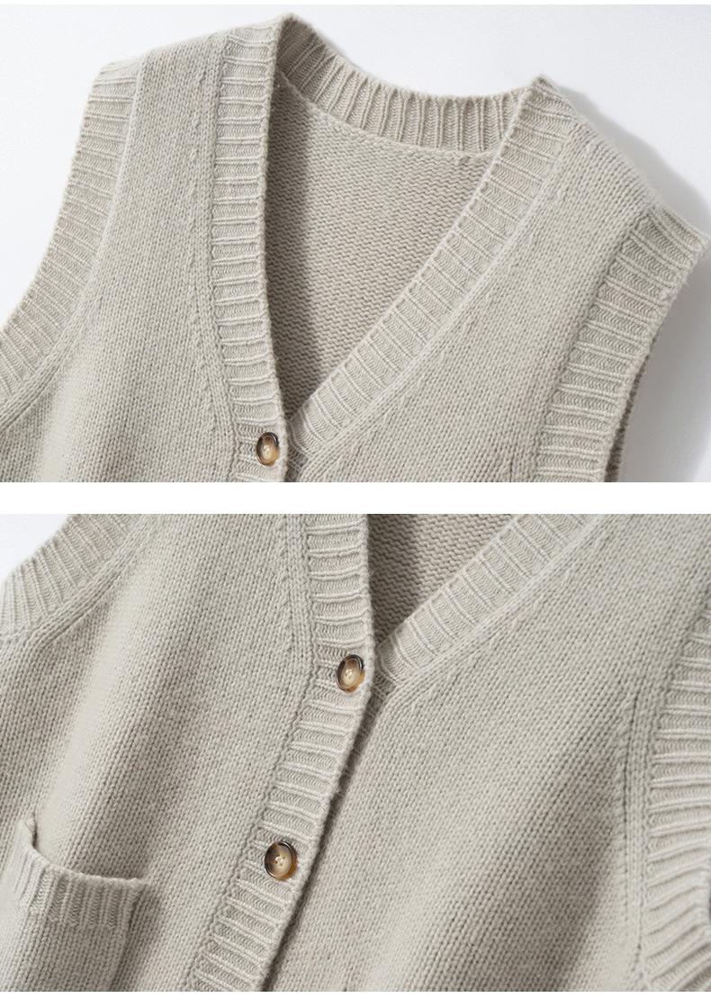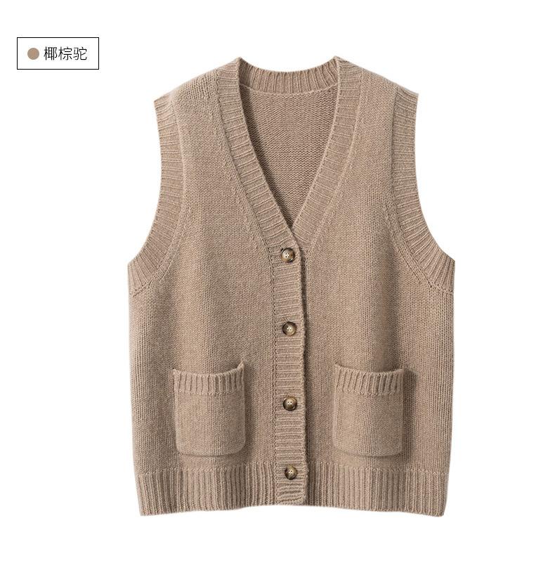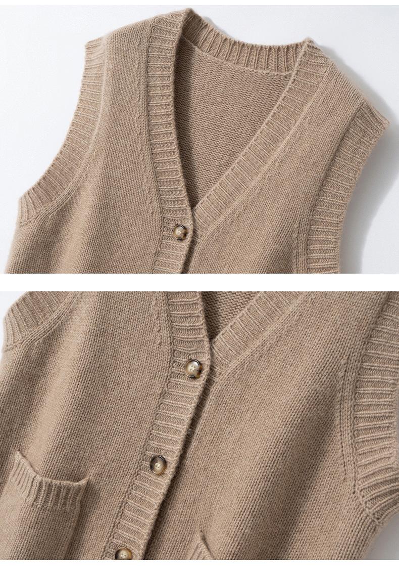 Chaleco de cachemira de punto en capas francés para mujer, nueva prenda exterior sin mangas con cuello en V para otoño e invierno, chaleco cárdigan de lana adelgazante