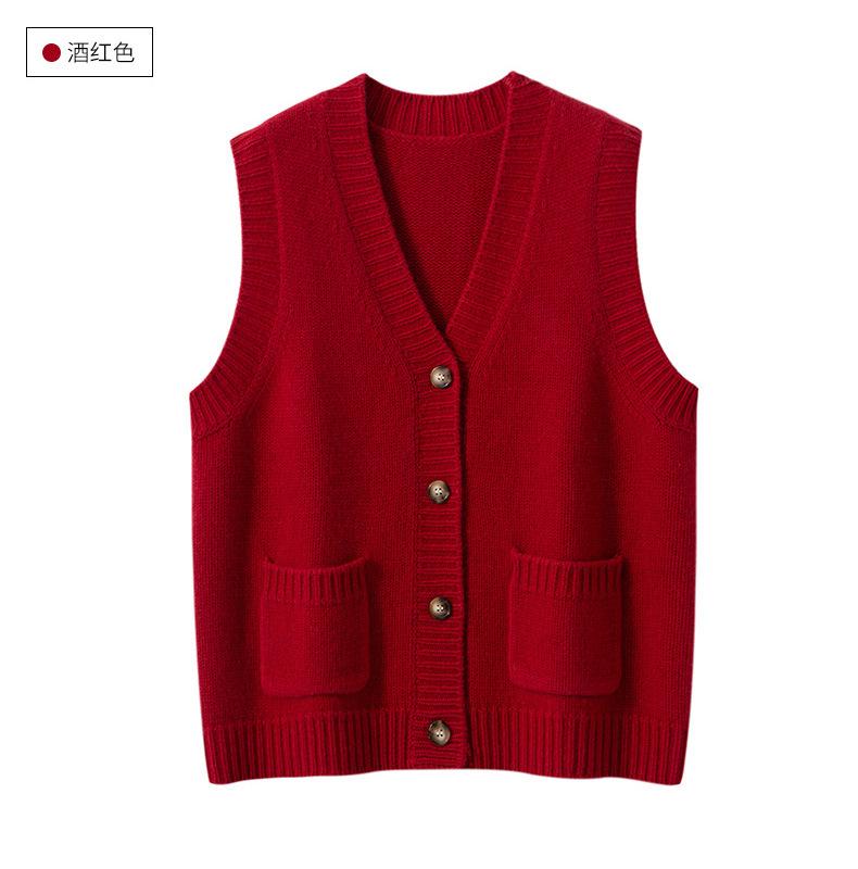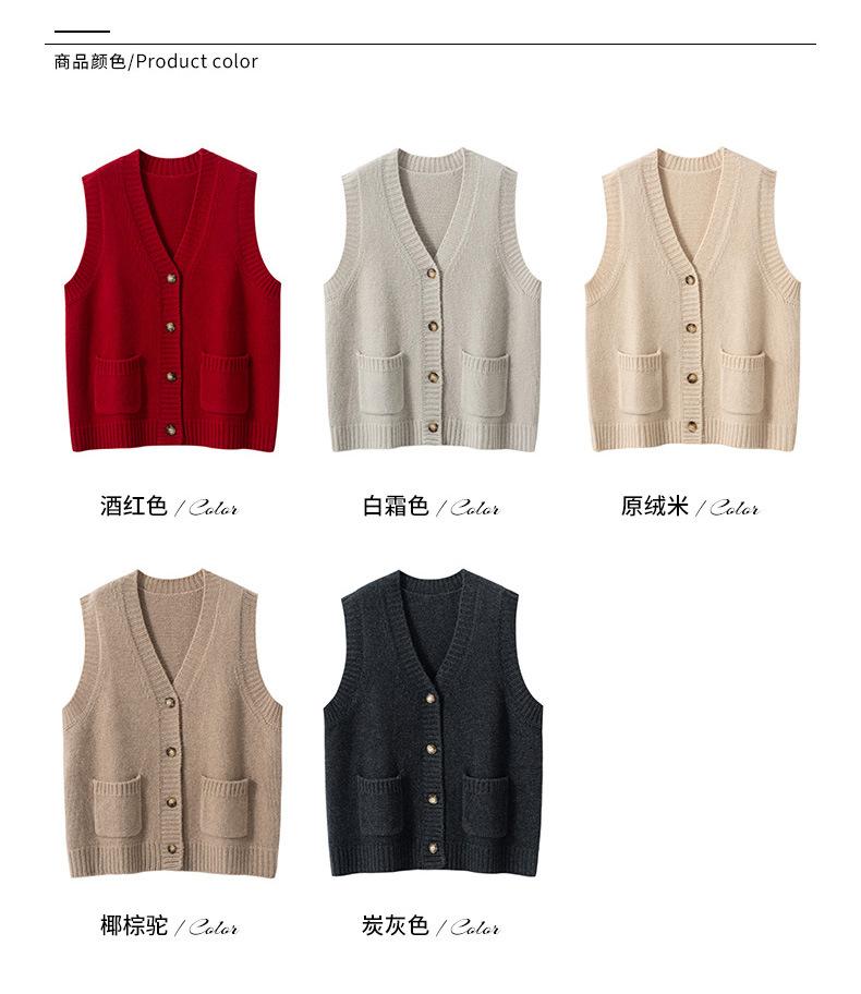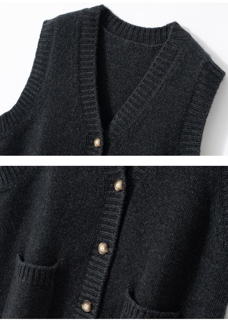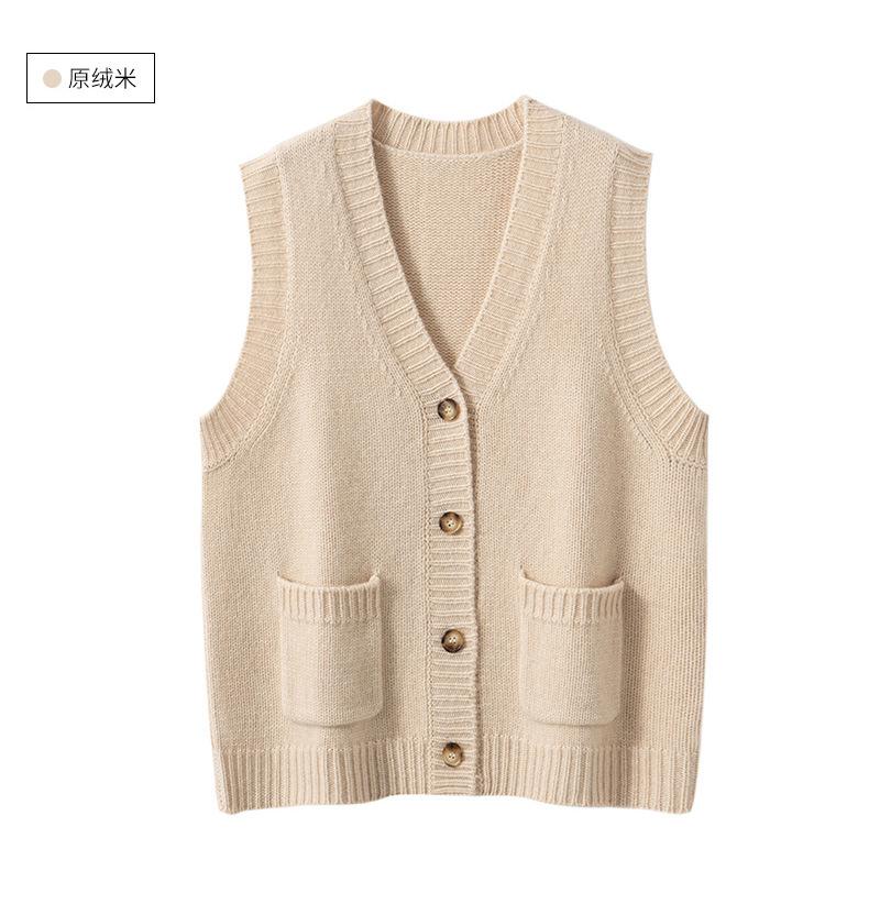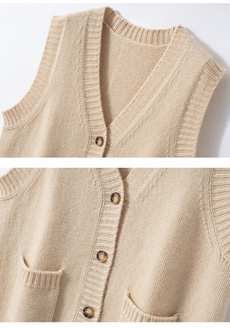 Chaleco de cachemira de punto en capas francés para mujer, nueva prenda exterior sin mangas con cuello en V para otoño e invierno, chaleco cárdigan de lana adelgazante