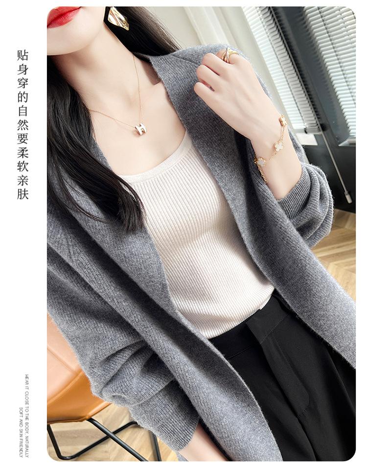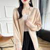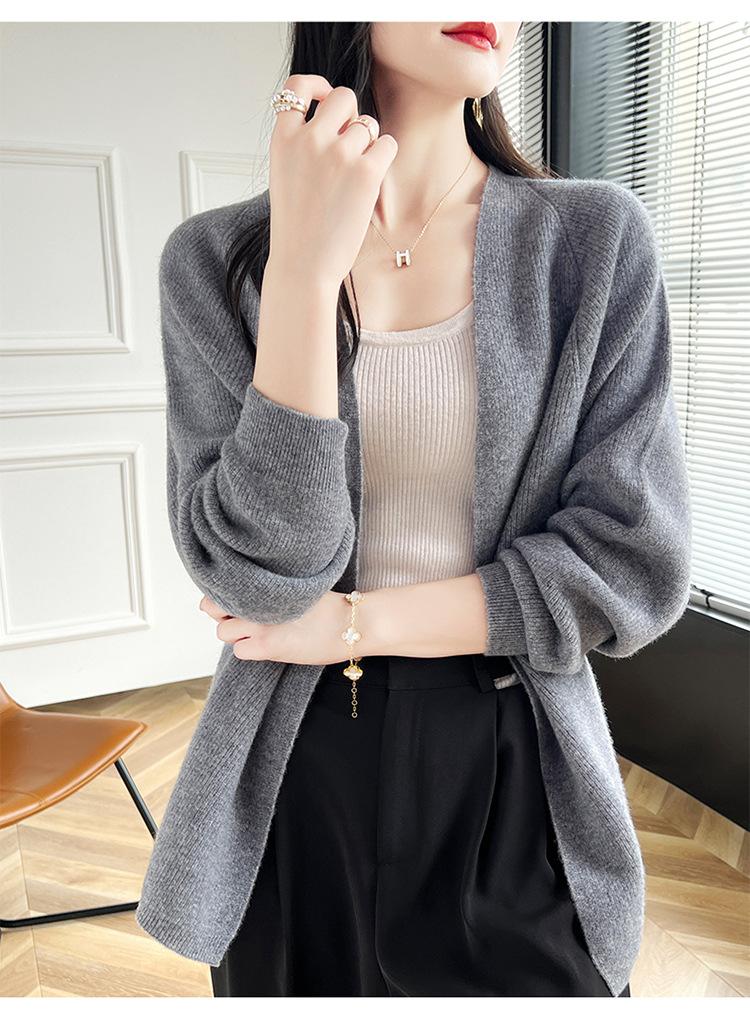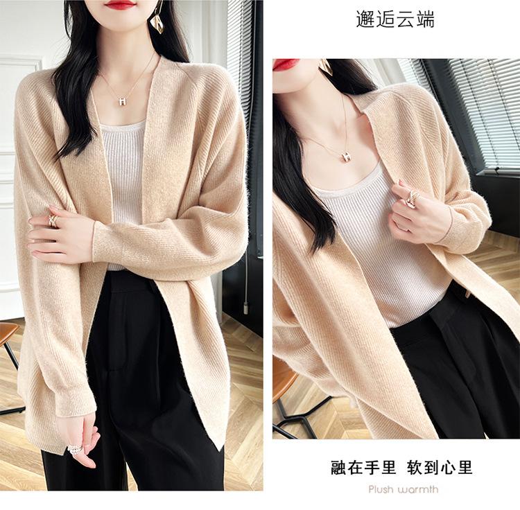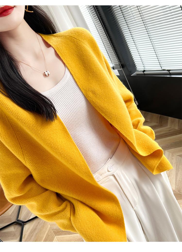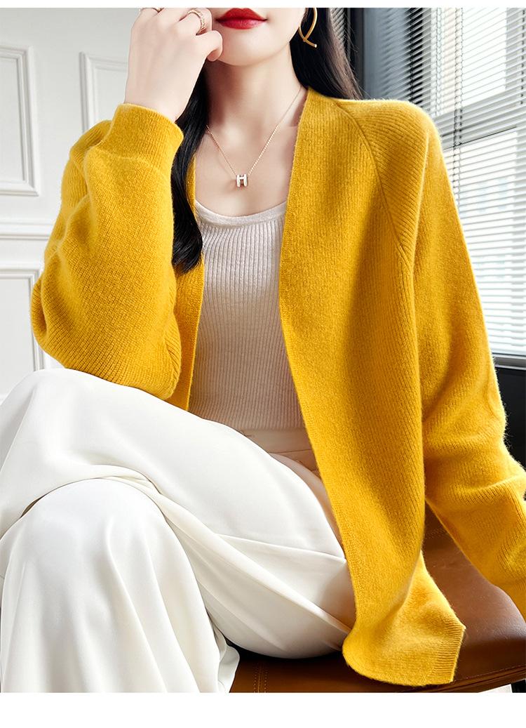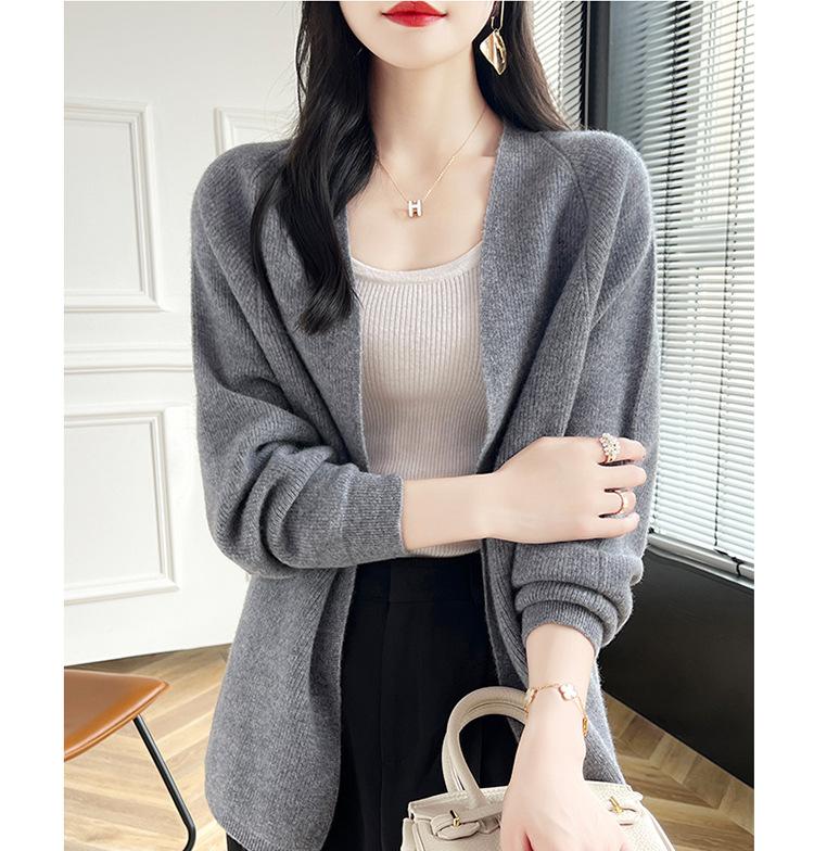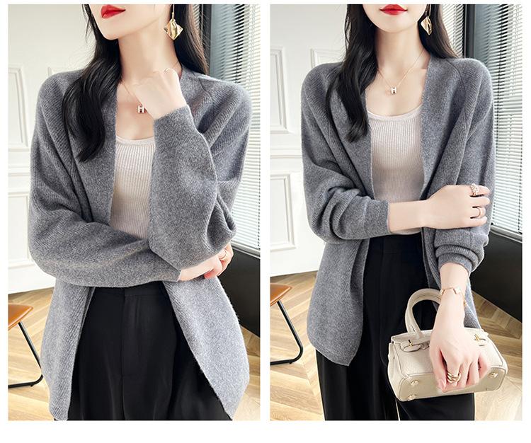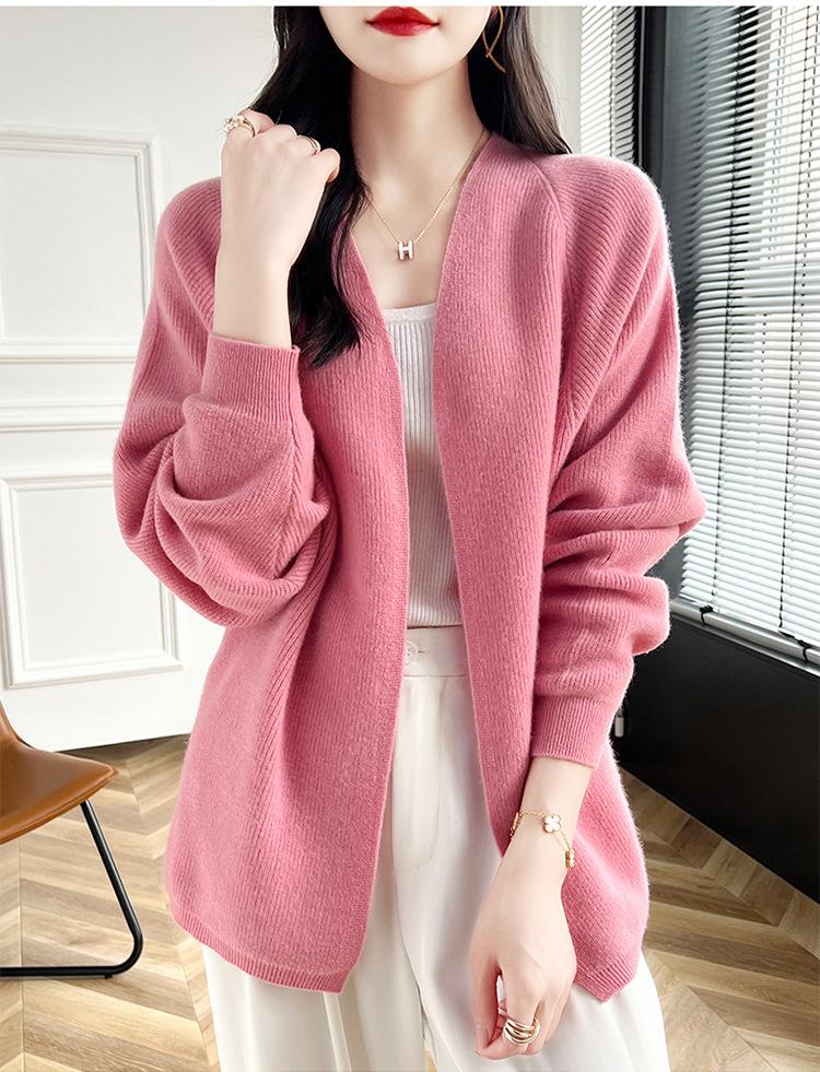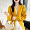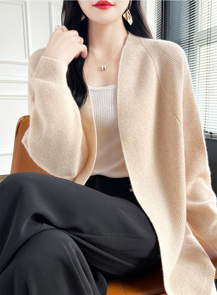 Otoño e Invierno 2024 Nuevo Cárdigan de Punto de Lana Pura para Mujer Color Sólido Suelto Combinable Estilo Casual Sólido Chaqueta sin Hebilla
