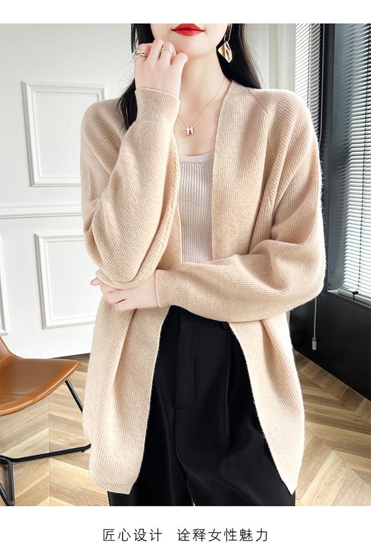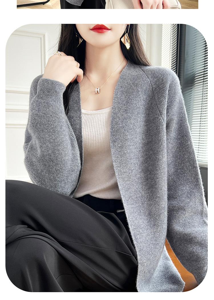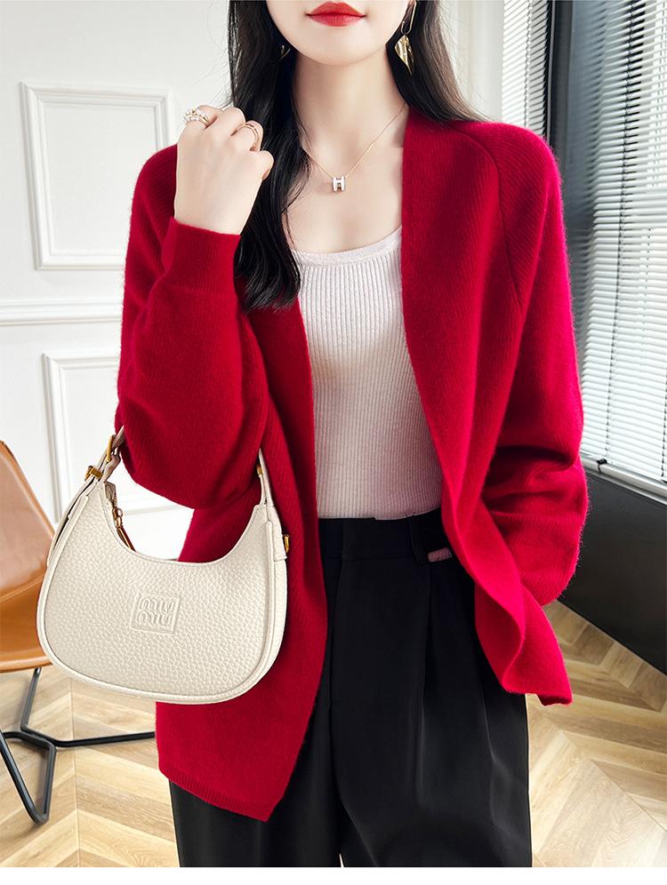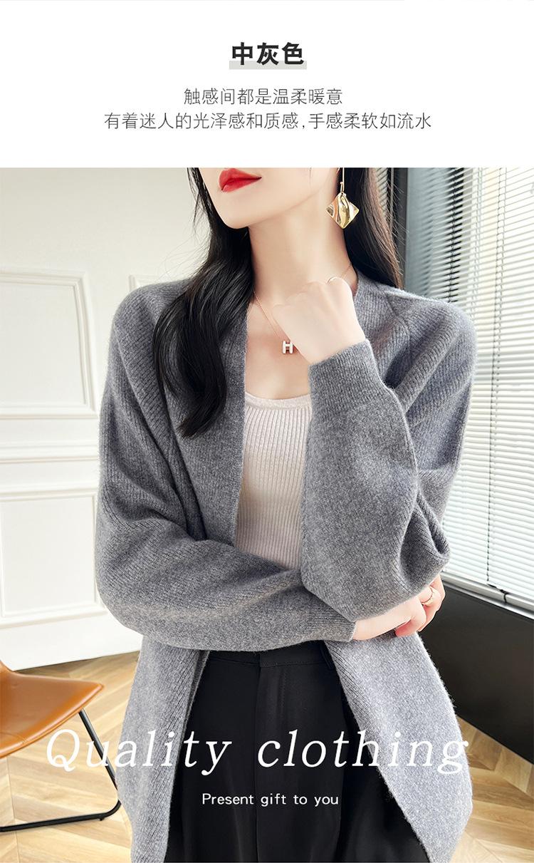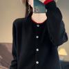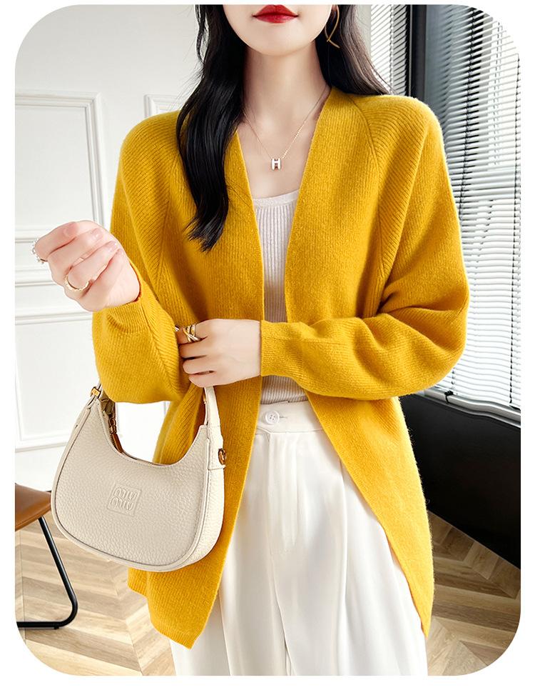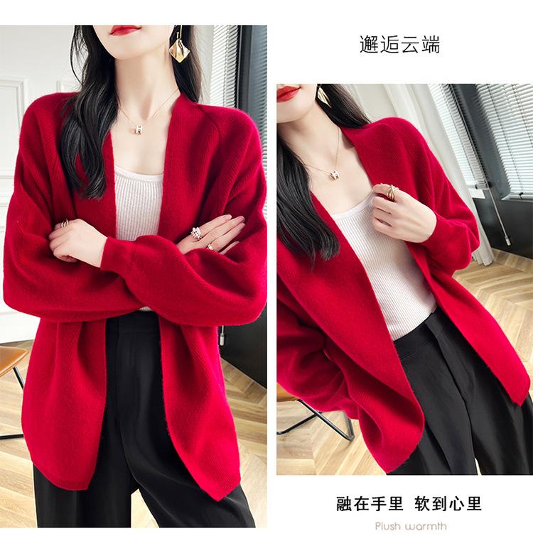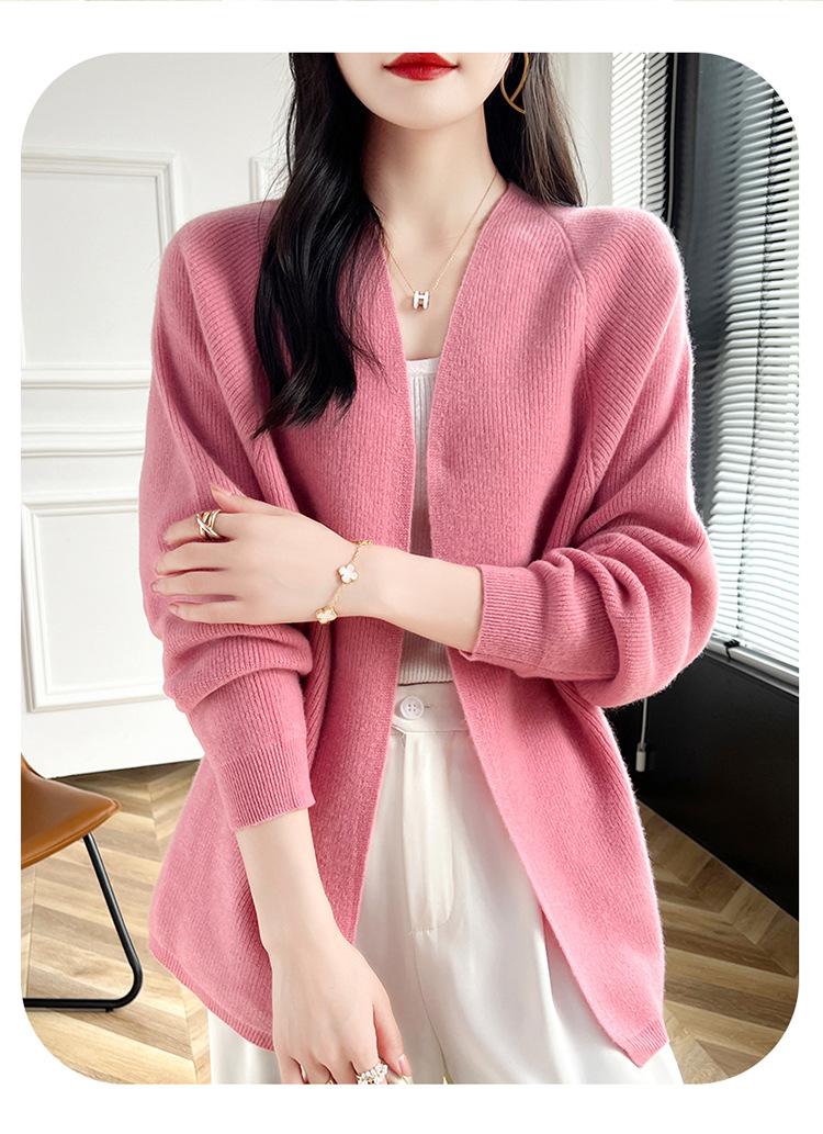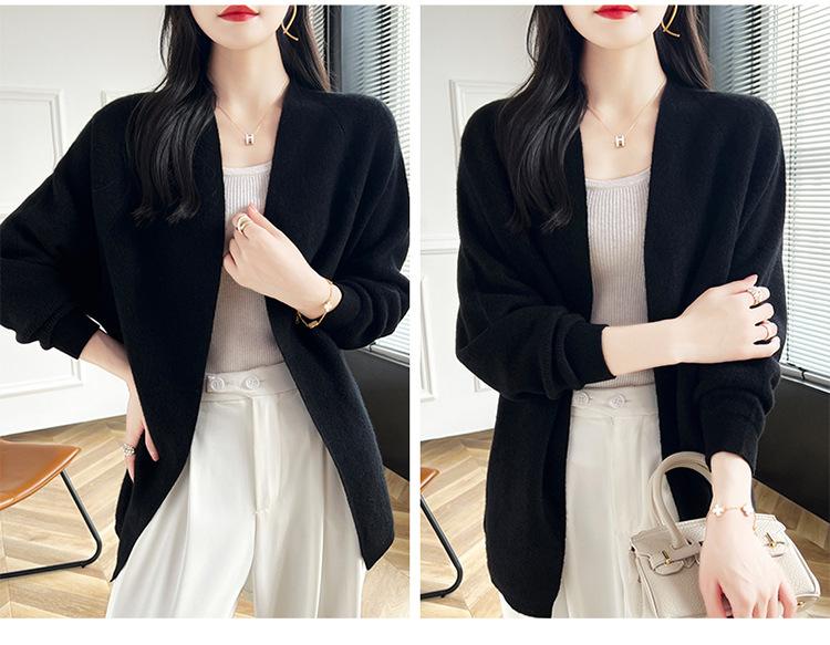 Otoño e Invierno 2024 Nuevo Cárdigan de Punto de Lana Pura para Mujer Color Sólido Suelto Combinable Estilo Casual Sólido Chaqueta sin Hebilla