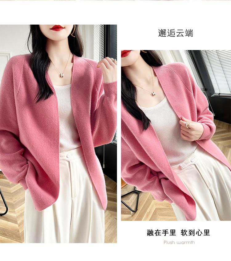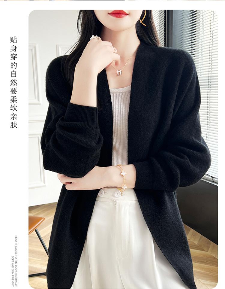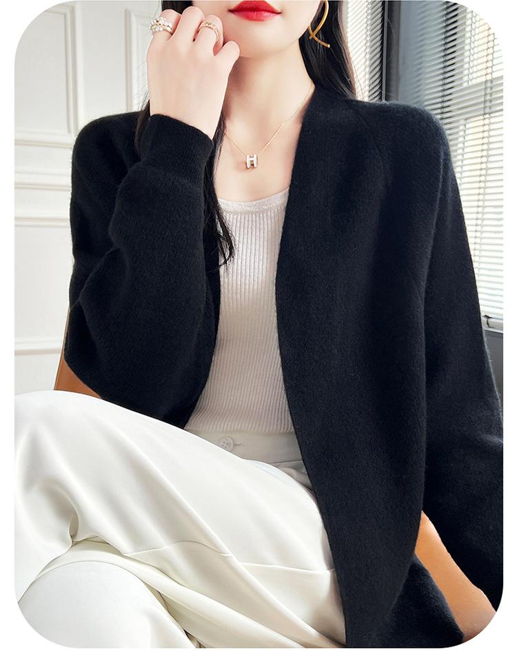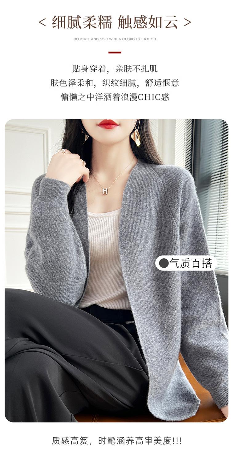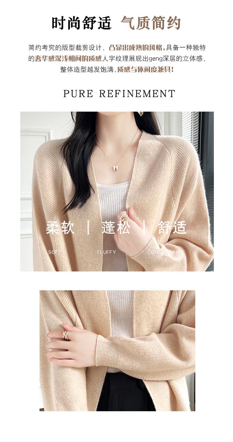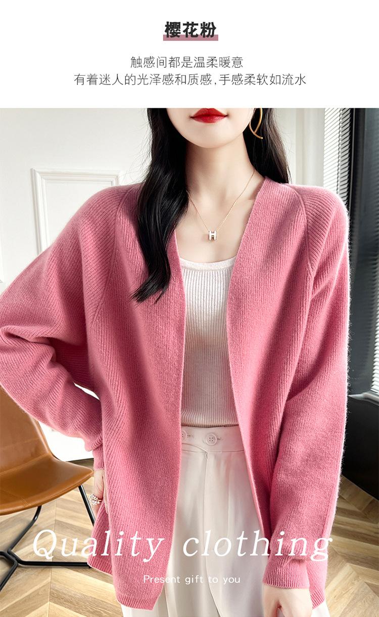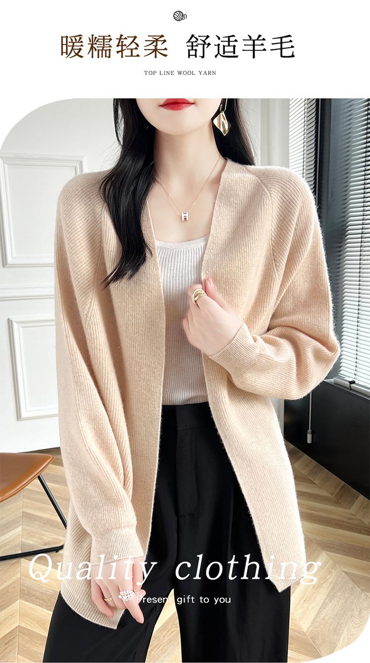 Otoño e Invierno 2024 Nuevo Cárdigan de Punto de Lana Pura para Mujer Color Sólido Suelto Combinable Estilo Casual Sólido Chaqueta sin Hebilla