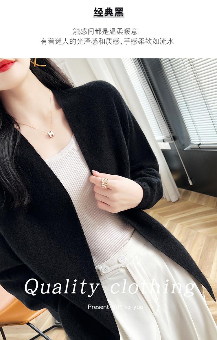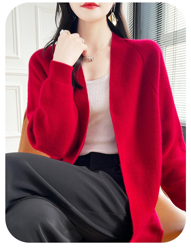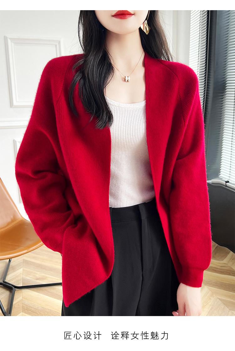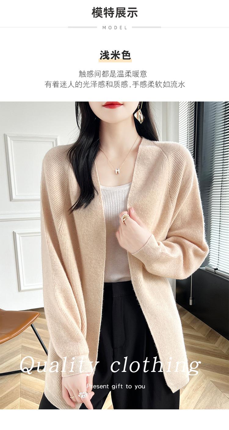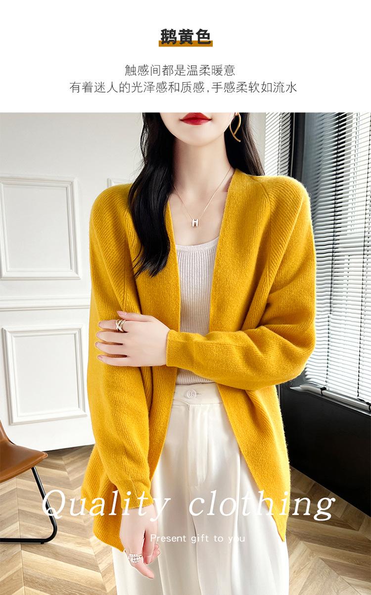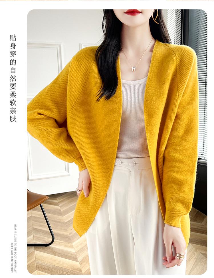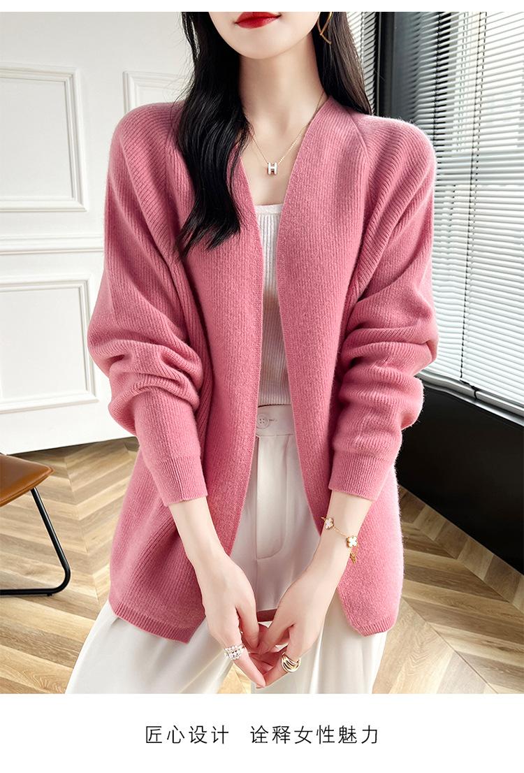 Otoño e Invierno 2024 Nuevo Cárdigan de Punto de Lana Pura para Mujer Color Sólido Suelto Combinable Estilo Casual Sólido Chaqueta sin Hebilla