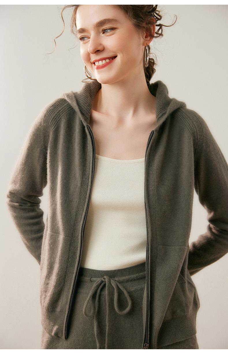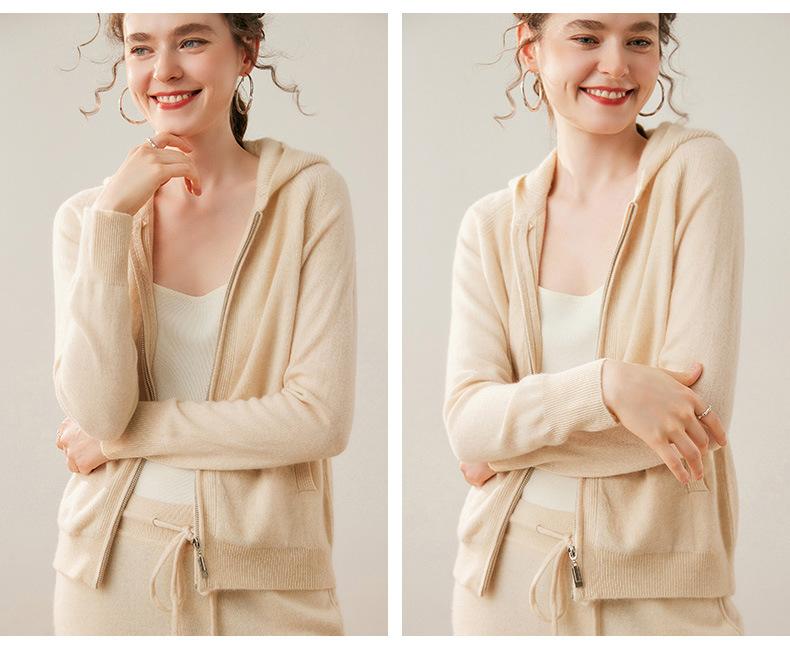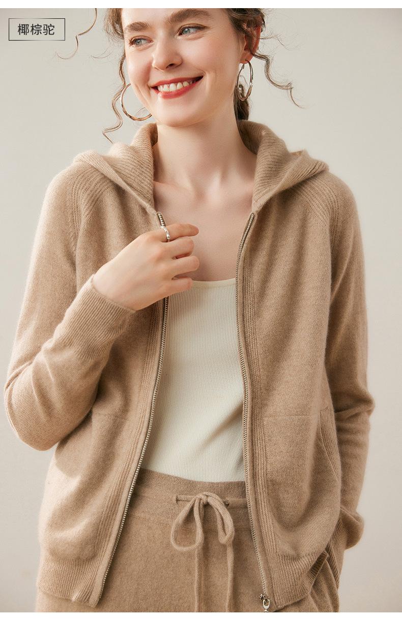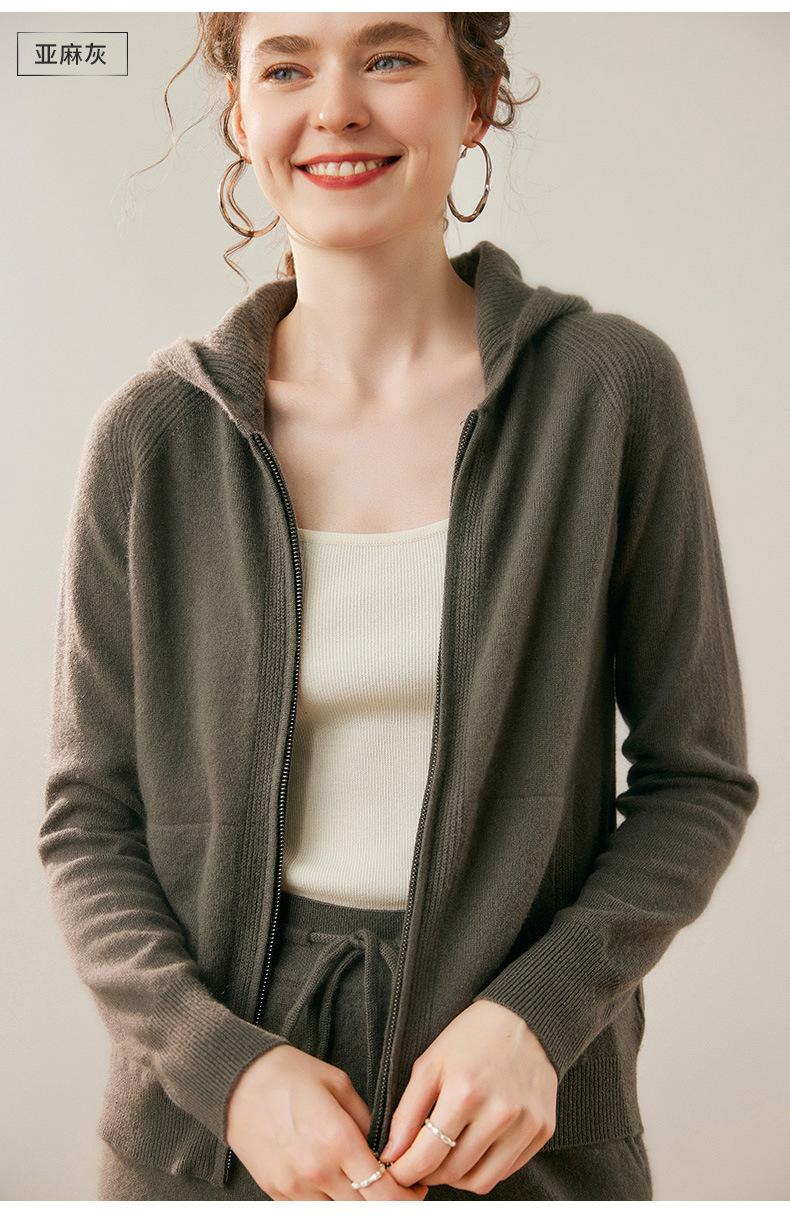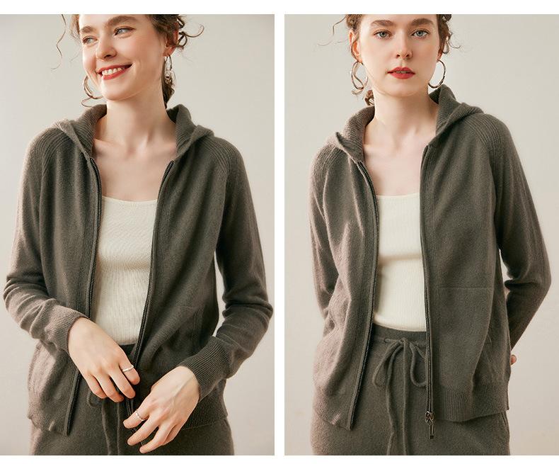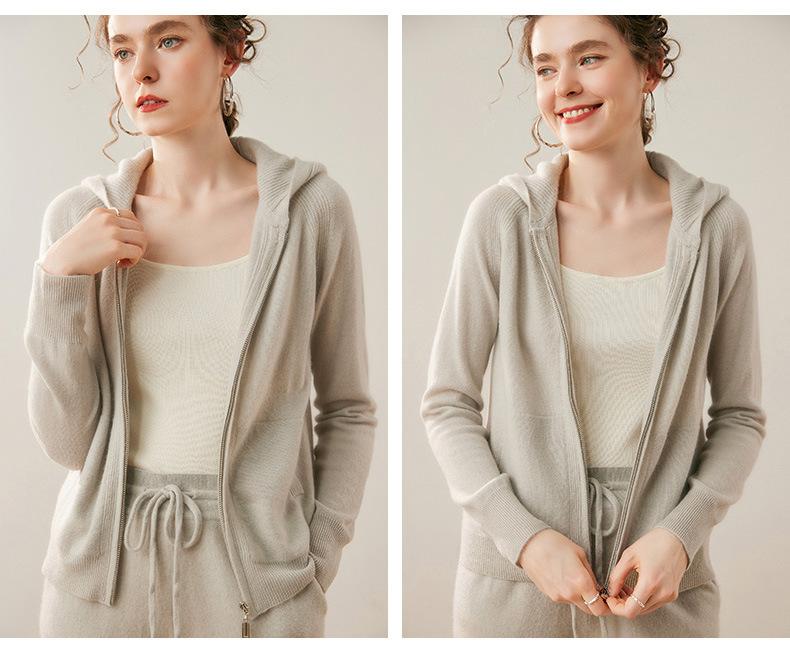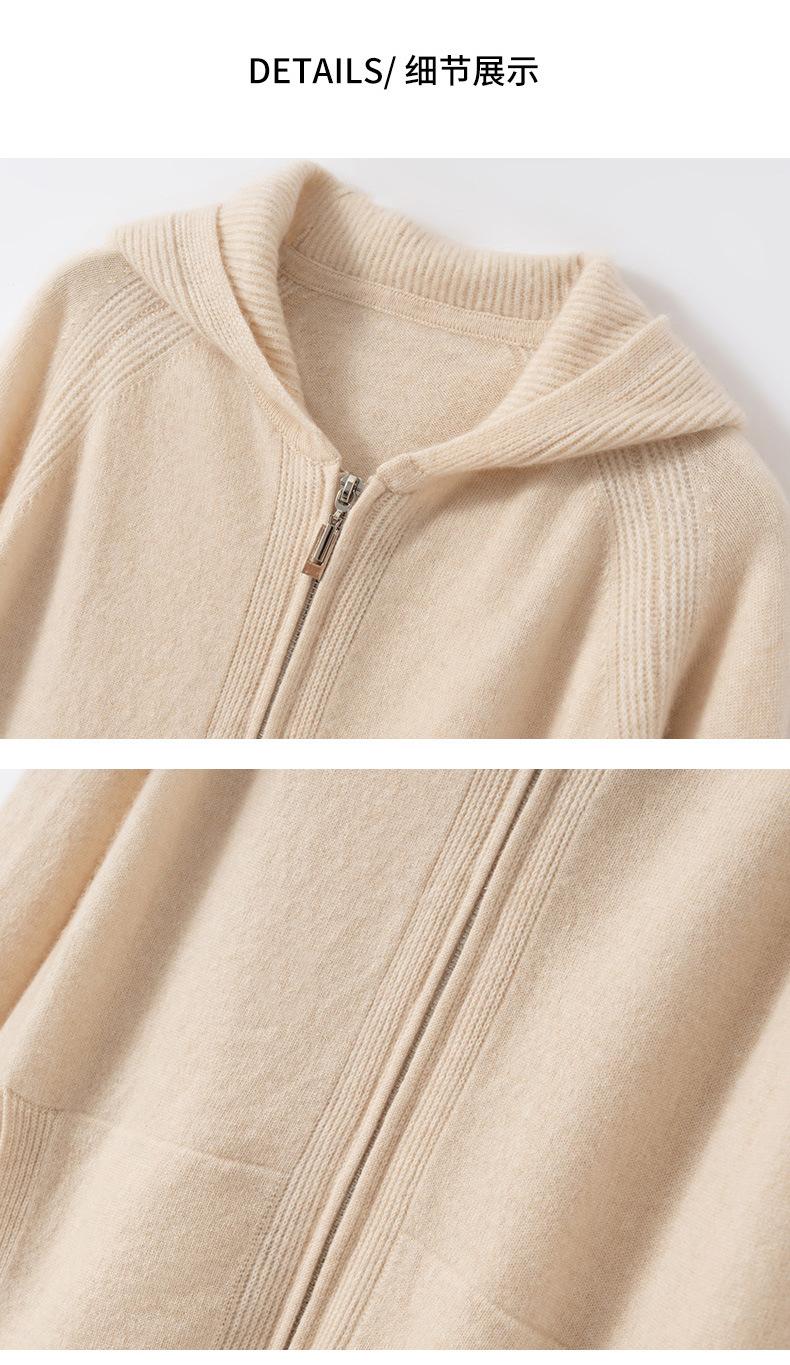 Nuevo Cárdigan de Punto de Cachemira de Otoño/Invierno para Mujer Manga Larga Holgado con Capucha Diseño de Cierre Holgado Casual Suéter Exterior