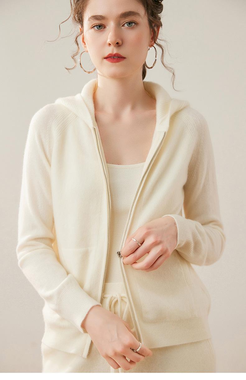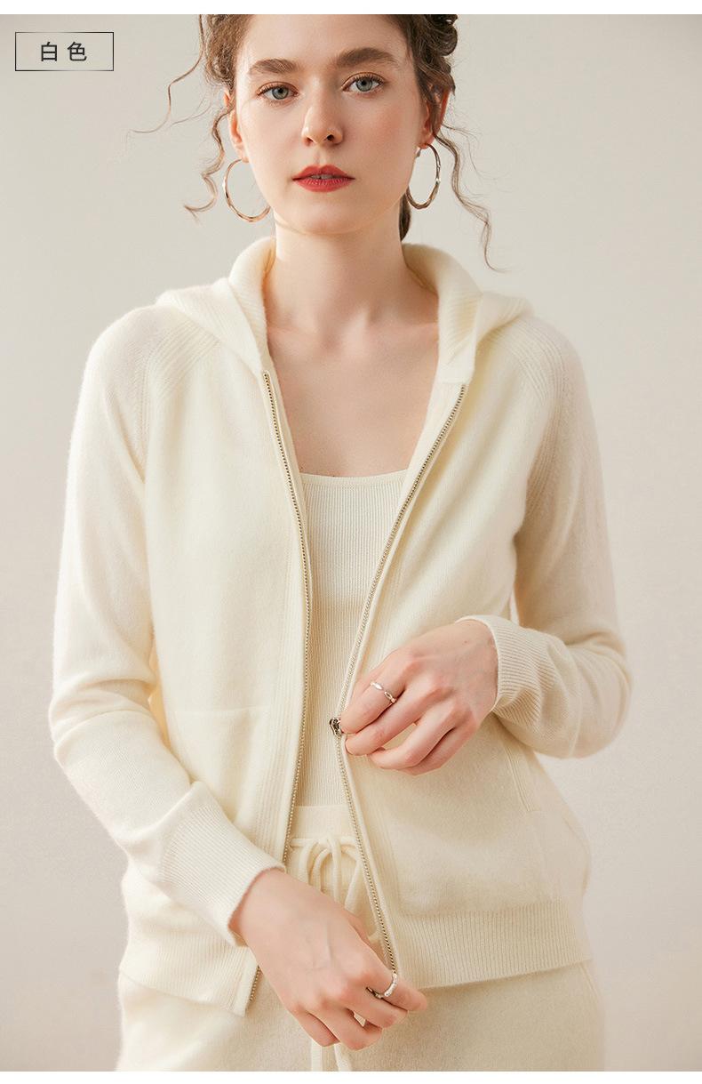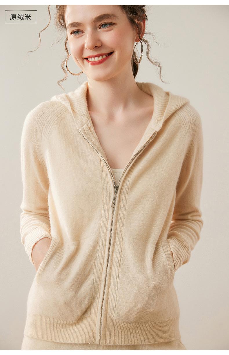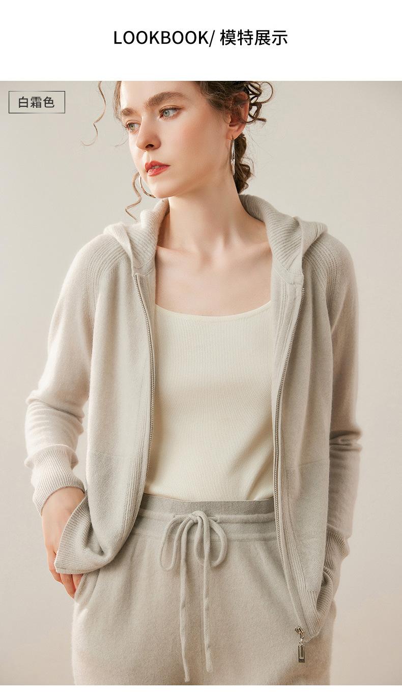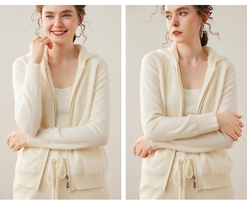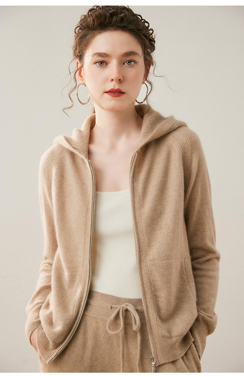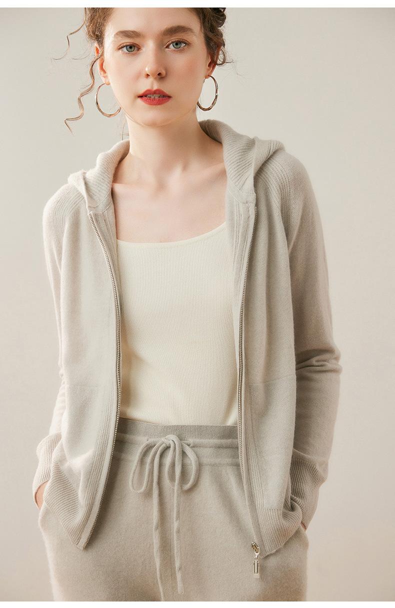 Nuevo Cárdigan de Punto de Cachemira de Otoño/Invierno para Mujer Manga Larga Holgado con Capucha Diseño de Cierre Holgado Casual Suéter Exterior